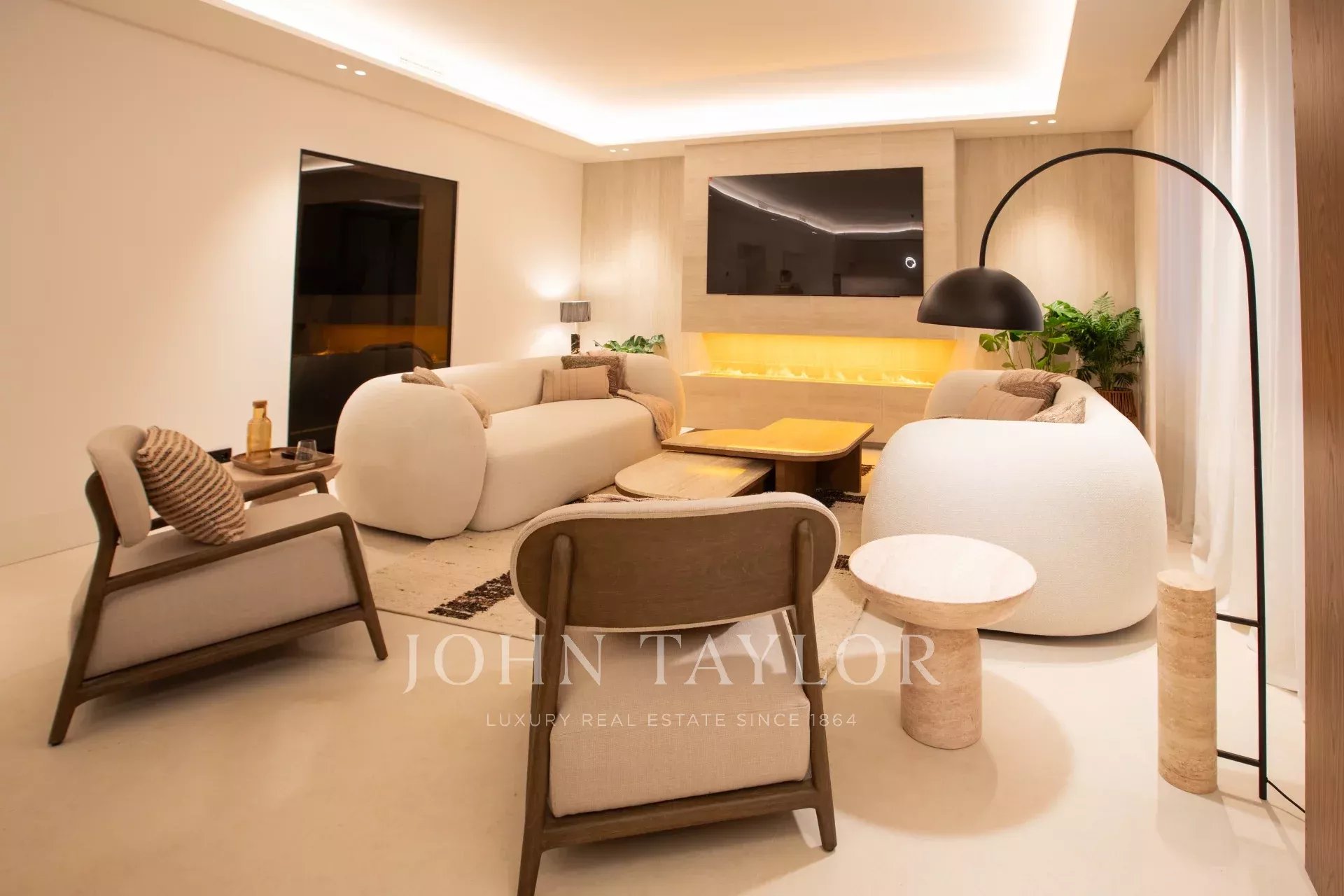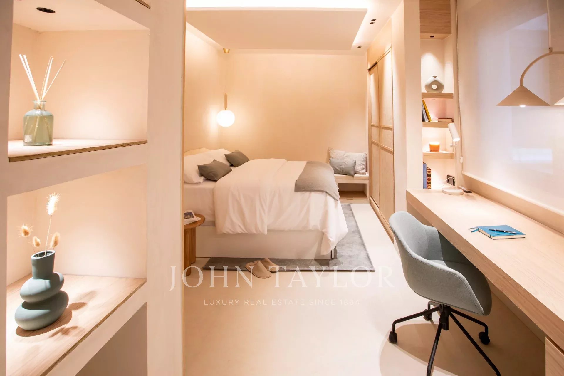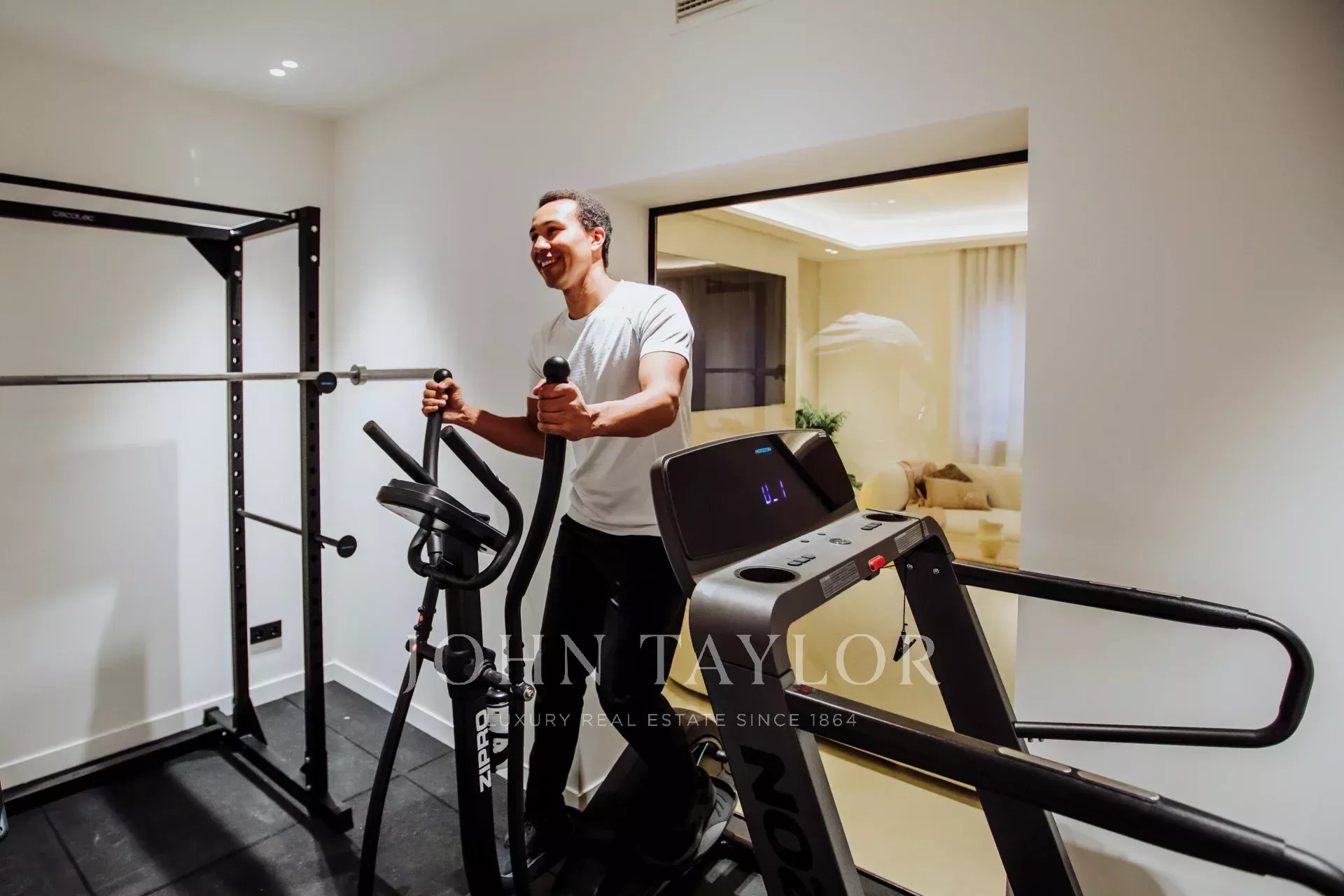 Si accede alla proprietà attraverso l'ampio ingresso, con una zona salotto, una cabina armadio e una bella toilette per gli ospiti con vetrata di Maumejean. A seguire troviamo la zona sociale, con soggiorno con camino e cucina aperta, completamente attrezzata e con un'enorme isola centrale, che si collega al tavolo da pranzo. In quest'ala della casa si trova la camera da letto principale, più indipendente dal resto della casa, con una camera da letto en-suite. Accanto si trova una palestra, che può essere facilmente convertita in ufficio o spogliatoio.