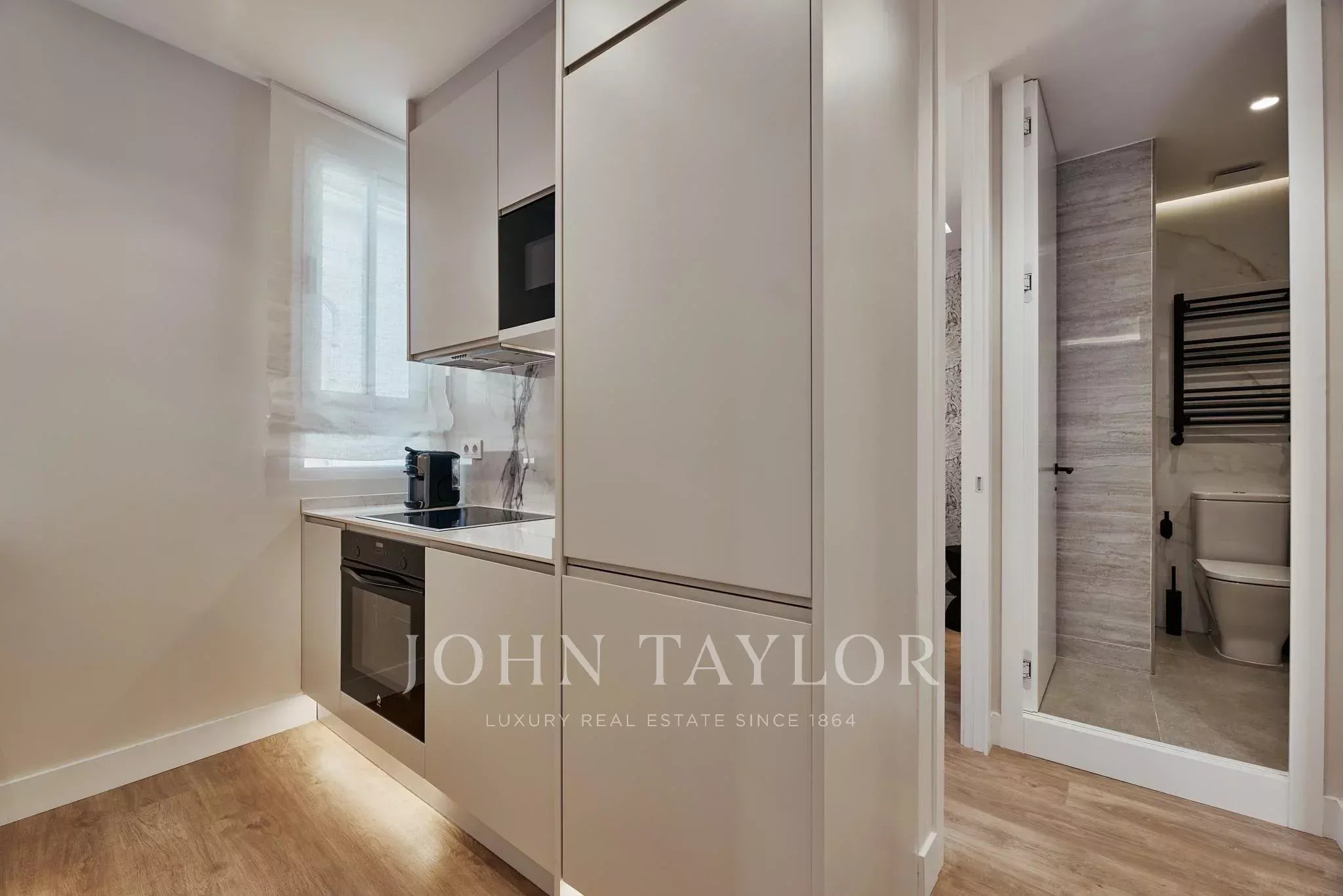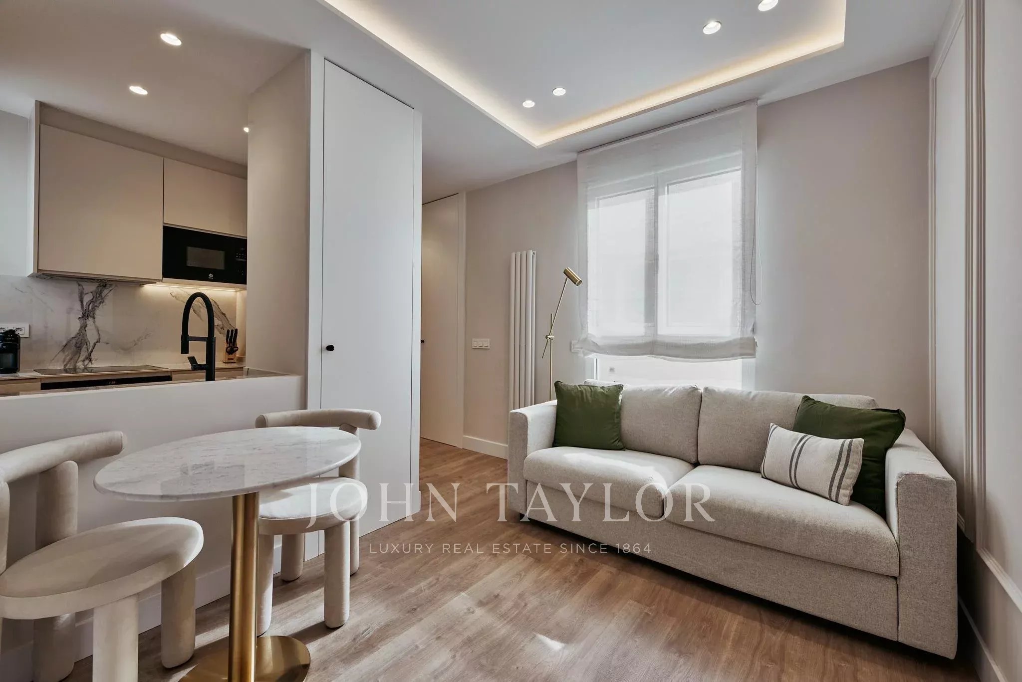 Con 50 m² catastali, l'appartamento è stato ristrutturato con un design funzionale che ottimizza lo spazio. La zona giorno integra una cucina completamente attrezzata, creando un ambiente pratico e ben sfruttato. Viene consegnato arredato e pronto per essere abitato.