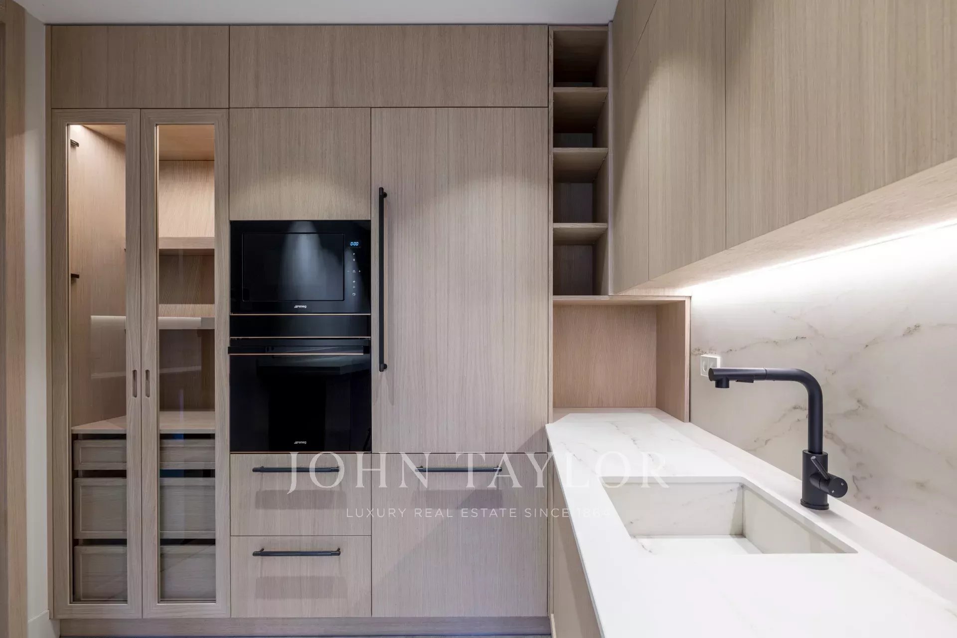 L'accesso alla proprietà conduce a un ampio doppio soggiorno-sala da pranzo con camino a bioetanolo. La cucina indipendente, dal design moderno e completamente attrezzata con elettrodomestici SMEG, è completata da una lavanderia separata che può essere adattata come camera di servizio con bagno.