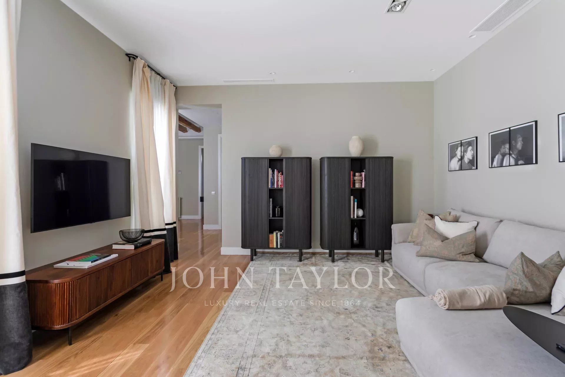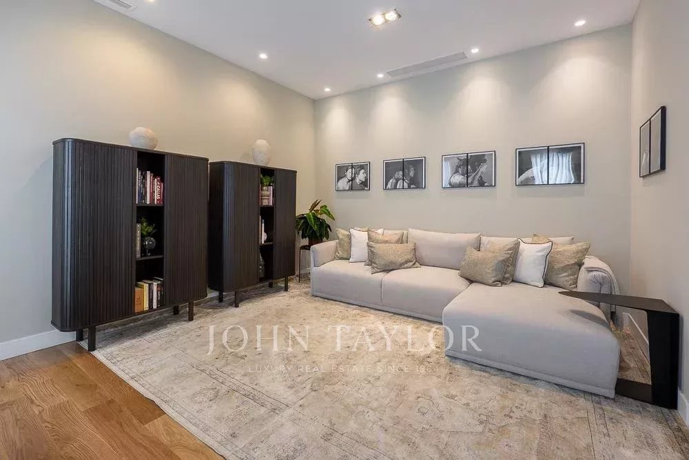 La riprogettazione dell'appartamento permette ora di avere una sala TV molto spaziosa, confortevole, luminosa e moderna; l'arredamento accompagna in modo impeccabile uno spazio da condividere e godere con gli amici o la famiglia.