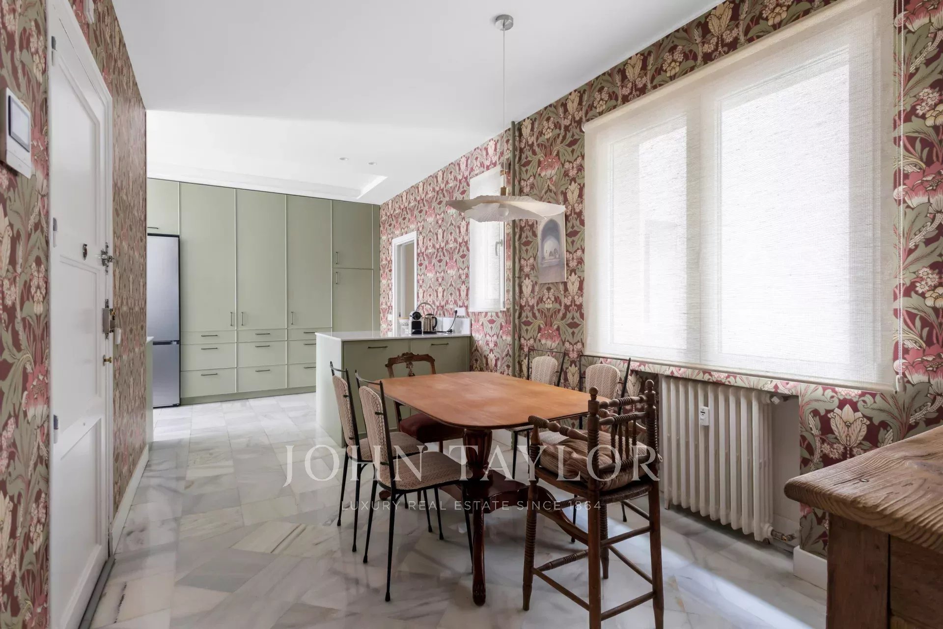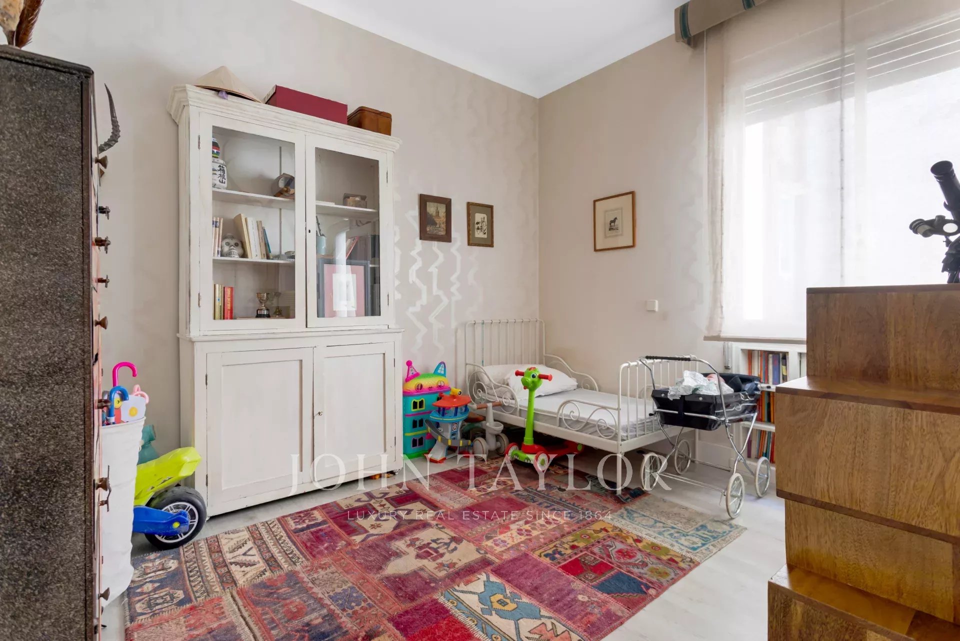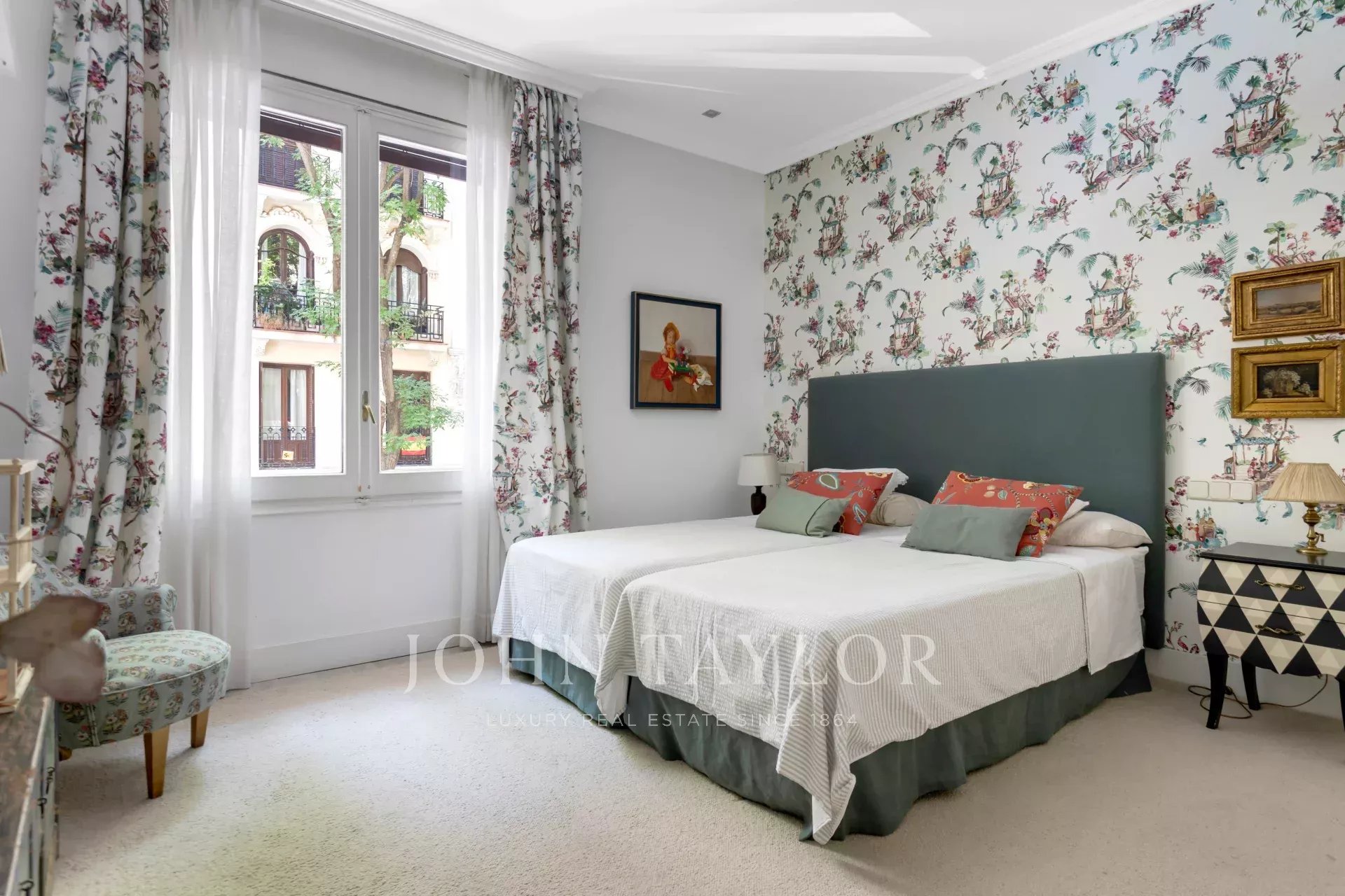 La cucina, pratica e di grande capienza, mantiene una linea sobria e funzionale con mobili su misura; insieme agli spazi di servizio, dona equilibrio all'insieme. Quattro camere da letto che garantiscono privacy e versatilità e tre bagni distribuiti con criterio completano la casa, offrendo una tela perfetta per intervenire e aggiornare rispettando la sua essenza originale. Luce, proporzioni e dettagli d'epoca convivono con la possibilità di aggiungere tocchi contemporanei senza perdere il suo carattere signorile.