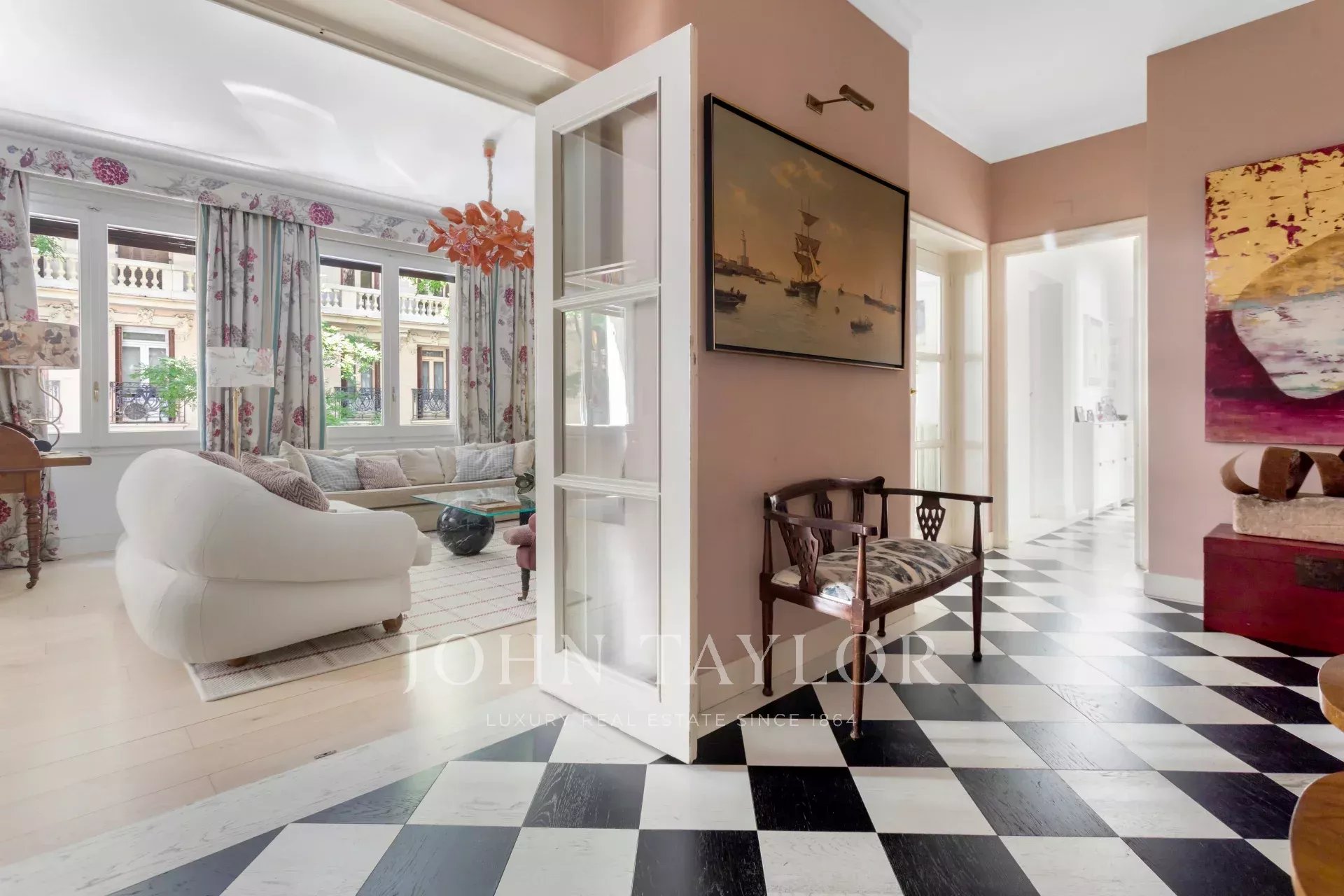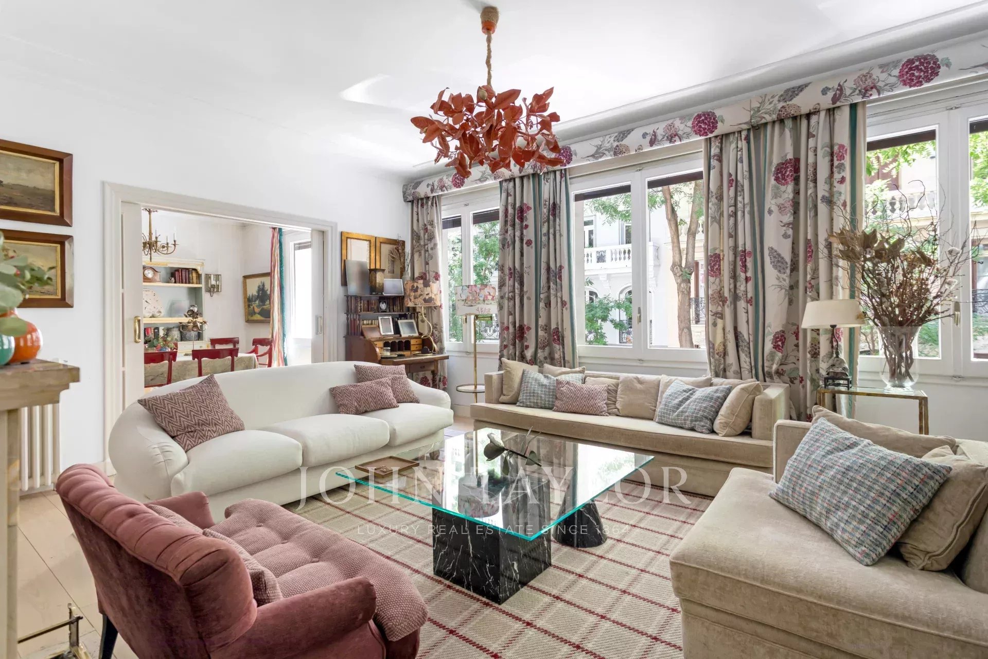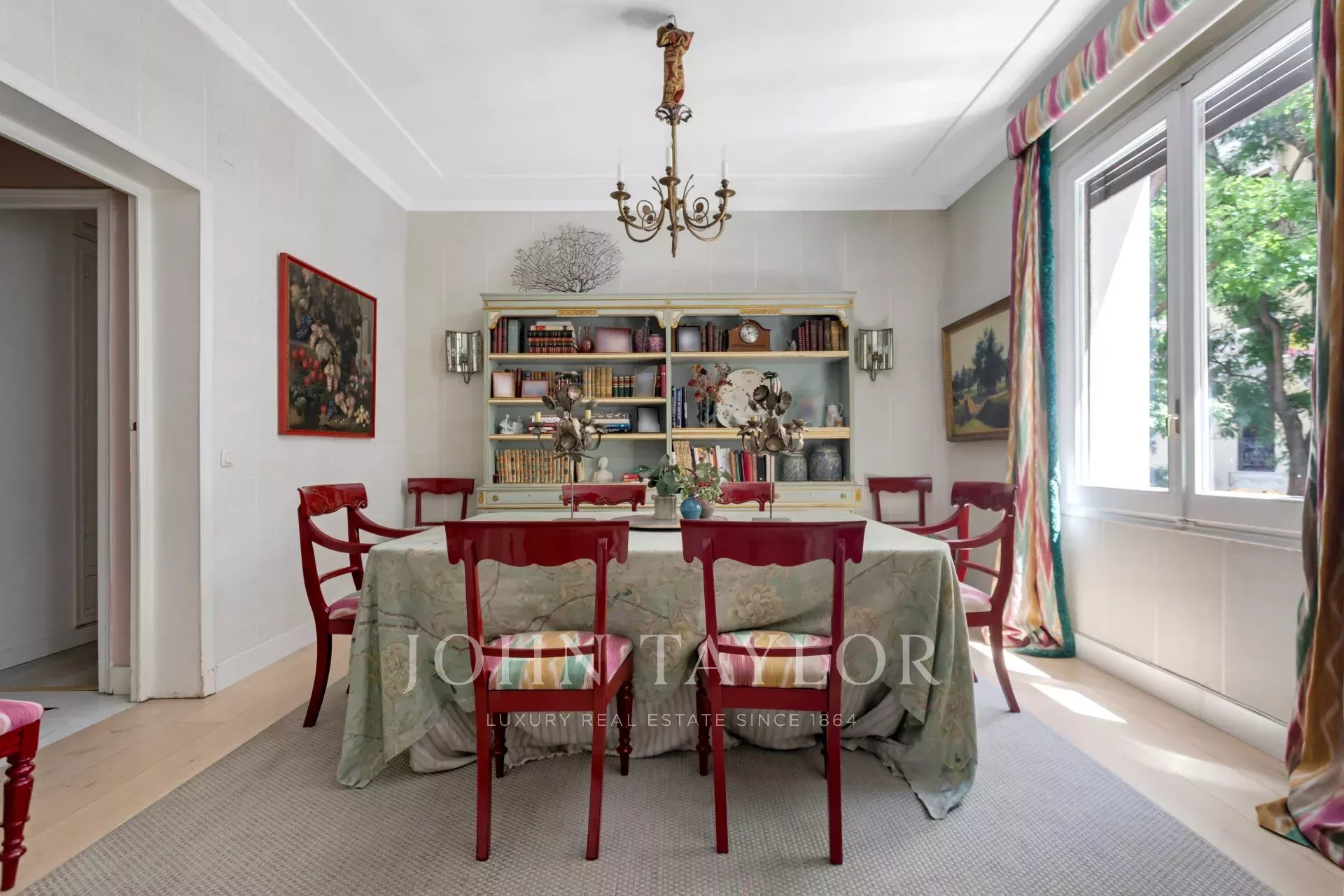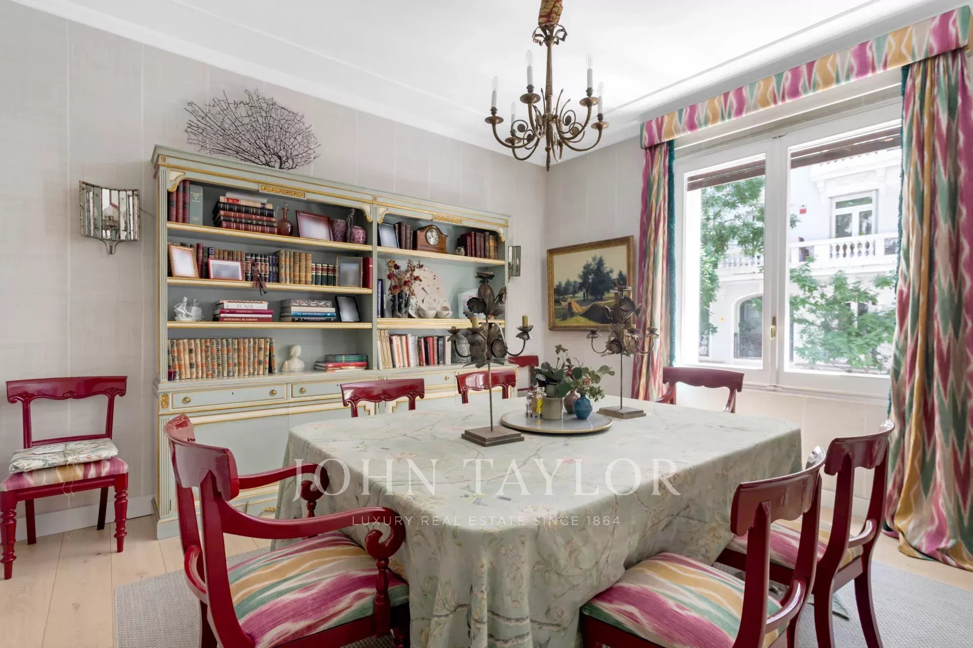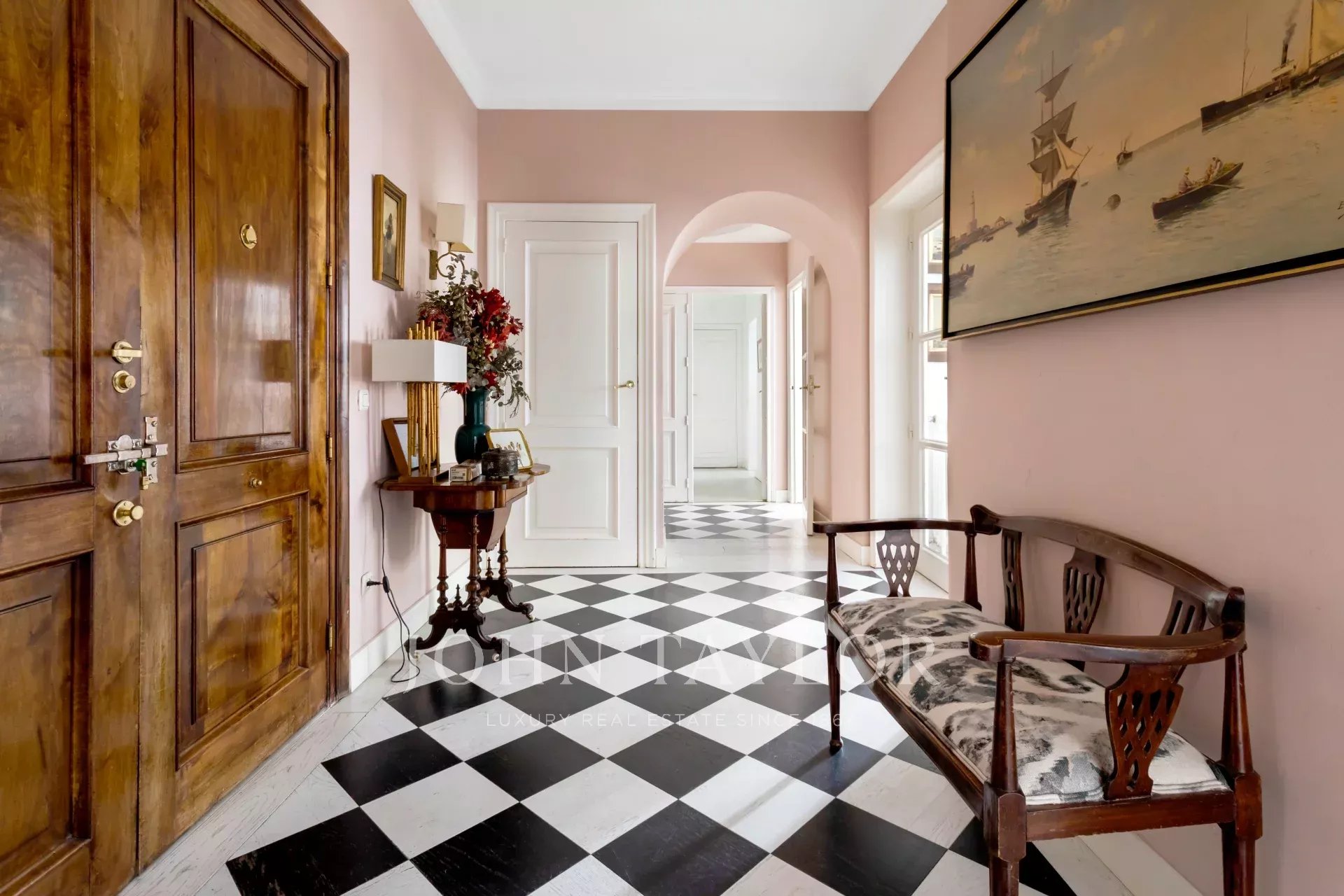 Un'esclusiva residenza di 305 m² con un ingresso signorile e una hall di carattere, dove i pavimenti in marmo e a scacchiera anticipano il tono elegante della casa. Il piano intermedio, esterno ed esposto a est, permette alla luce di inondare i soggiorni fin dal primo momento, esaltando le proporzioni generose e il flusso tra gli ambienti: ampi saloni di rappresentanza con camino e modanature, una biblioteca o un ufficio integrato e sale da pranzo che invitano sia alla vita familiare che al ricevimento degli ospiti.