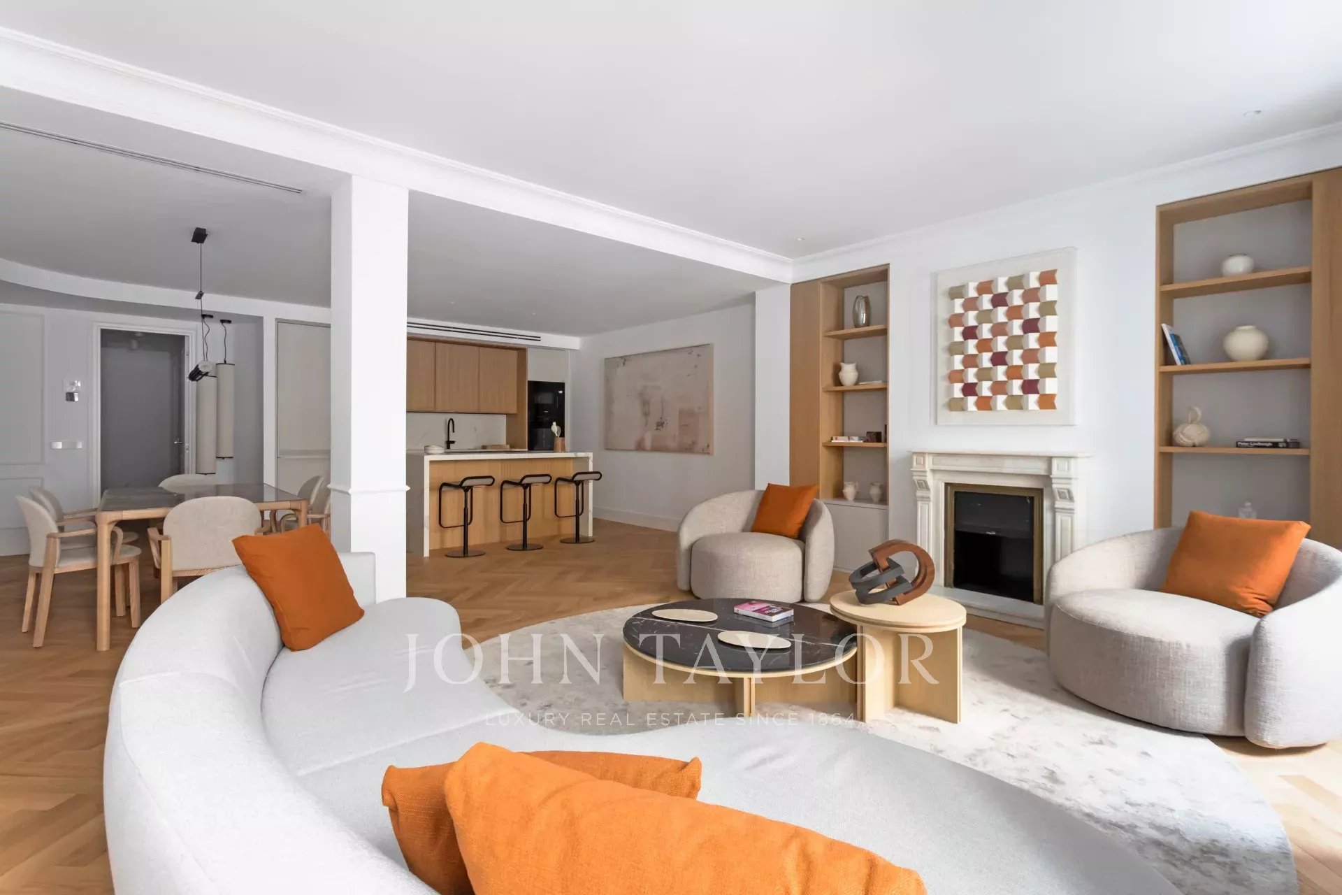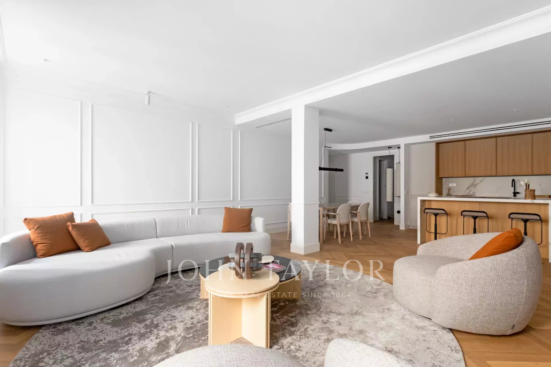 La proprietà, disposta in modo impeccabile, vanta tre spaziose camere da letto, tutte con bagno privato, più un bagno per gli ospiti e una zona lavanderia separata. L'ampio soggiorno-sala da pranzo con cucina a vista è il cuore della casa, uno spazio aperto e luminoso che integra eleganza e comfort, dotato di elettrodomestici di alta gamma.