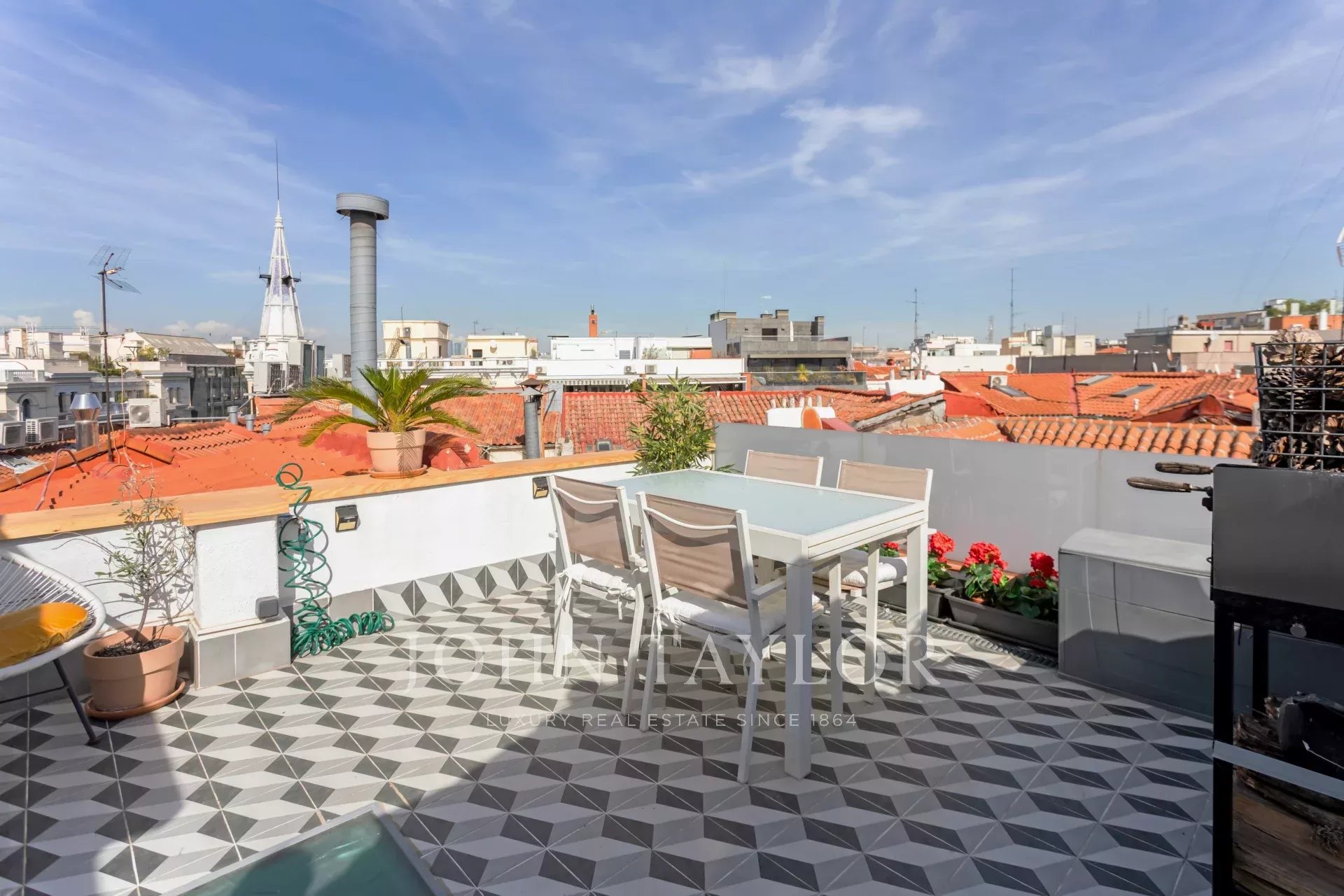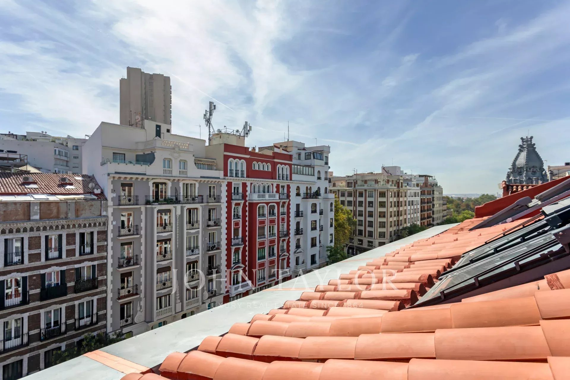 Vi presentiamo in esclusiva questo attico unico con terrazza e vista sulle cupole e sui tetti più emblematici del quartiere di Salamanca, a un minuto a piedi dal Parco del Retiro.