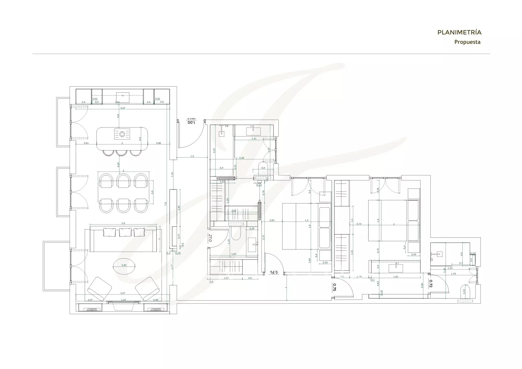 Con 118 m² e soffitti di 3,15 metri di altezza, l'immobile si distingue per la sua eleganza architettonica e per i suoi tre balconi rivolti a ovest, che apportano luce naturale e un carattere signorile alla proprietà. Attualmente dispone di due camere da letto, due bagni completi e una toilette, offrendo una base ideale per una ridistribuzione contemporanea che massimizzi gli spazi e la luminosità.