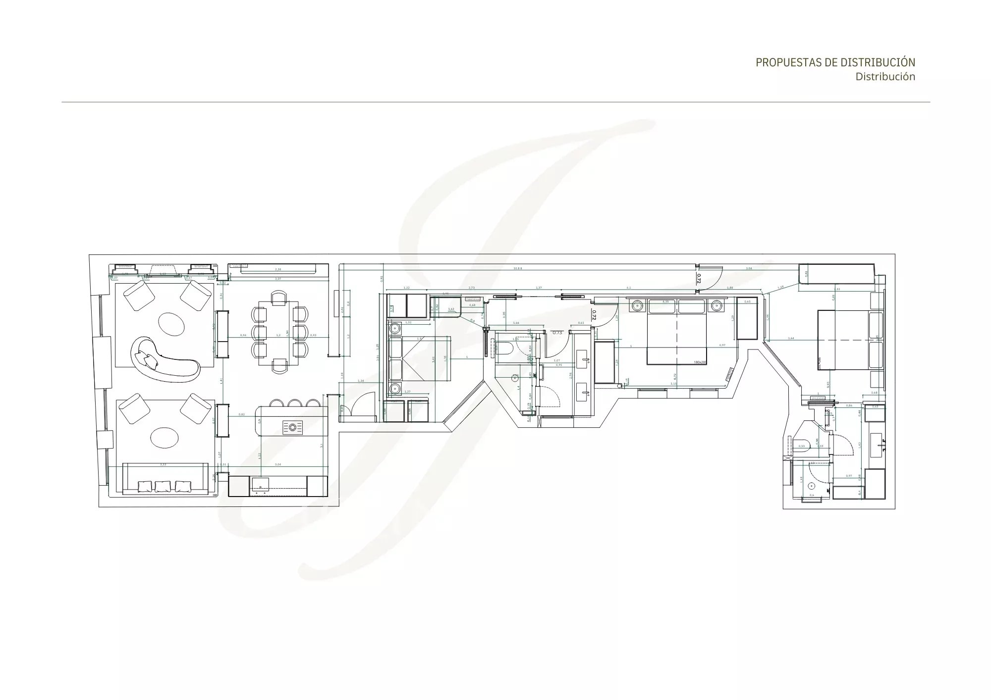 Con 149 m², soffitti di 3 metri e orientamento a ovest, la proprietà offre tre camere da letto e due bagni, distribuiti in modo tale da far percepire luminosità e spaziosità in ogni stanza. I tre balconi offrono luce e vista sull'elegante ambiente circostante, mentre l'altezza della pianta aumenta la sensazione di spaziosità.