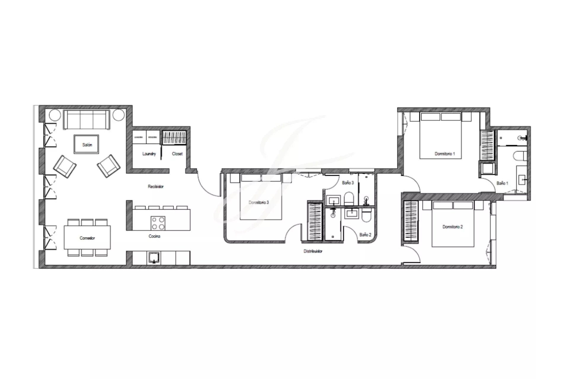 La proprietà dispone di tre camere da letto, tutte con bagno privato, che garantiscono privacy e comfort. Dispone inoltre di tre balconi che si affacciano sulla strada, fornendo luce naturale e viste senza ostacoli.