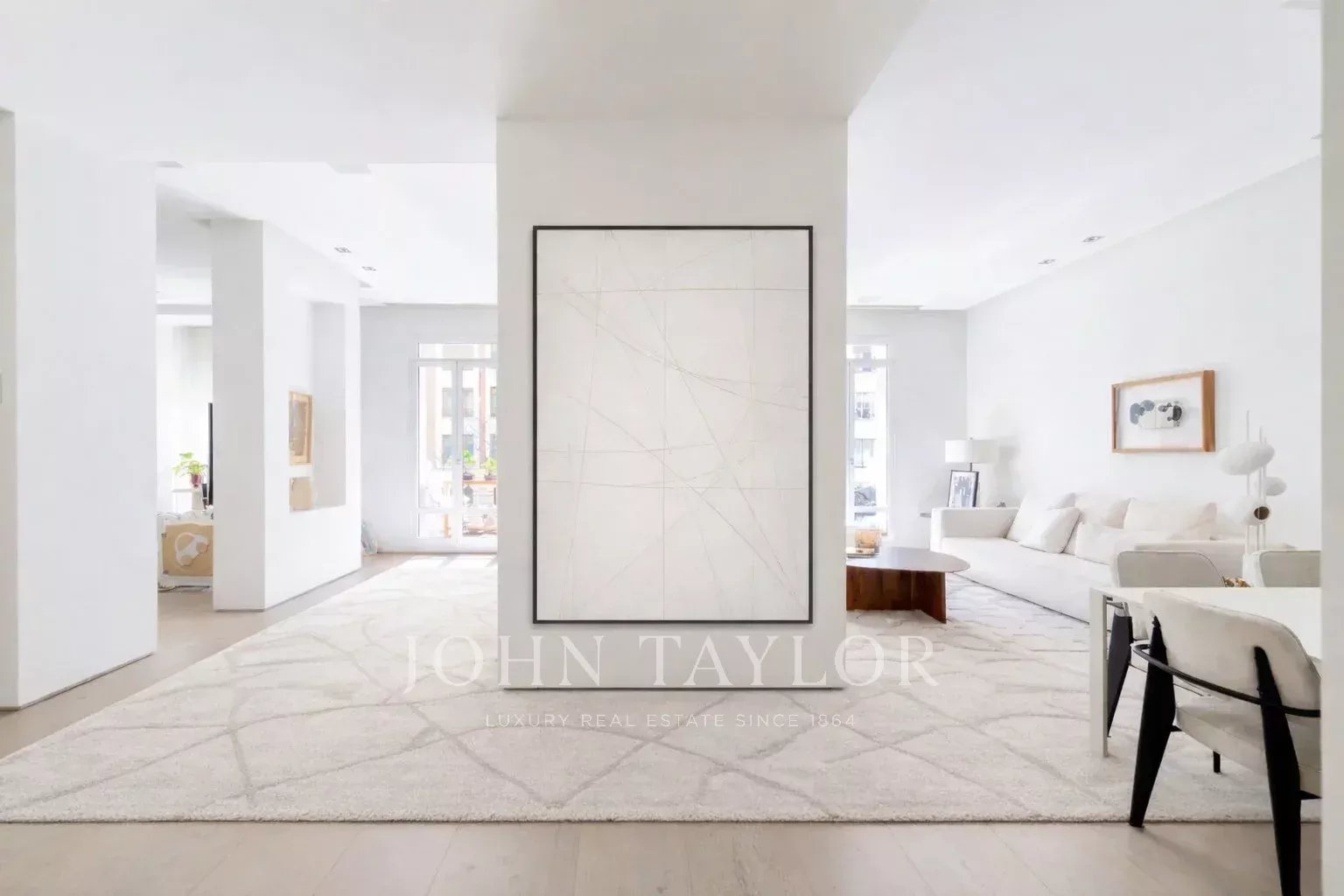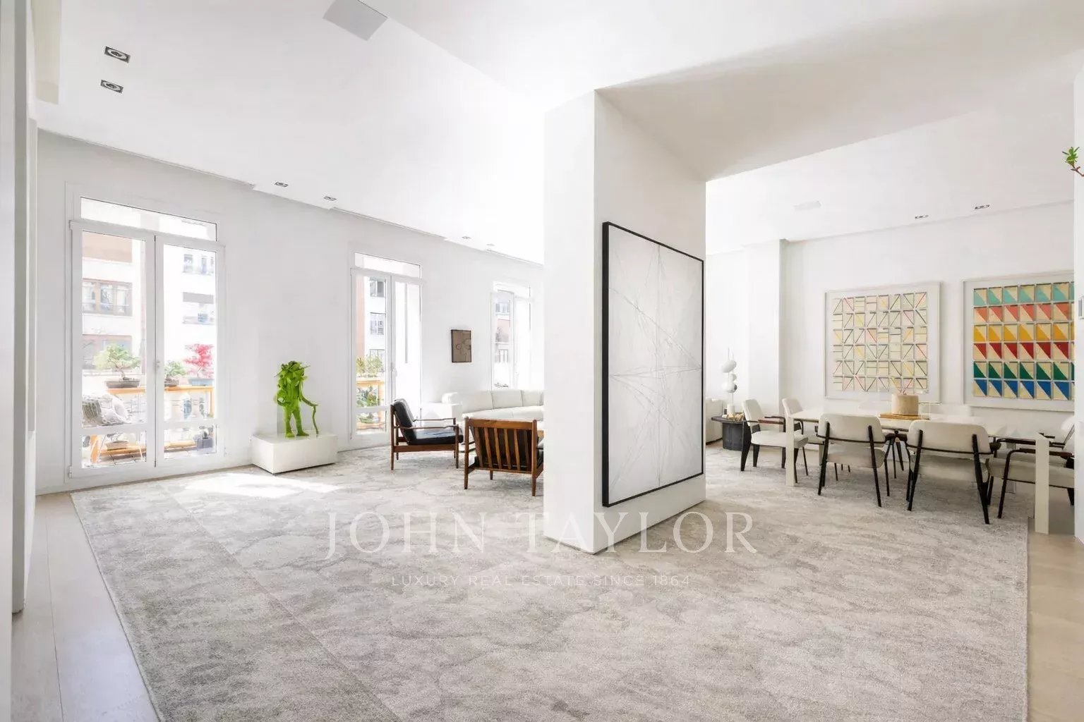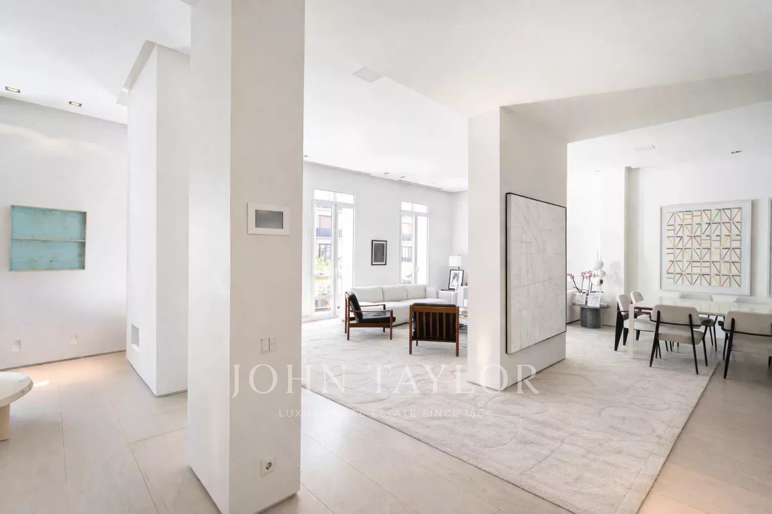 Il soggiorno principale è uno spazio aperto e luminoso, esposto a sud e con accesso a quattro impressionanti balconi di grandi dimensioni. Il soggiorno è collegato alla sala da pranzo e al corridoio.
