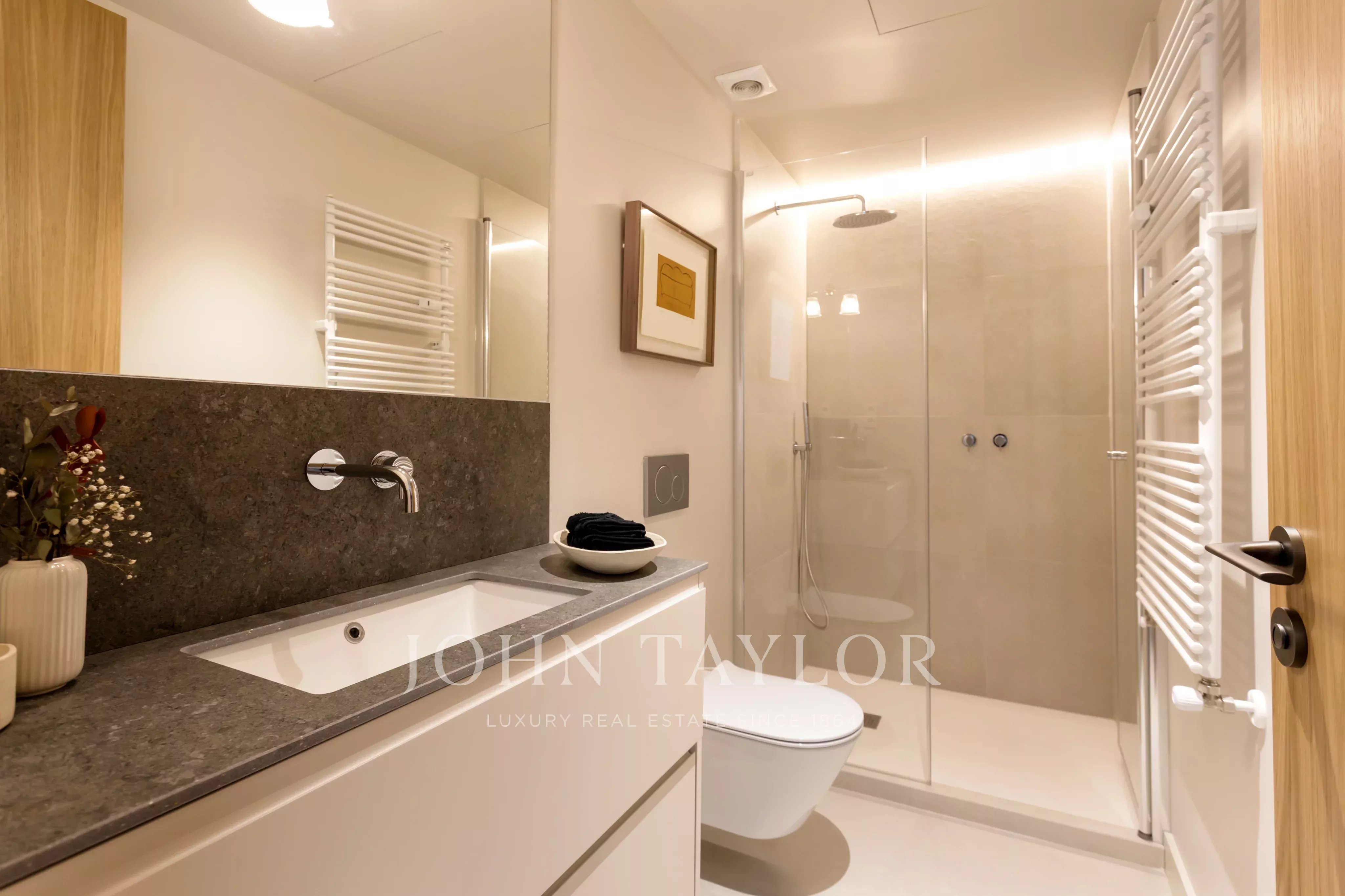 La proprietà conquista sin dal primo istante per l'ampiezza e l'armonia delle sue stanze. La spettacolare sala da pranzo, concepita come il cuore dell'abitazione, si apre su una piacevole terrazza con orientamento a sud, creando un ambiente ideale sia per il piacere quotidiano che per accogliere ospiti in un'atmosfera distinta. La cucina indipendente, completamente attrezzata, è stata progettata per combinare eleganza e funzionalità, e incorpora una pratica zona lavanderia discretamente integrata.