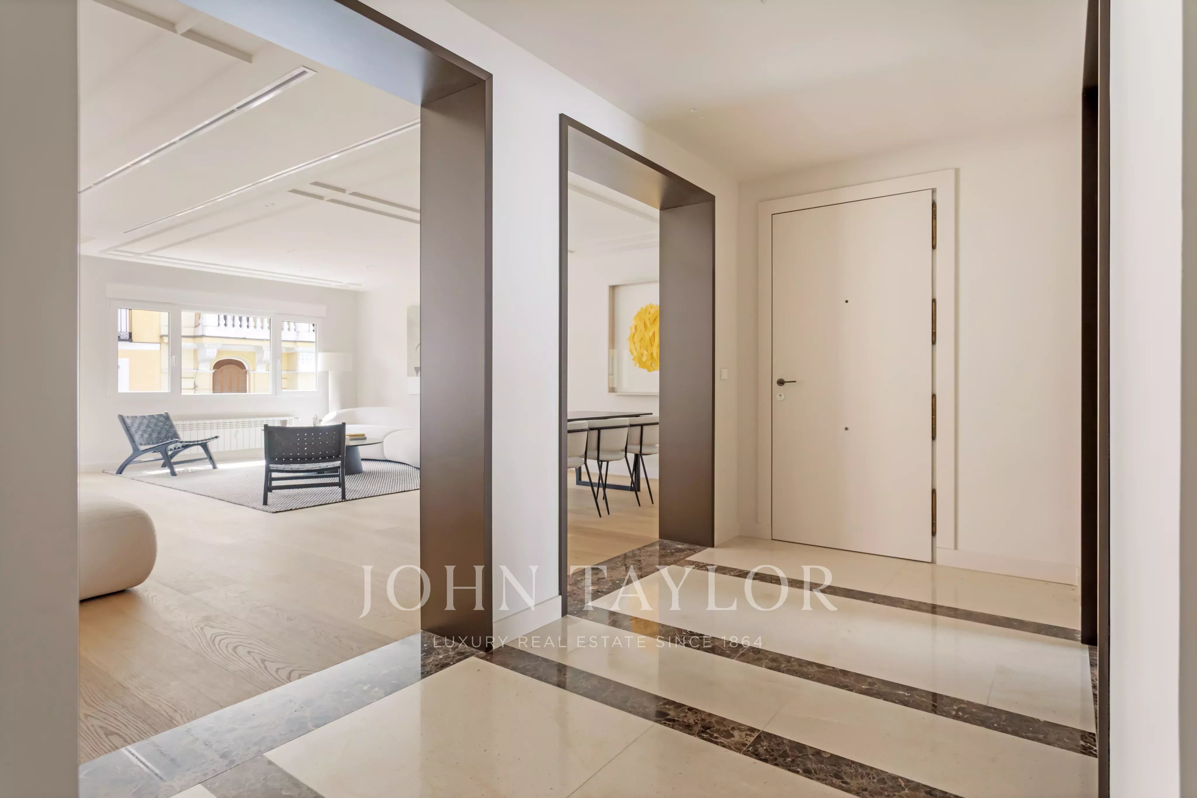 L'edificio, di carattere rappresentativo, si presenta con un imponente ingresso dove la nobiltà del marmo, l'altezza dei soffitti e una recente ristrutturazione di alta qualità riflettono il livello e l'esclusività della proprietà.