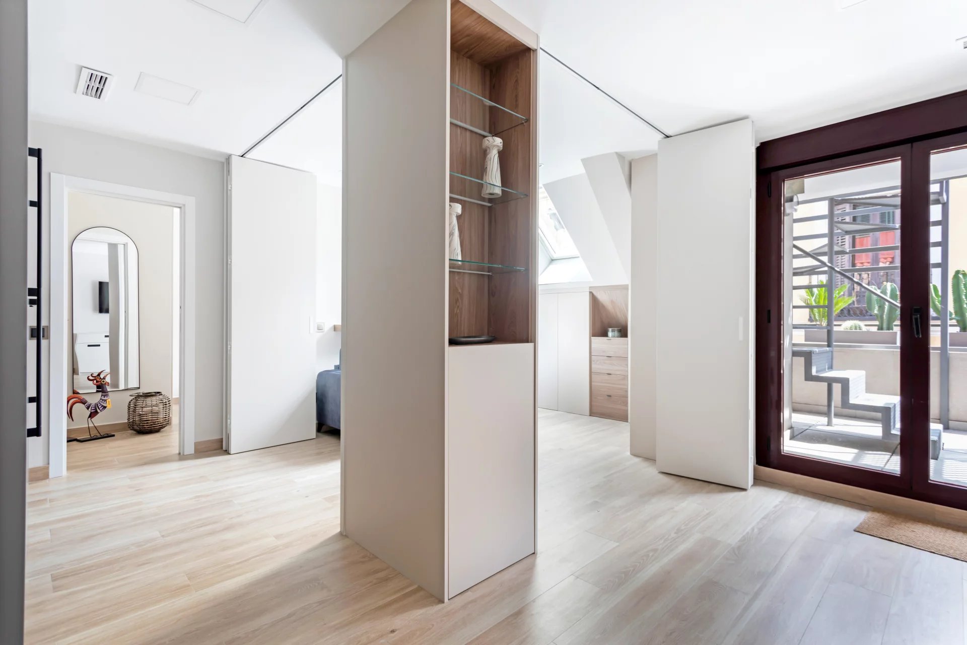 Questo duplex, completamente ristrutturato con materiali di alta qualità, si trova all'ultimo piano di un edificio moderno nel cuore del quartiere Cortes, a pochi passi dal lussuoso Four Seasons Hotel e dalla galleria Canalejas.