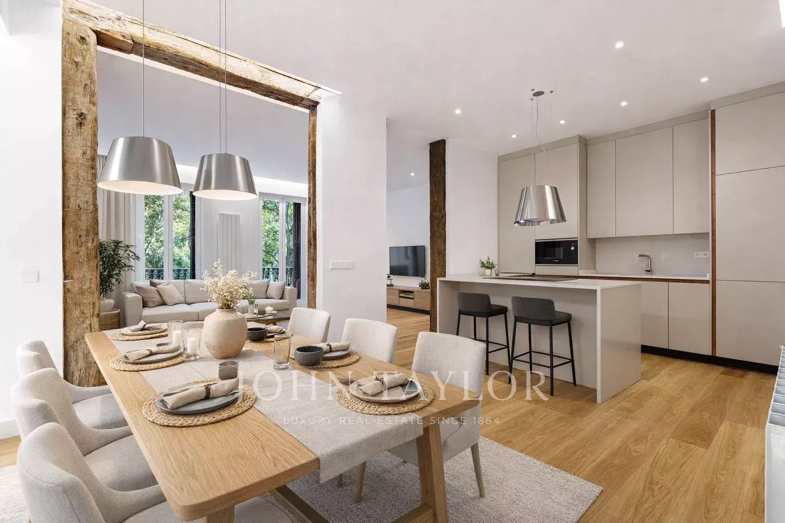 L'area sociale si articola attorno a una cucina open space, elegantemente integrata nell'insieme, dove i materiali e le finiture assumono un rilievo discreto e raffinato. Il design degli interni combina linee contemporanee con un'attenta selezione dei dettagli, creando un'atmosfera accogliente, sobria e sofisticata.