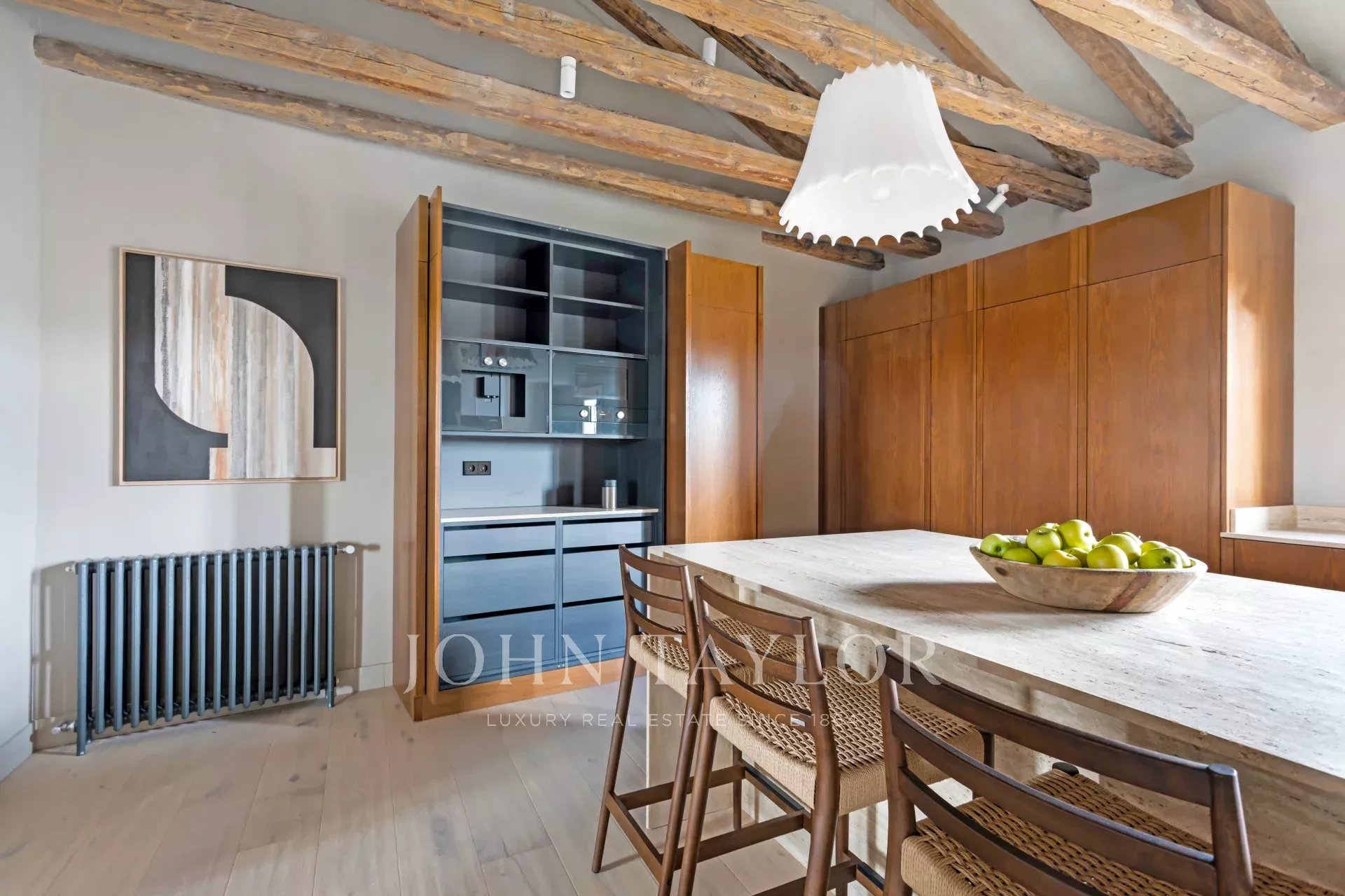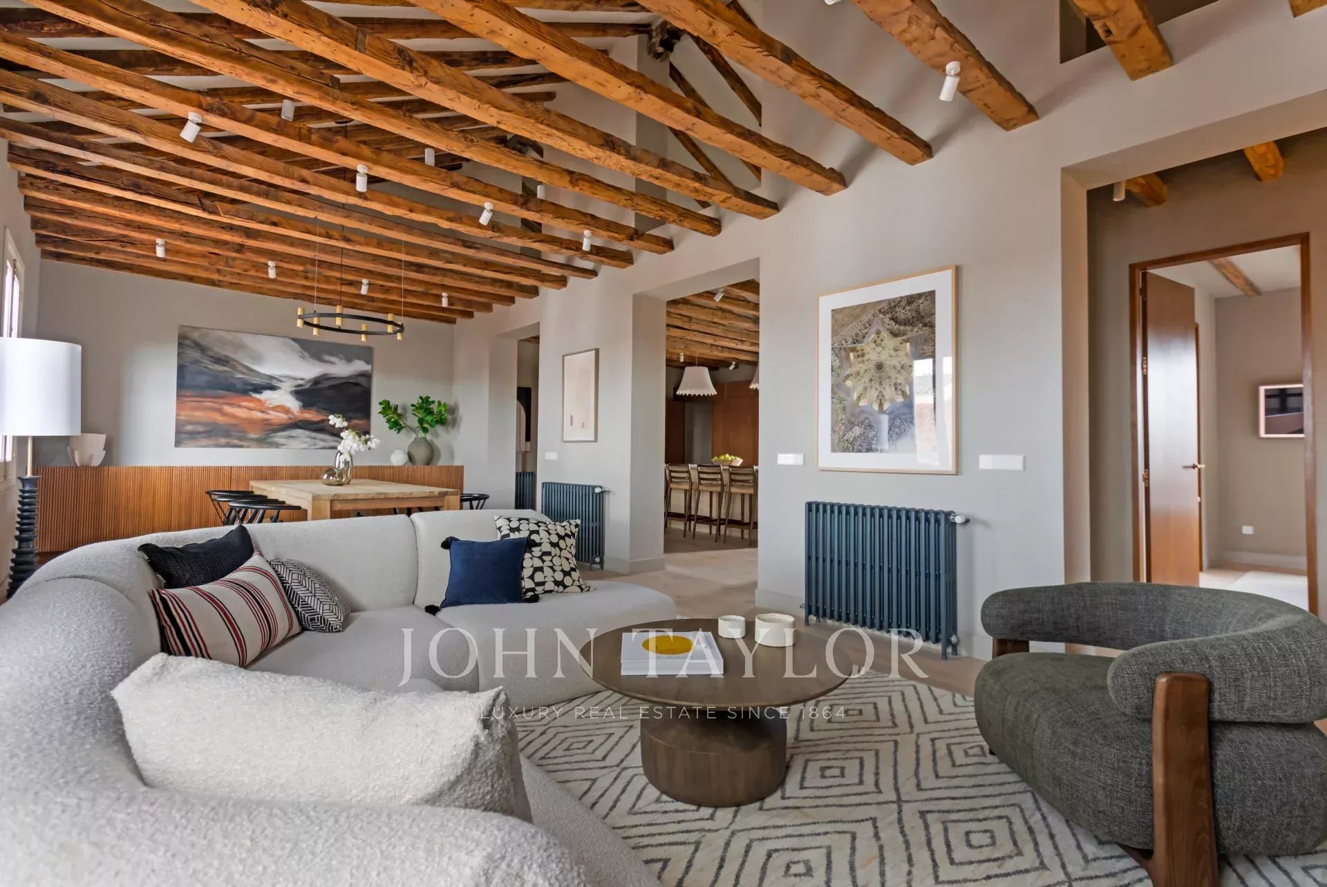 Si compone di tre camere da letto con spogliatoi e bagni en-suite completi, oltre a una lavanderia e a un bagno per gli ospiti. Questa esclusiva proprietà è completamente ristrutturata e arredata con uno squisito design interno che combina armoniosamente l'eleganza contemporanea dello stile loft con la raffinatezza senza tempo: pareti strutturate, travi originali, pavimenti in rovere lavato e finestre classiche in legno in tutta la proprietà.