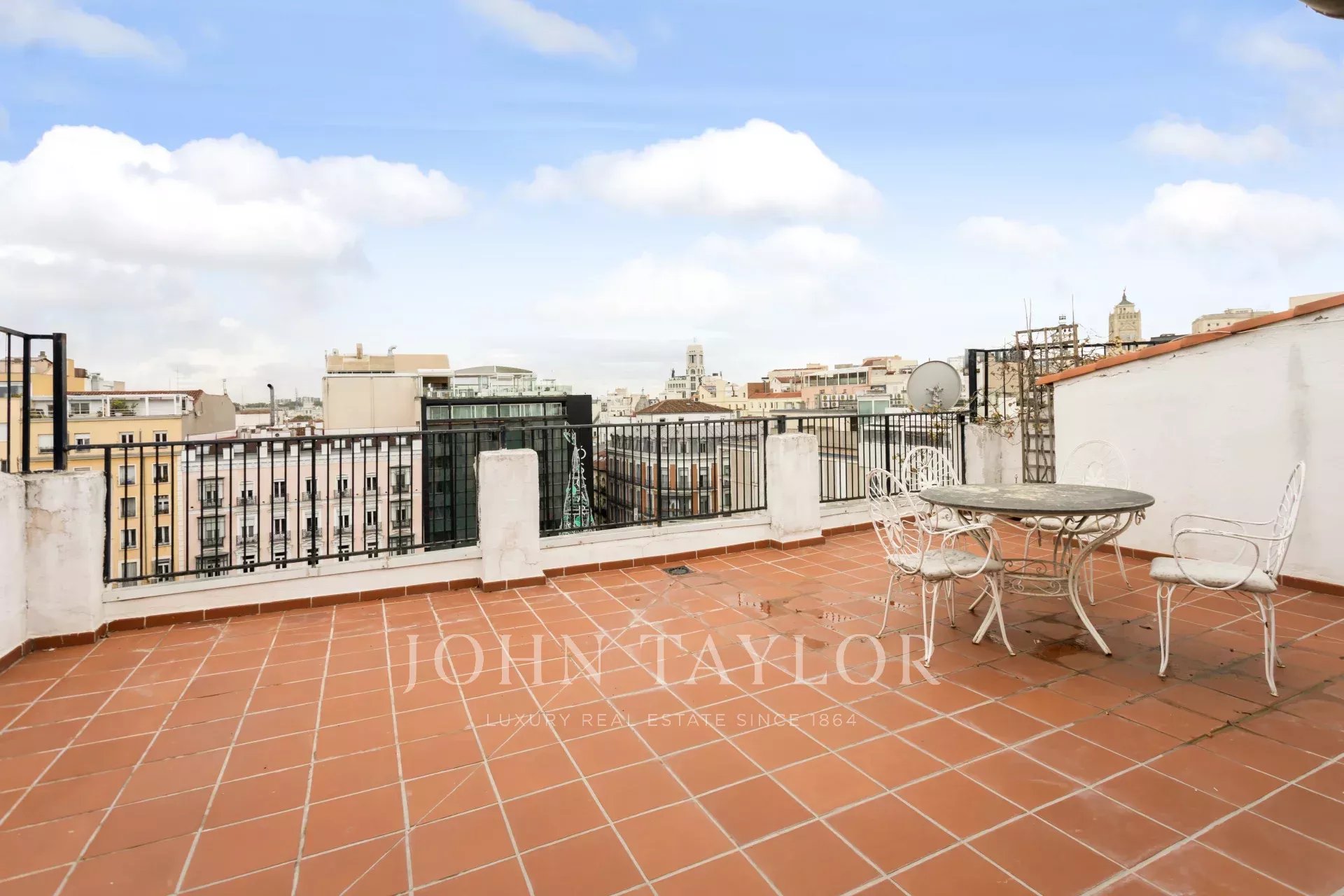 Situato nel ricercato quartiere di Justicia, circondato da boutique, gallerie e ristoranti, questo attico rappresenta un'opportunità unica di vivere con stile, privacy e fascino nel cuore di Madrid.