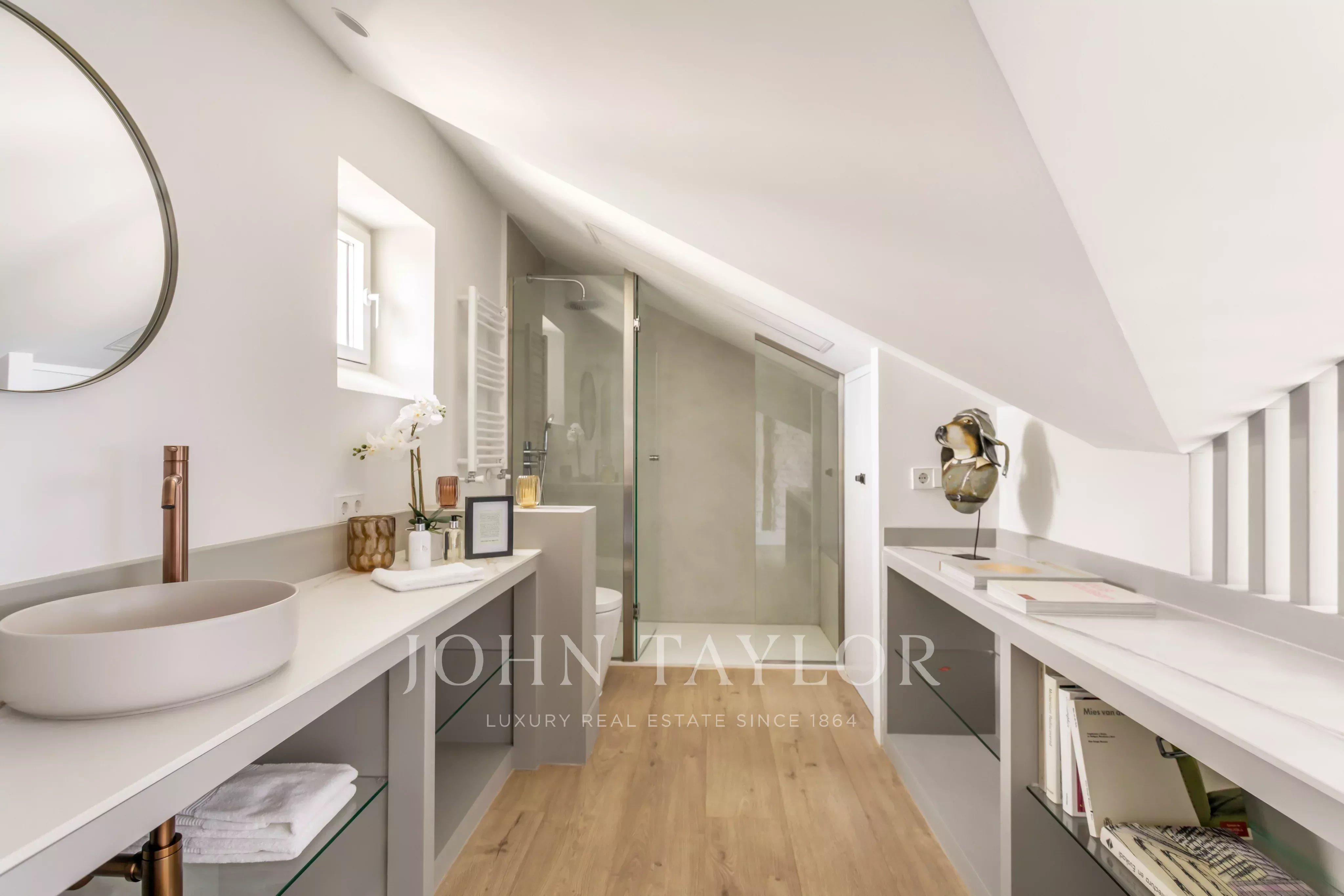 La proprietà dispone di due camere da letto e due bagni, con una disposizione equilibrata e funzionale. La recente ristrutturazione ha incorporato tende automatiche e sistemi di apertura motorizzati in tutte le finestre di tipo Velux, garantendo comfort, efficienza e una gestione intuitiva della luce naturale in tutti gli spazi.