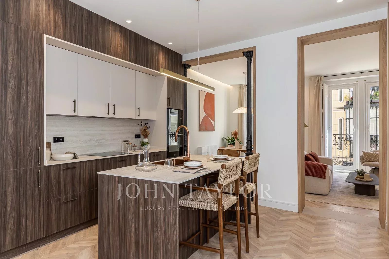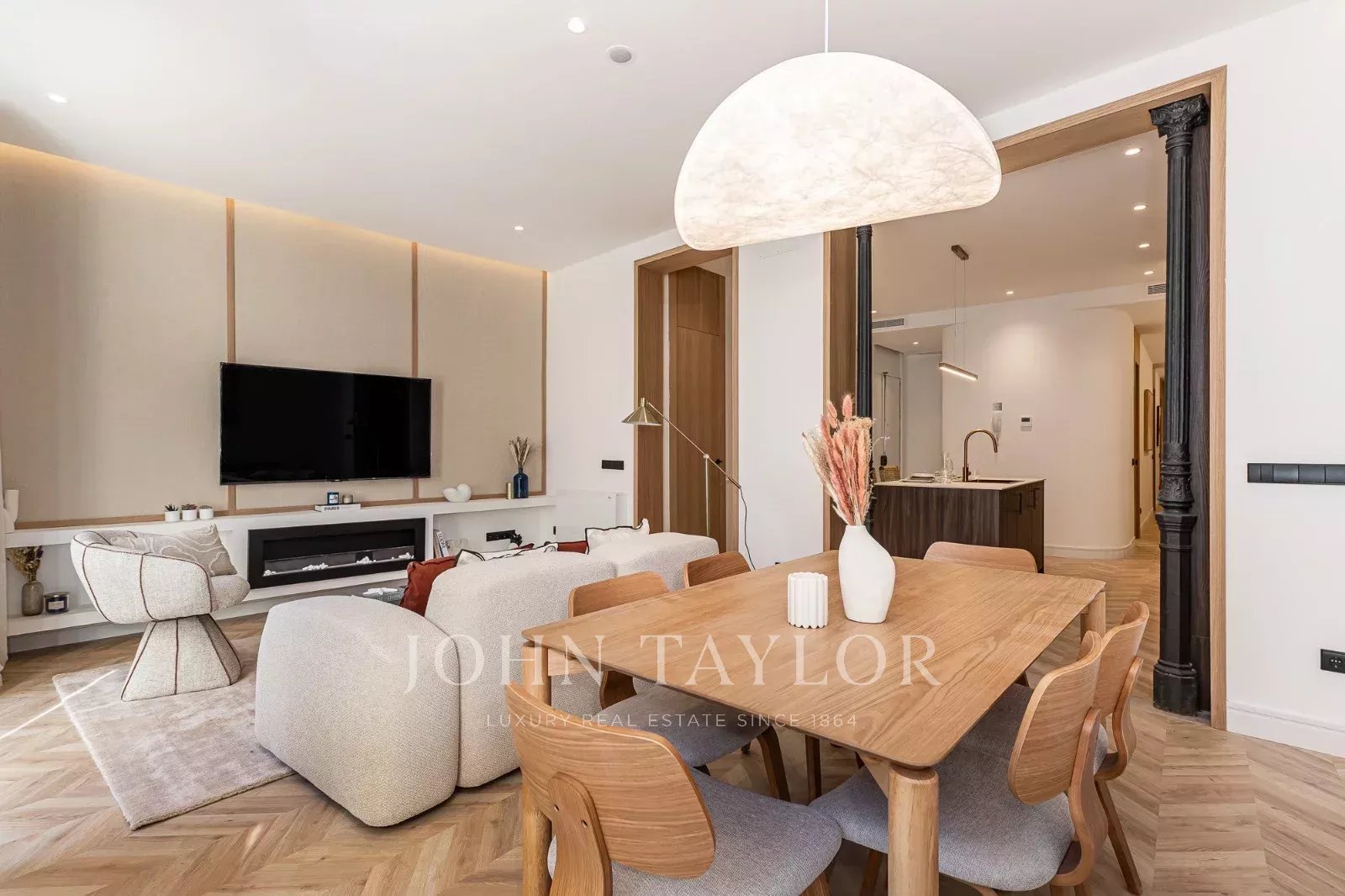 Dispone di 137 m² di superficie, distribuiti in un luminoso soggiorno-sala da pranzo con due balconi che forniscono molta luce naturale e una spaziosa cucina con isola centrale, pratica e accogliente, ideale per la vita quotidiana e per condividere momenti con la famiglia e gli amici.