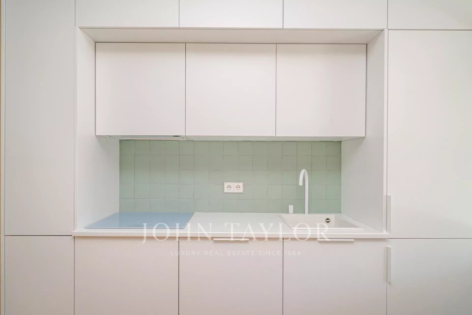 L'appartamento dispone di un bellissimo soggiorno con balcone che si affaccia sulla strada, accanto al quale si trova una stanza modulare in vetro con un letto a scomparsa, che può essere utilizzata come camera da letto per gli ospiti o ufficio. La cucina completamente attrezzata è dotata di un'isola e di un tavolo da pranzo. Vi sono inoltre altre due camere da letto e due bagni, di cui il principale con bagno privato.