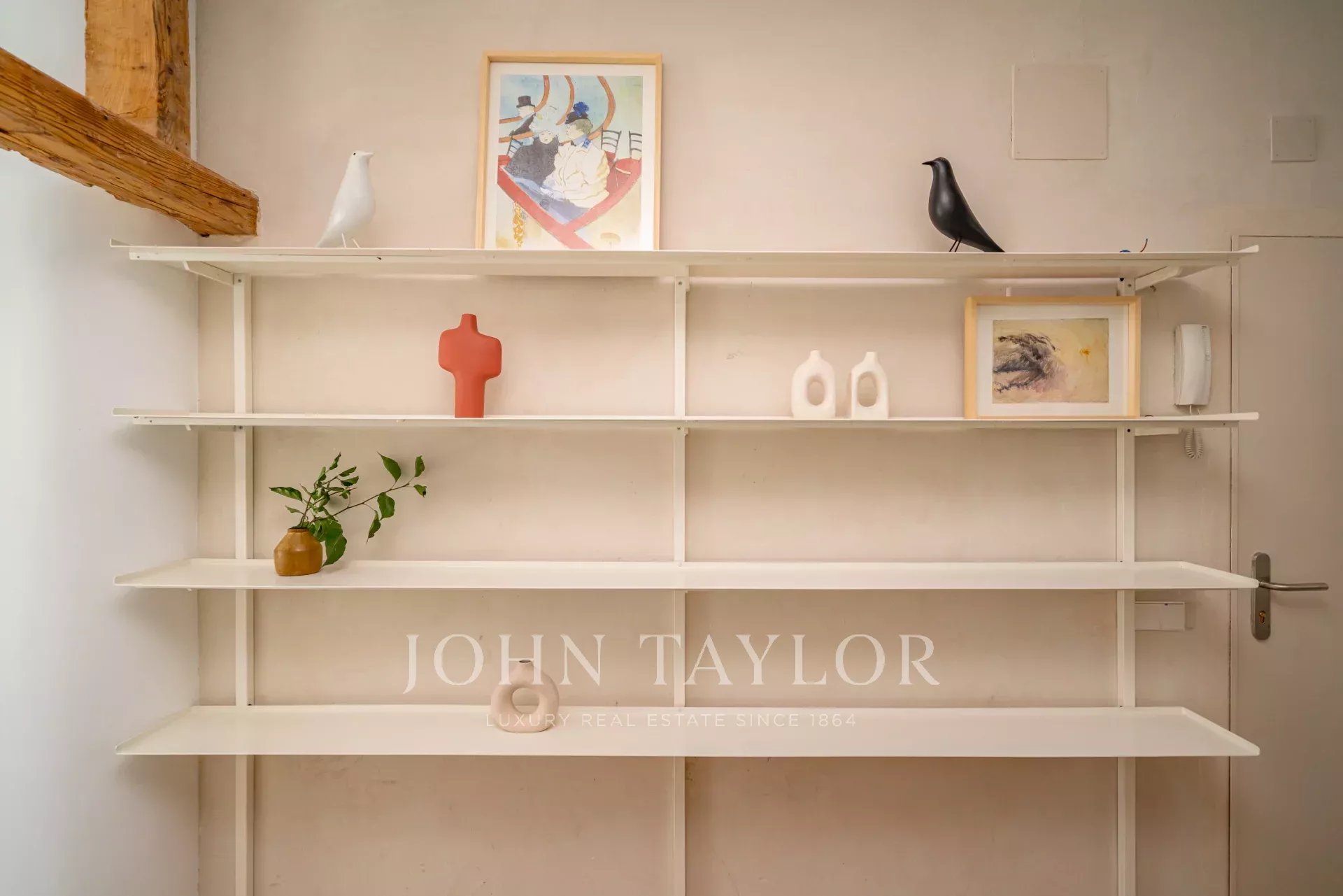 L'appartamento comprende molti dettagli: pilastri e travi in legno originali dell'edificio, progetto di illuminazione calda, mobili su misura, docce con piastrelle italiane, ecc.
