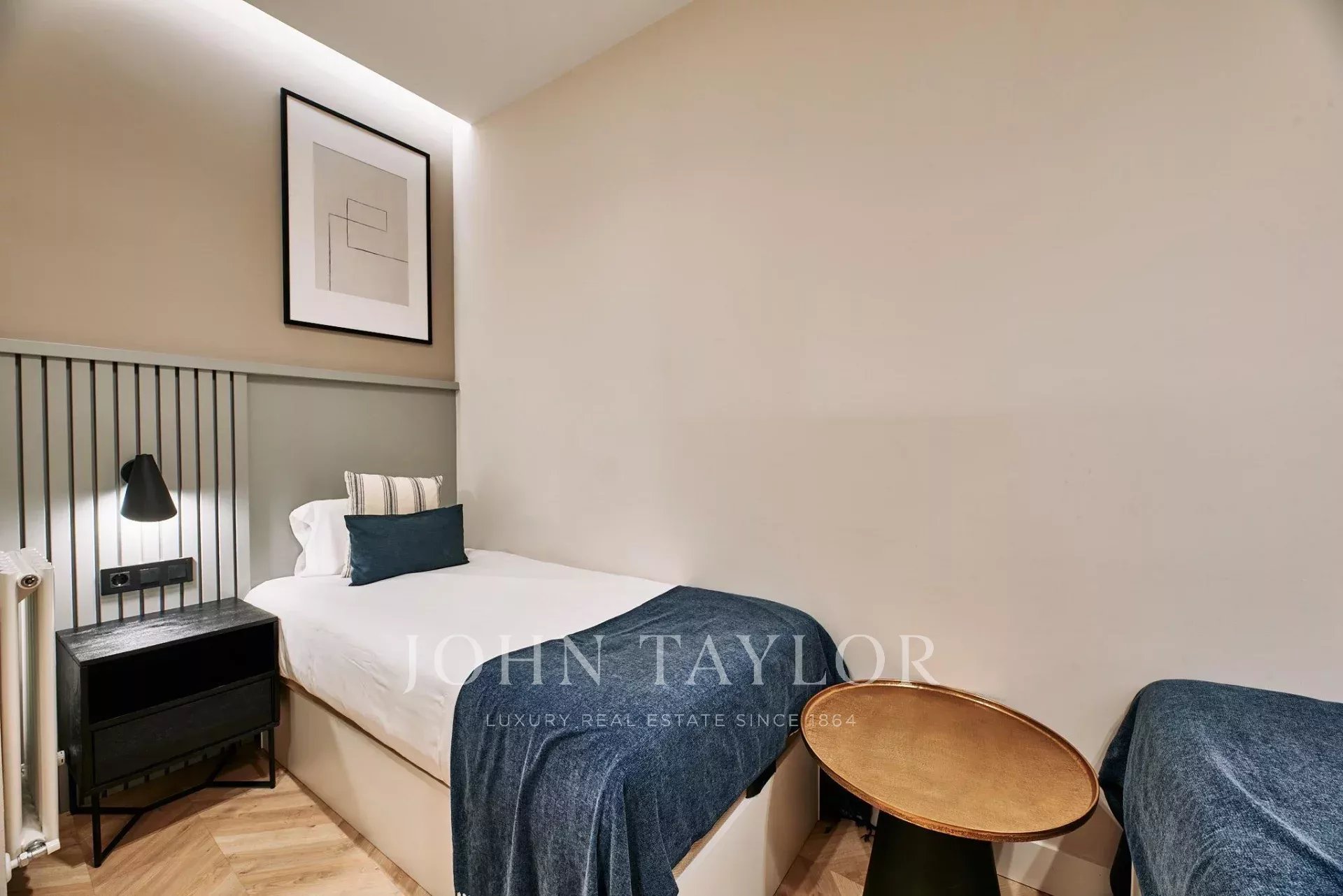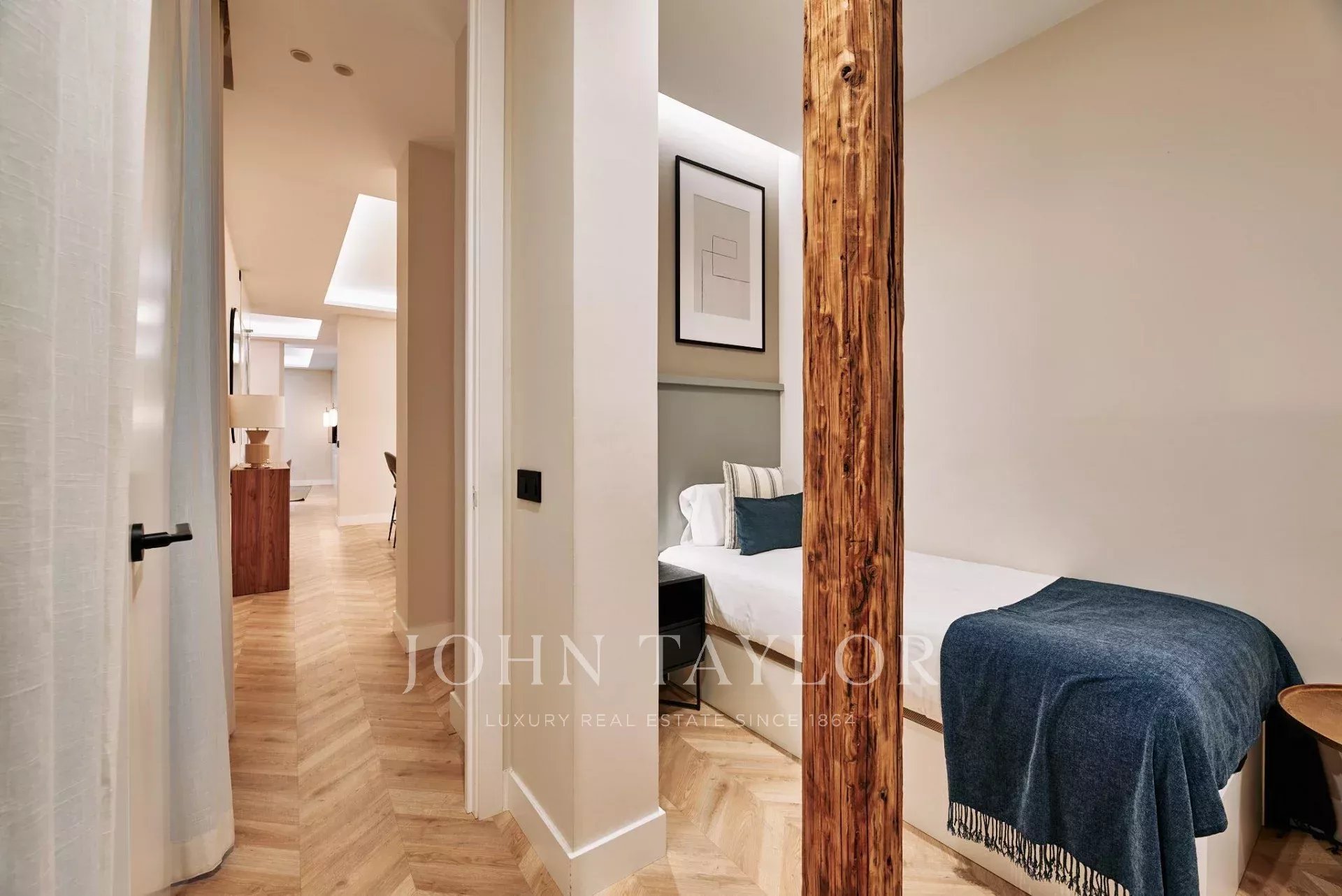 La proprietà dispone di tre ampie camere da letto e tre bagni completi, due dei quali en suite, che garantiscono privacy e comfort in ogni stanza. La disposizione è stata concepita per ottimizzare l'ingresso della luce naturale, completata da un'accurata illuminazione a LED che valorizza le finiture in legno e gli arredi di design realizzati su misura.
