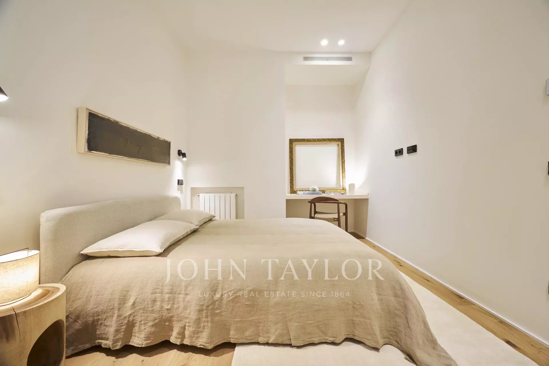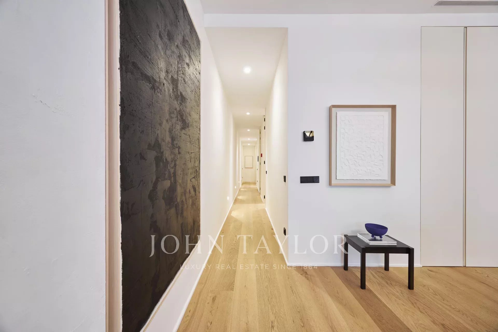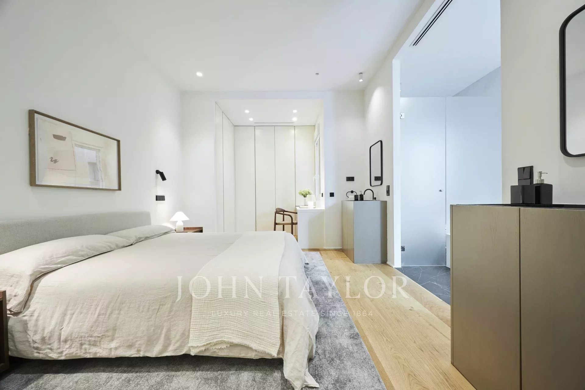 Dispone di tre spaziose camere da letto, ciascuna con bagno privato, un bagno per gli ospiti e un ripostiglio, offrendo una distribuzione perfetta che esalta la luce naturale e l'eleganza di ogni stanza.