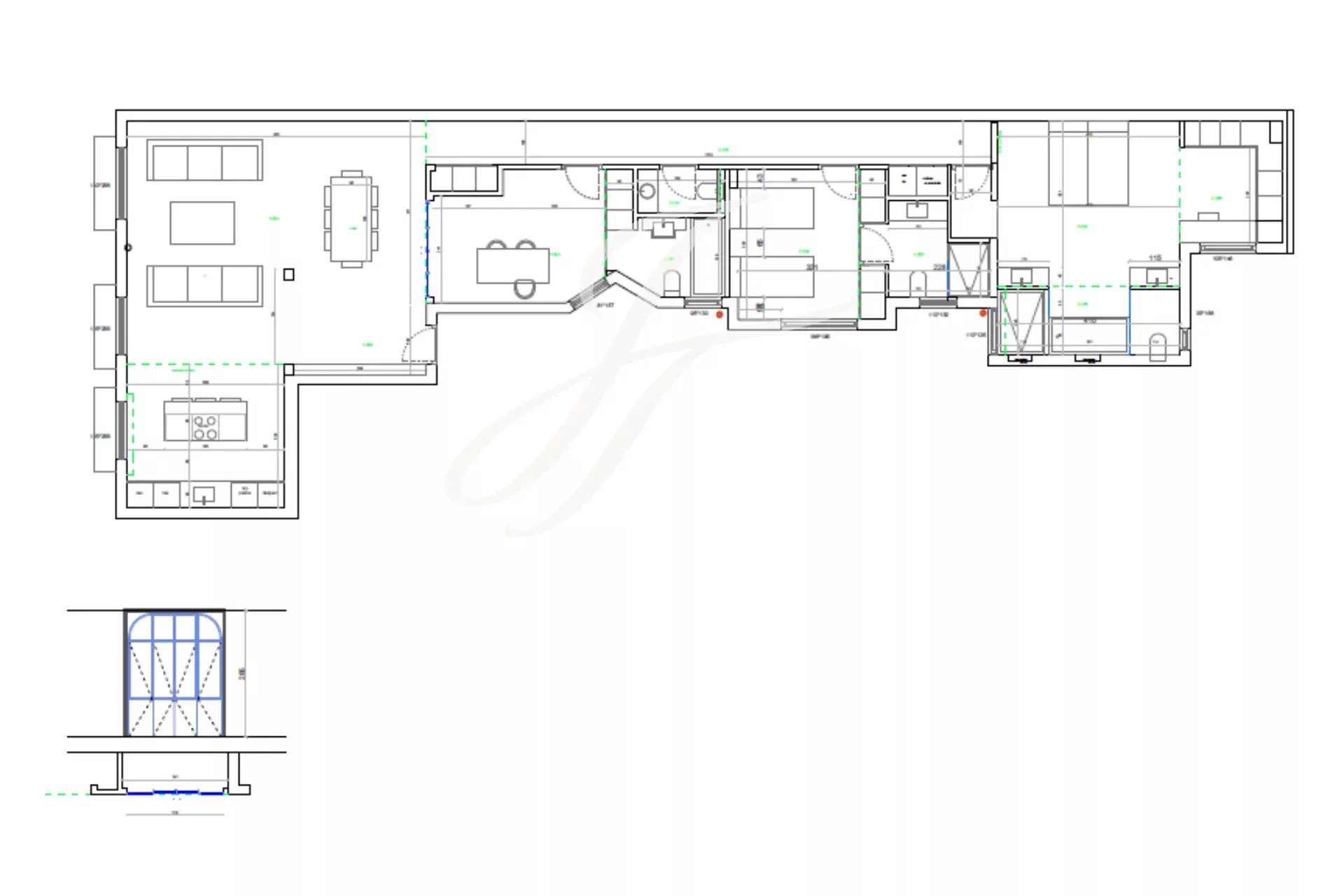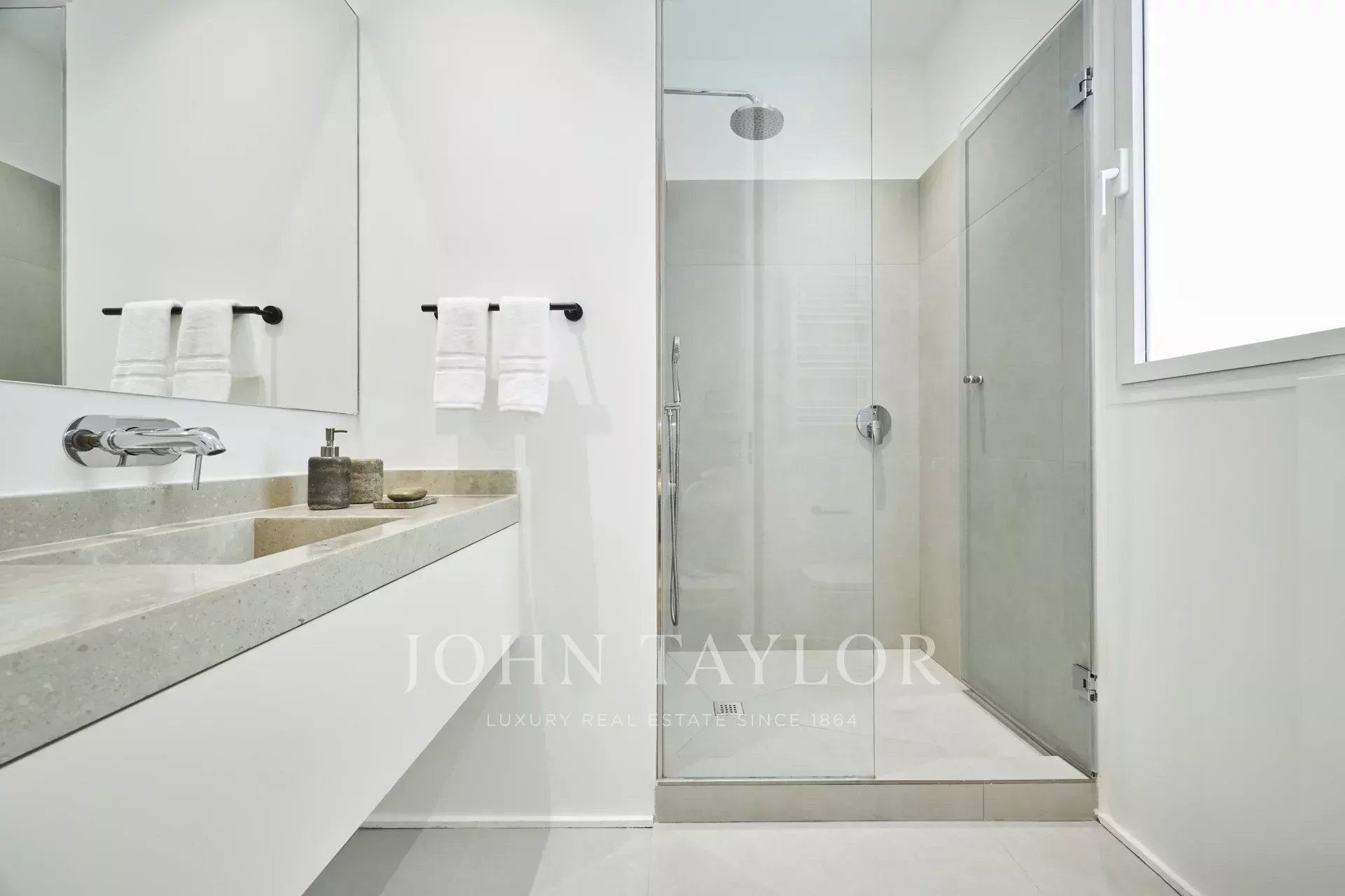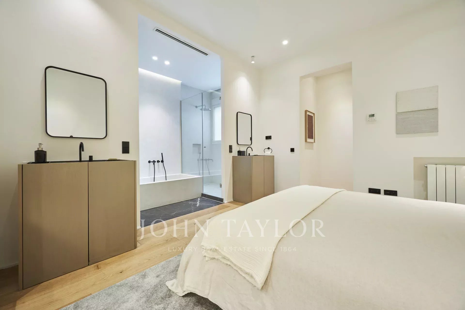 Dispone di tre spaziose camere da letto, ciascuna con bagno privato, un bagno per gli ospiti e un ripostiglio, offrendo una distribuzione perfetta che esalta la luce naturale e l'eleganza di ogni stanza.