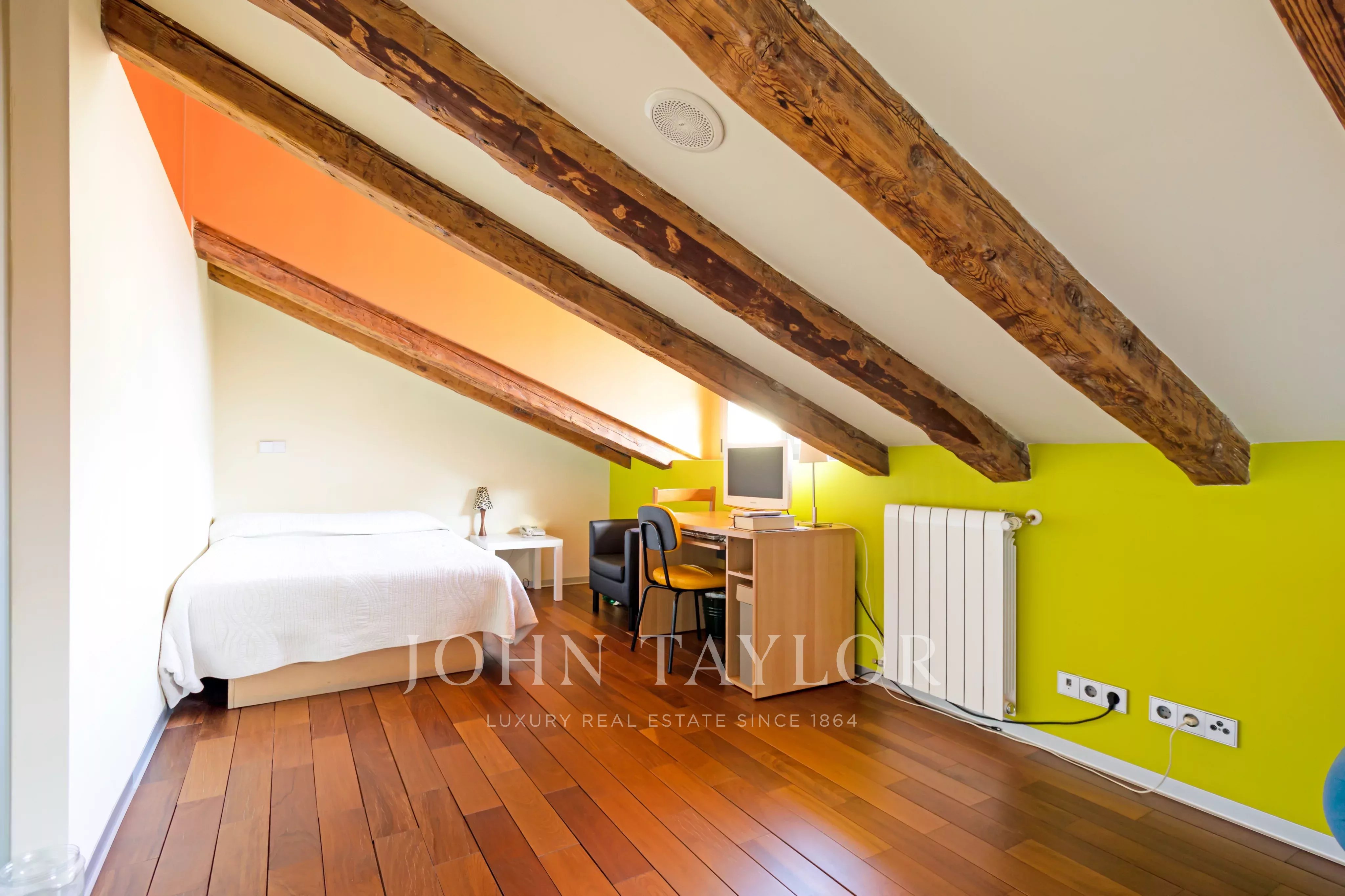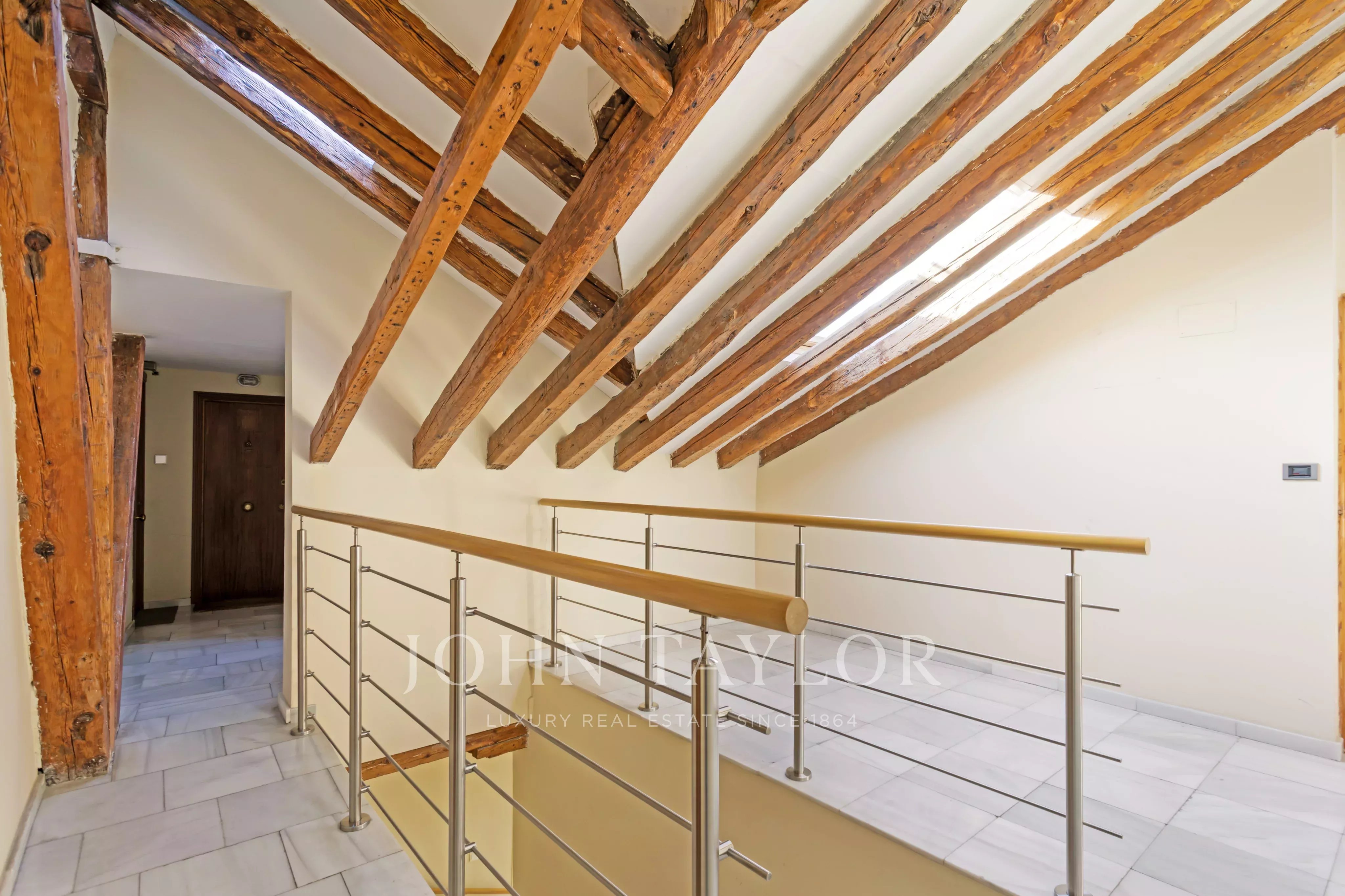 Con 260 m² di superficie costruita e 223 m² di spazio utilizzabile, la proprietà si distingue per le sue impressionanti altezze, fino a 4,70 metri, che danno una sensazione di spaziosità, luce e nobiltà difficile da trovare. La ristrutturazione completa, realizzata nel 2009, è stata eseguita con criteri squisiti, utilizzando materiali di prima qualità come marmo, granito e legno massiccio, rispettando il carattere originale dell'edificio e portandolo agli standard di lusso odierni.