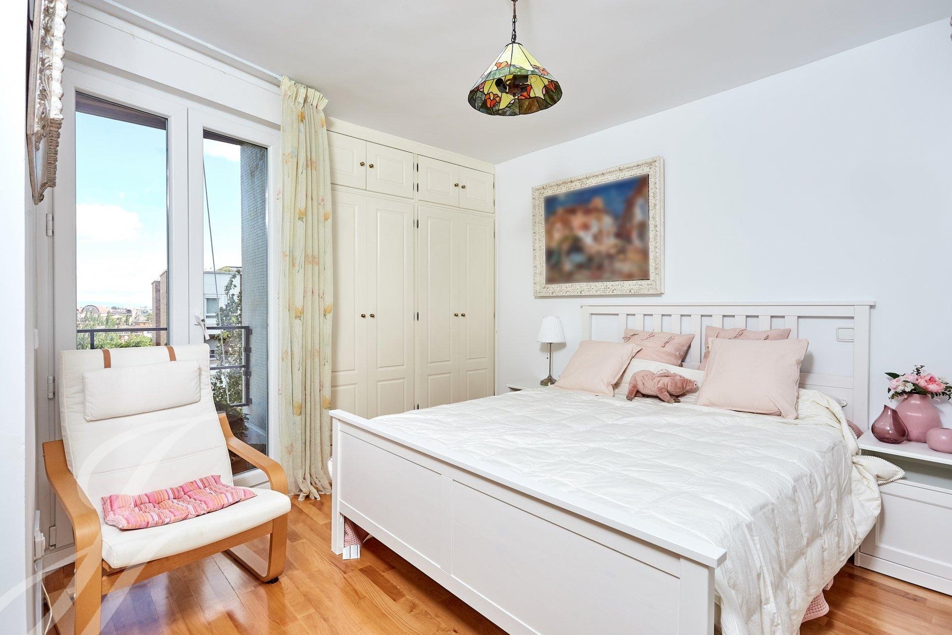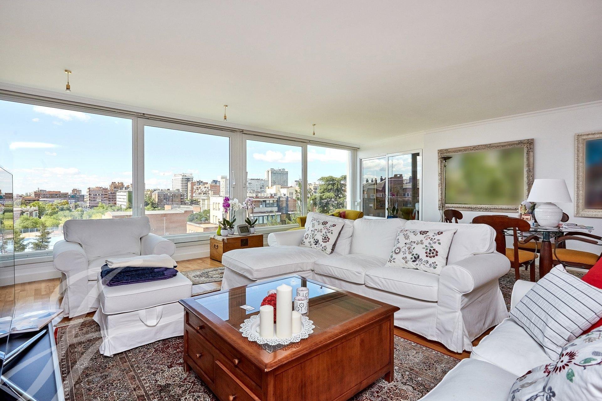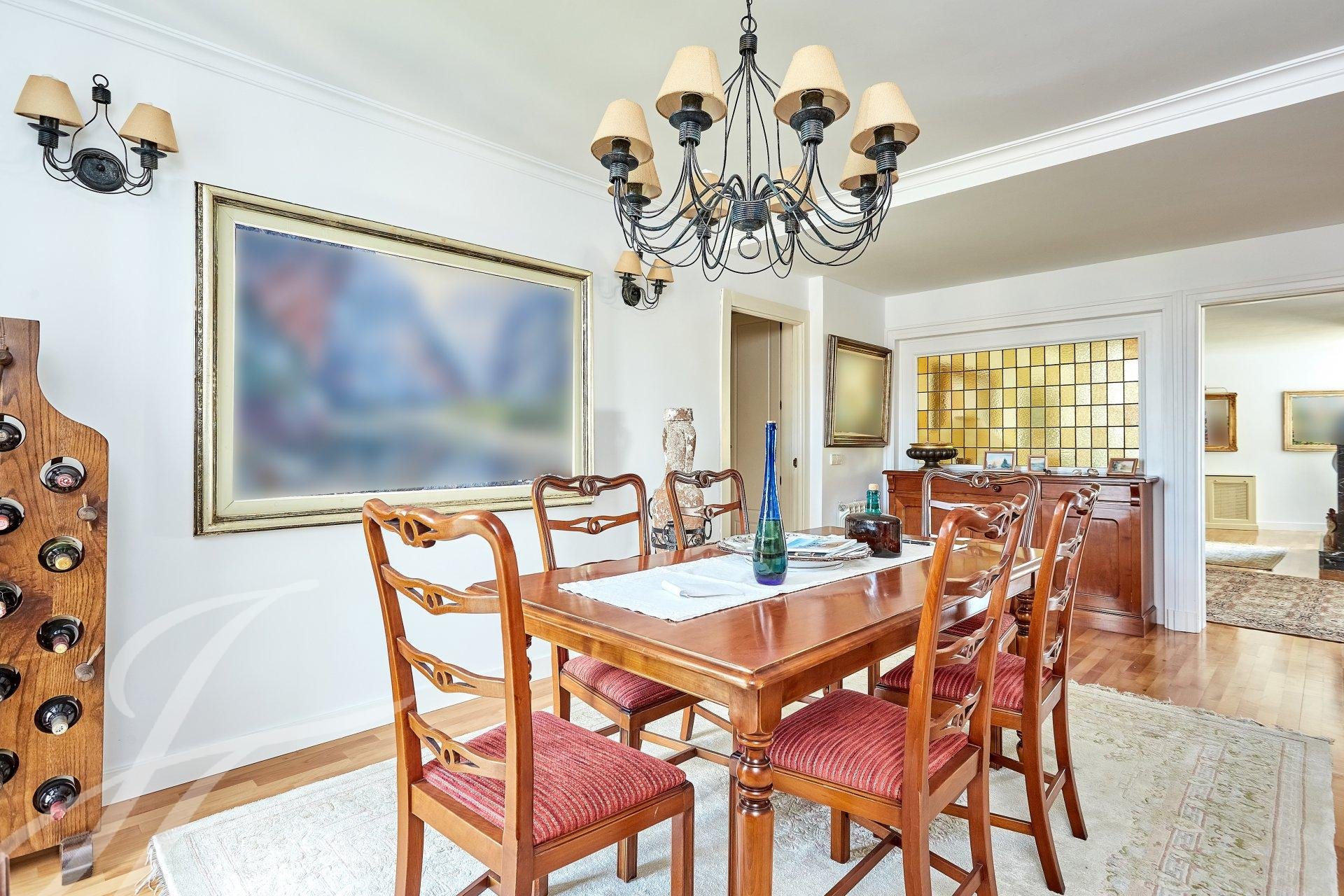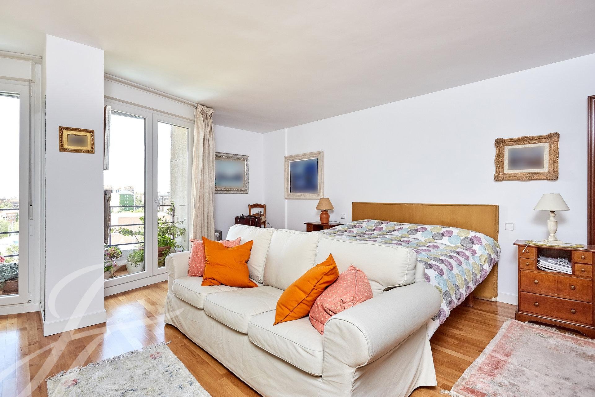 Si entra nella proprietà attraverso un luminoso ingresso con guardaroba, che dà accesso a una stanza attualmente utilizzata come ufficio personale. Entriamo in un ampio soggiorno con tre stanze con grandi finestre, una delle quali con camino. La vista e la luminosità di queste stanze sono eccellenti, grazie al loro orientamento a sud. Passiamo alla zona notte, dove troviamo la camera da letto principale (originariamente due) con spogliatoio, bagno privato in marmo e una piccola terrazza, oltre a due camere da letto con accesso a un'altra terrazza, servite da un bagno.