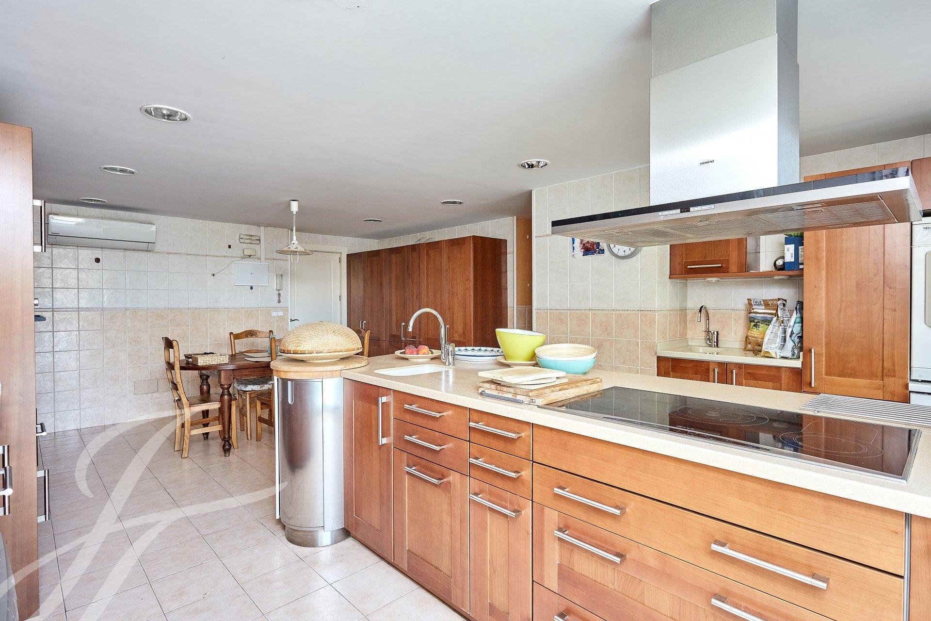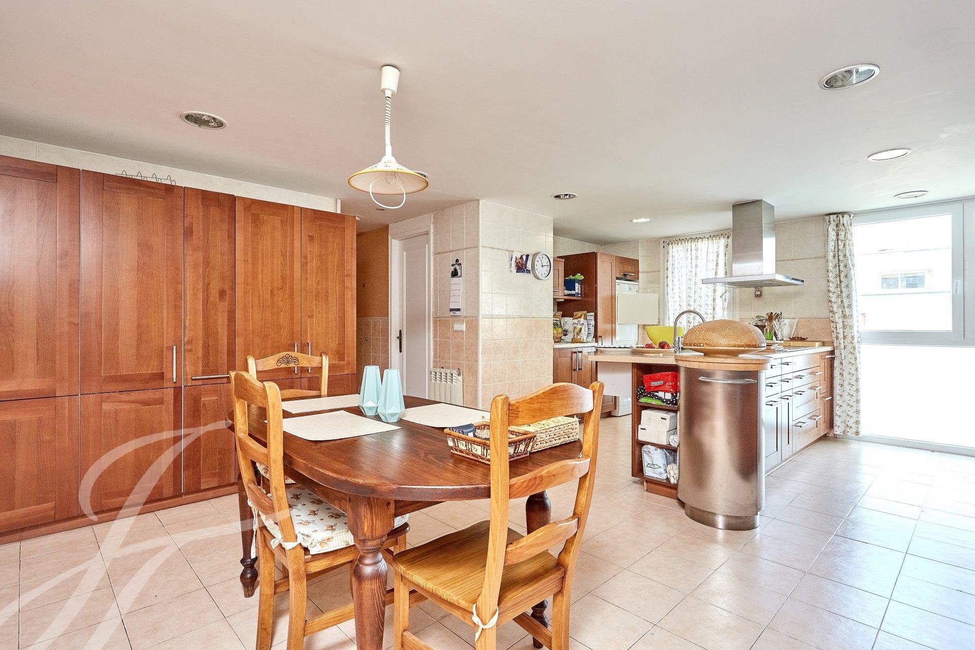 Lasciando la zona riposo si accede alla sala da pranzo con accesso diretto all'ampia zona cucina con ufficio e camera di servizio con bagno separato.