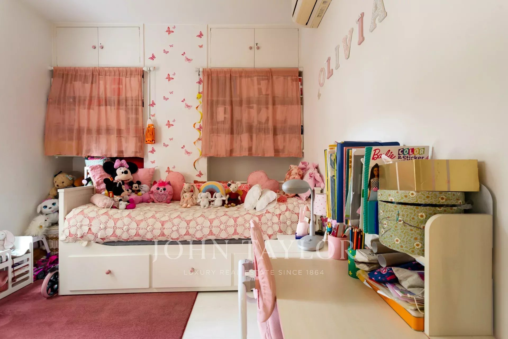 La proprietà è completata da una seconda luminosa camera da letto con armadio a muro, un bagno completo con zona lavanderia e ripostiglio e una magnifica cucina completamente attrezzata con vetrata e vista sul soggiorno.