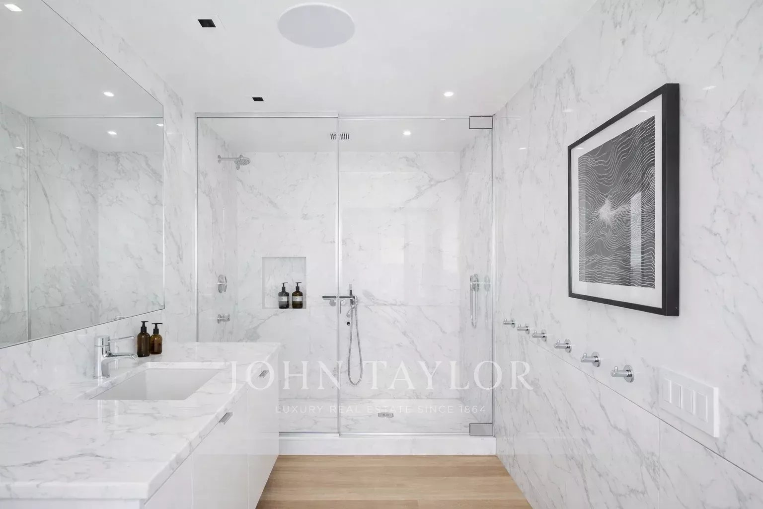 La zona sociale è composta da un ampio soggiorno-sala da pranzo di circa 50 m² con orientamento a sud e grandi finestre che garantiscono un magnifico ingresso di luce naturale. La cucina, di dimensioni generose, dispone di una zona ufficio e di un'area di asciugatura separata.