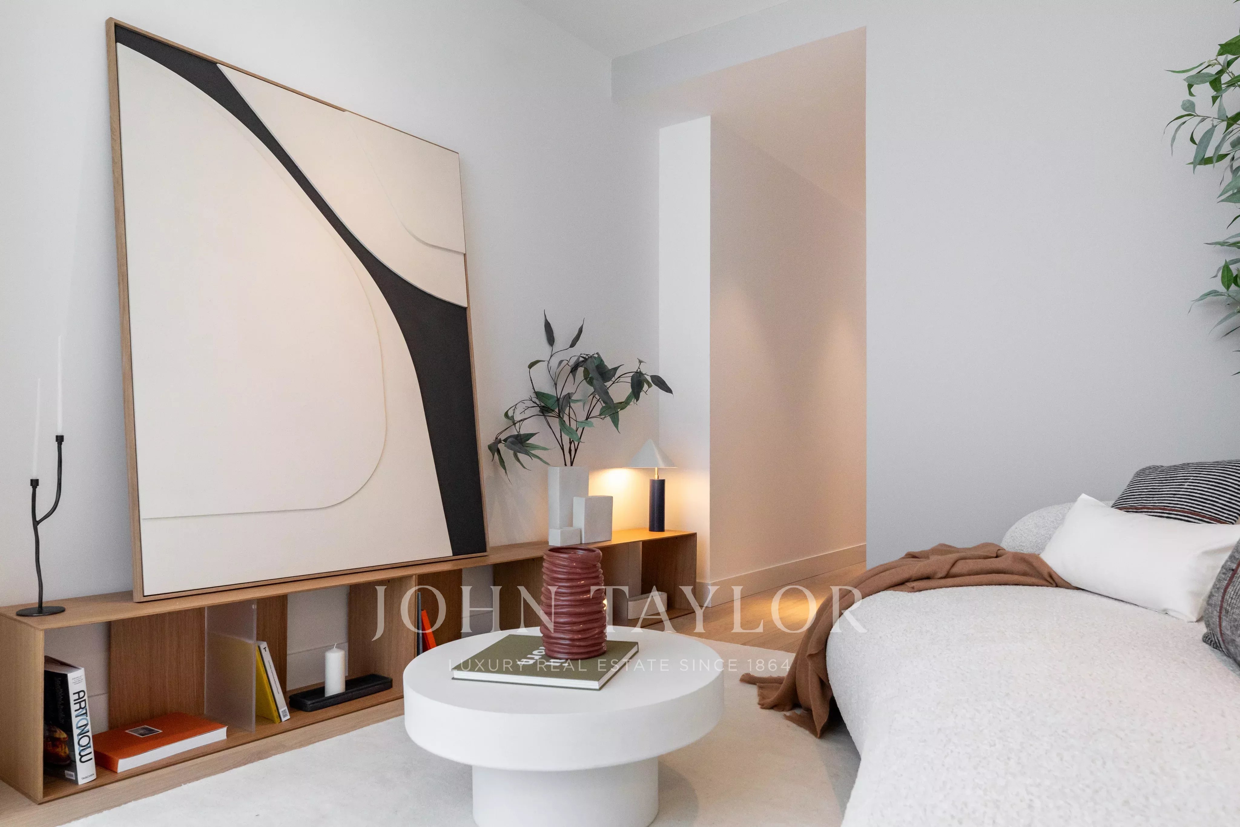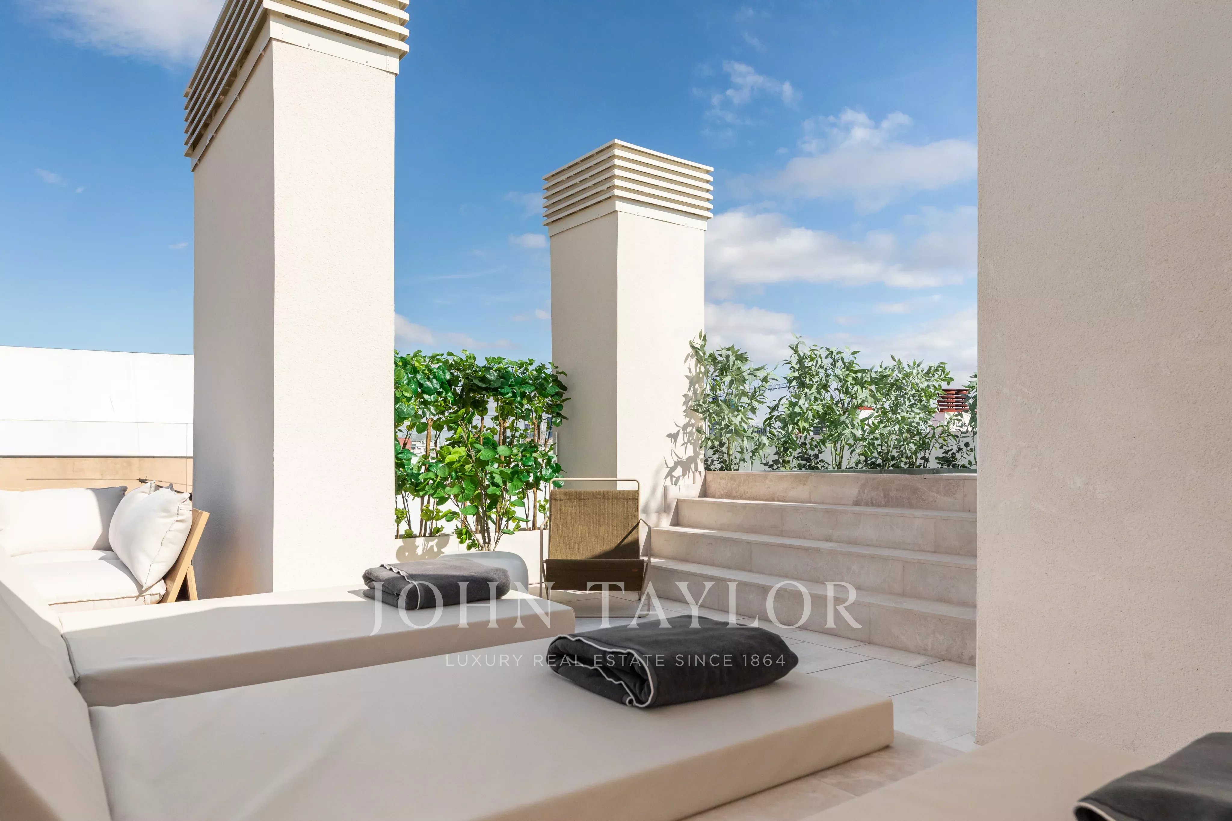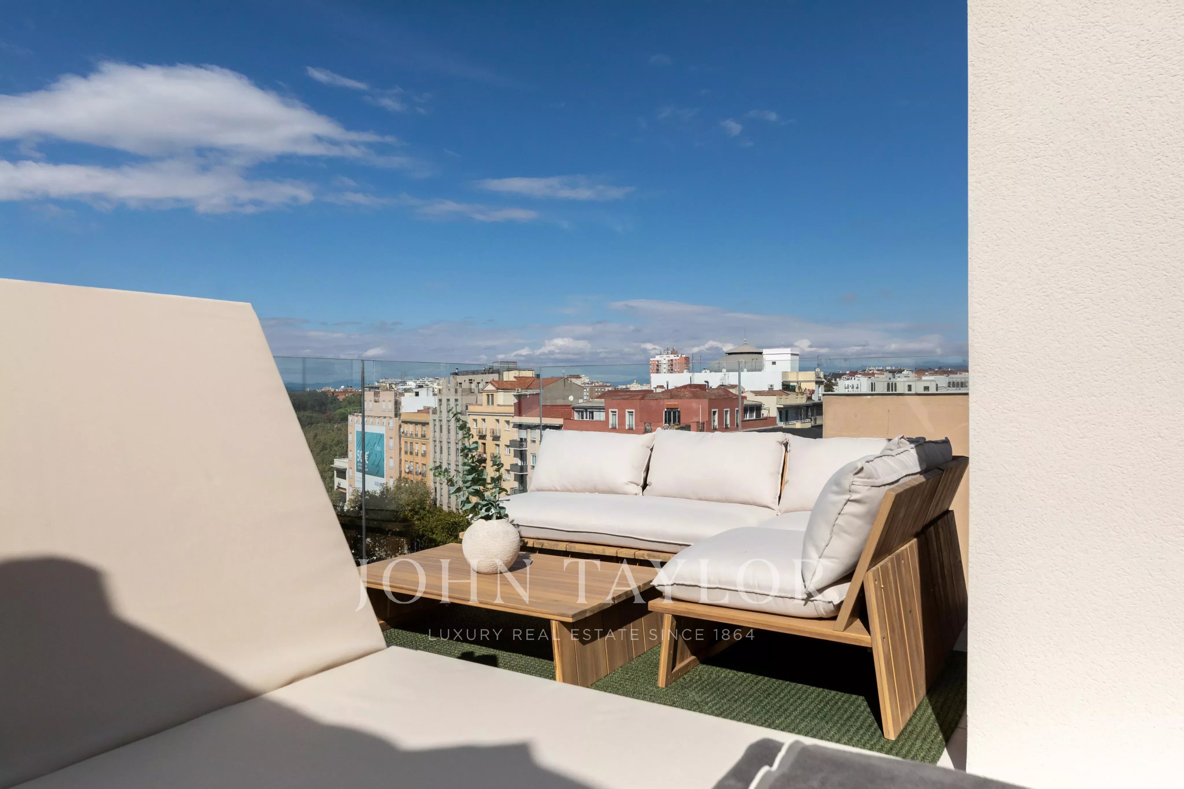 Nuovissimo attico duplex al sesto piano, con una superficie di 175 m² nel quartiere Chamberí di Almagro, Madrid, offre una perfetta combinazione di comfort e tecnologia moderna.
