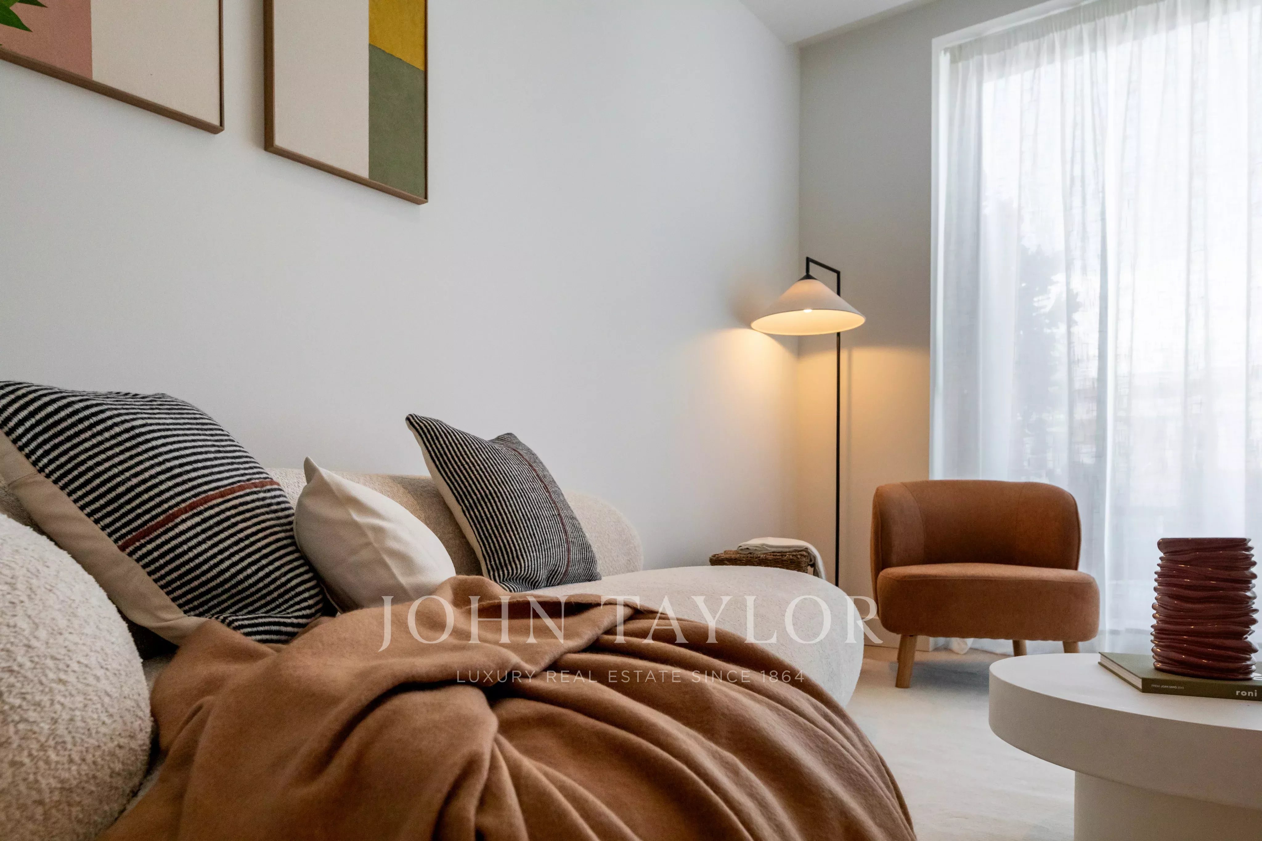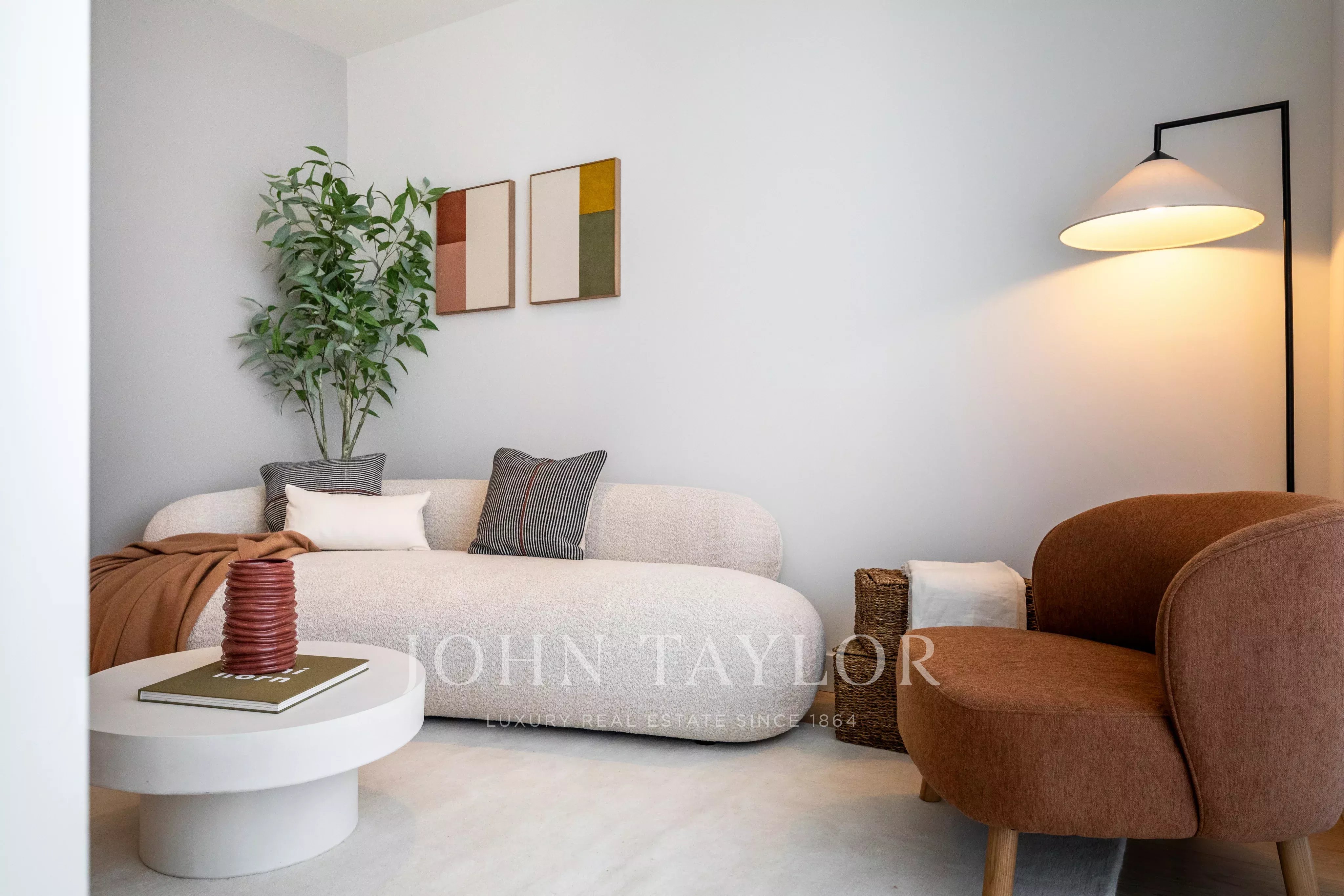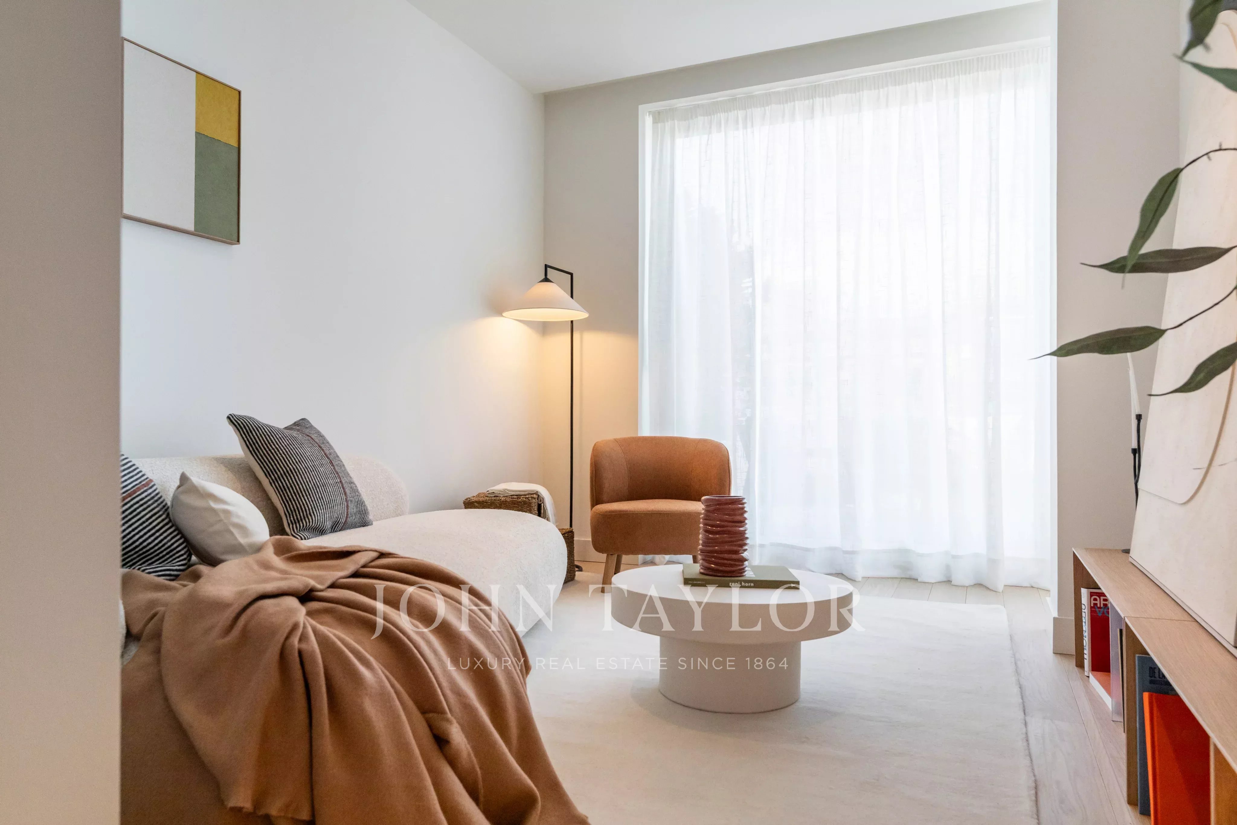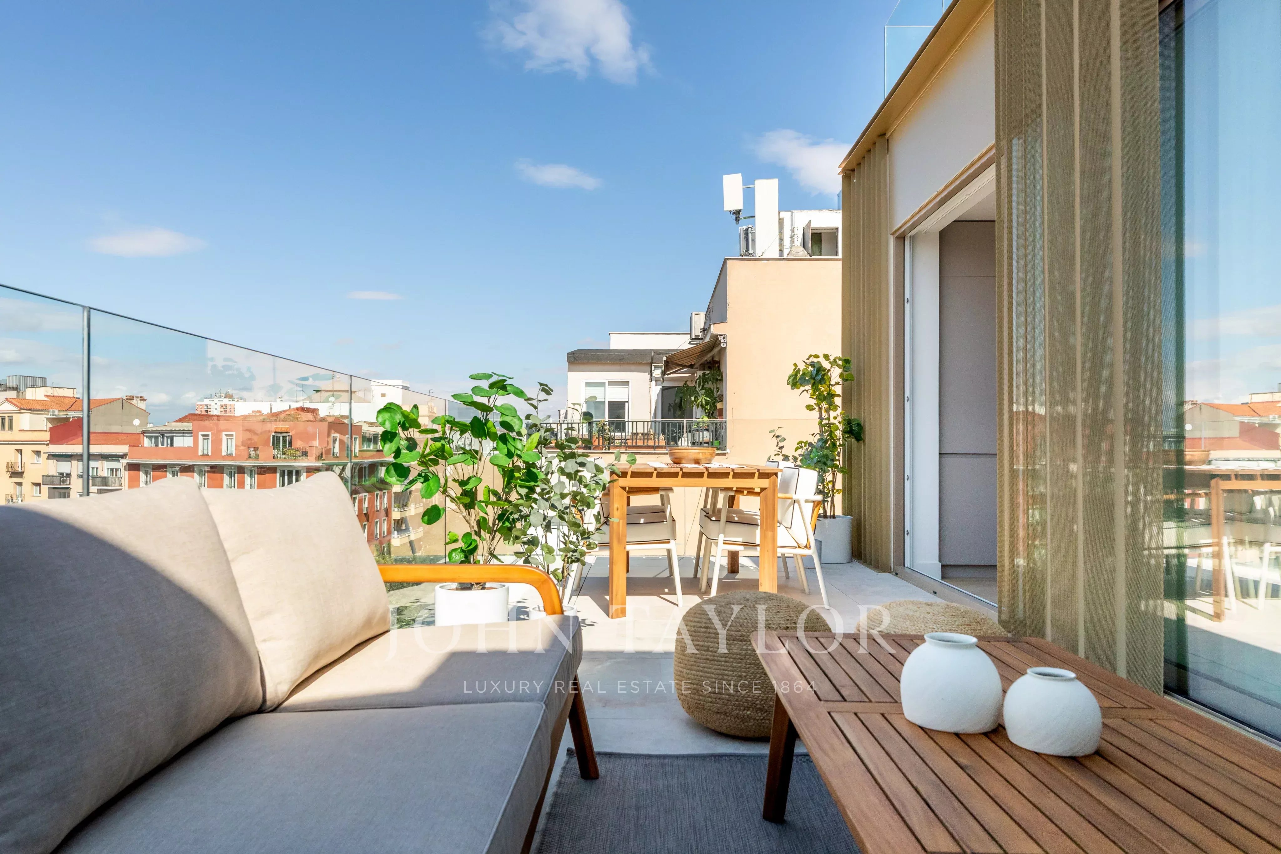 Nuovissimo attico duplex al sesto piano, con una superficie di 175 m² nel quartiere Chamberí di Almagro, Madrid, offre una perfetta combinazione di comfort e tecnologia moderna.