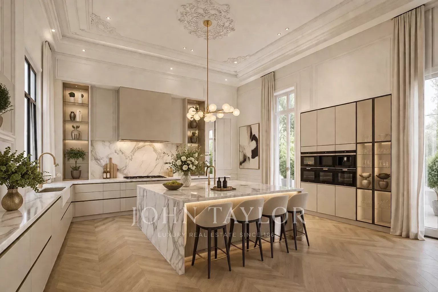 L'abitazione si organizza attorno a un'ampia zona sociale, dove salotto, sala da pranzo e una cucina indipendente con connessione visiva all'area del home bar consentono di proiettare uno spazio aperto, elegante e completamente personalizzabile.