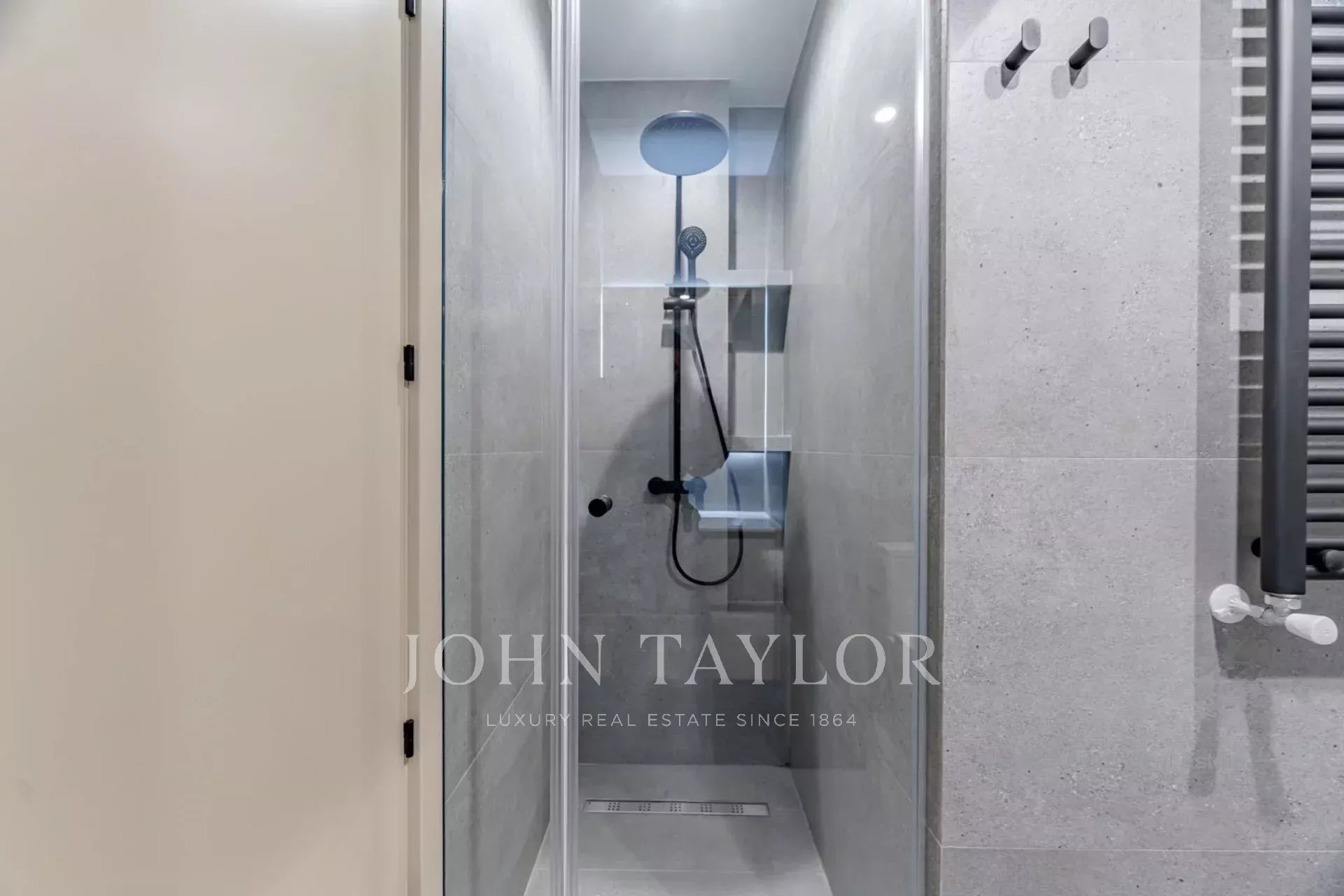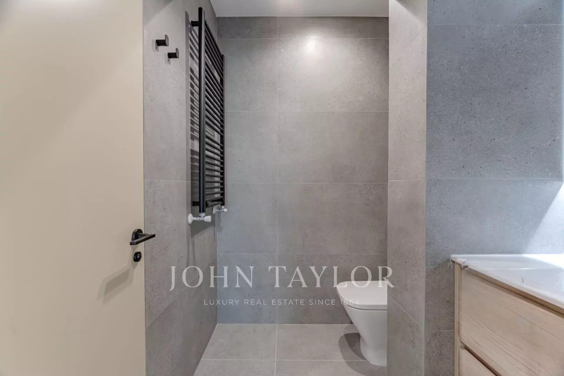 La camera da letto principale, anch'essa con accesso a un balcone, dispone di un bagno interno, mentre un secondo bagno completo serve la zona giorno. La proprietà offre numerosi armadi a muro dal pavimento al soffitto, aria condizionata, riscaldamento individuale e acqua calda con caldaia a gas.