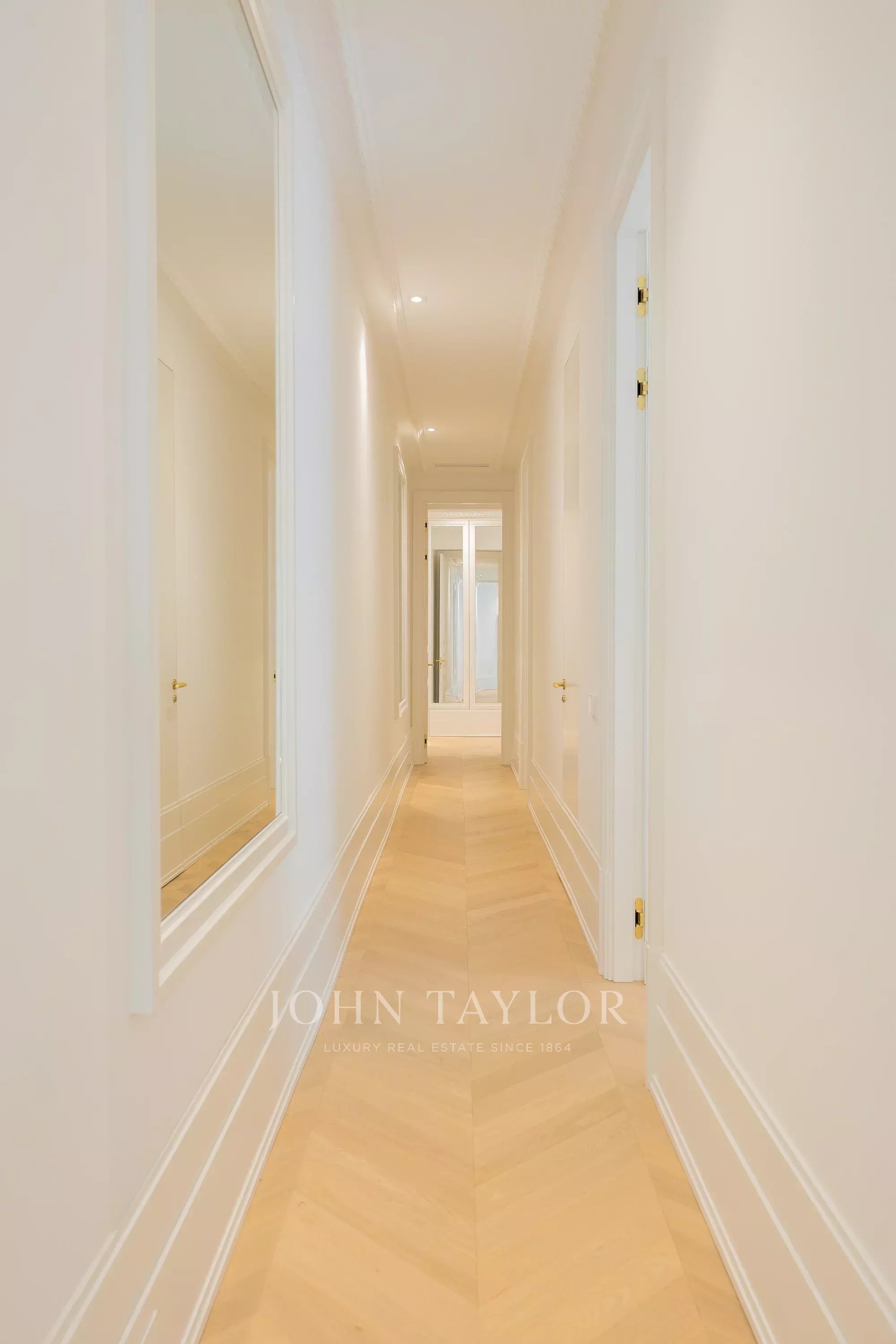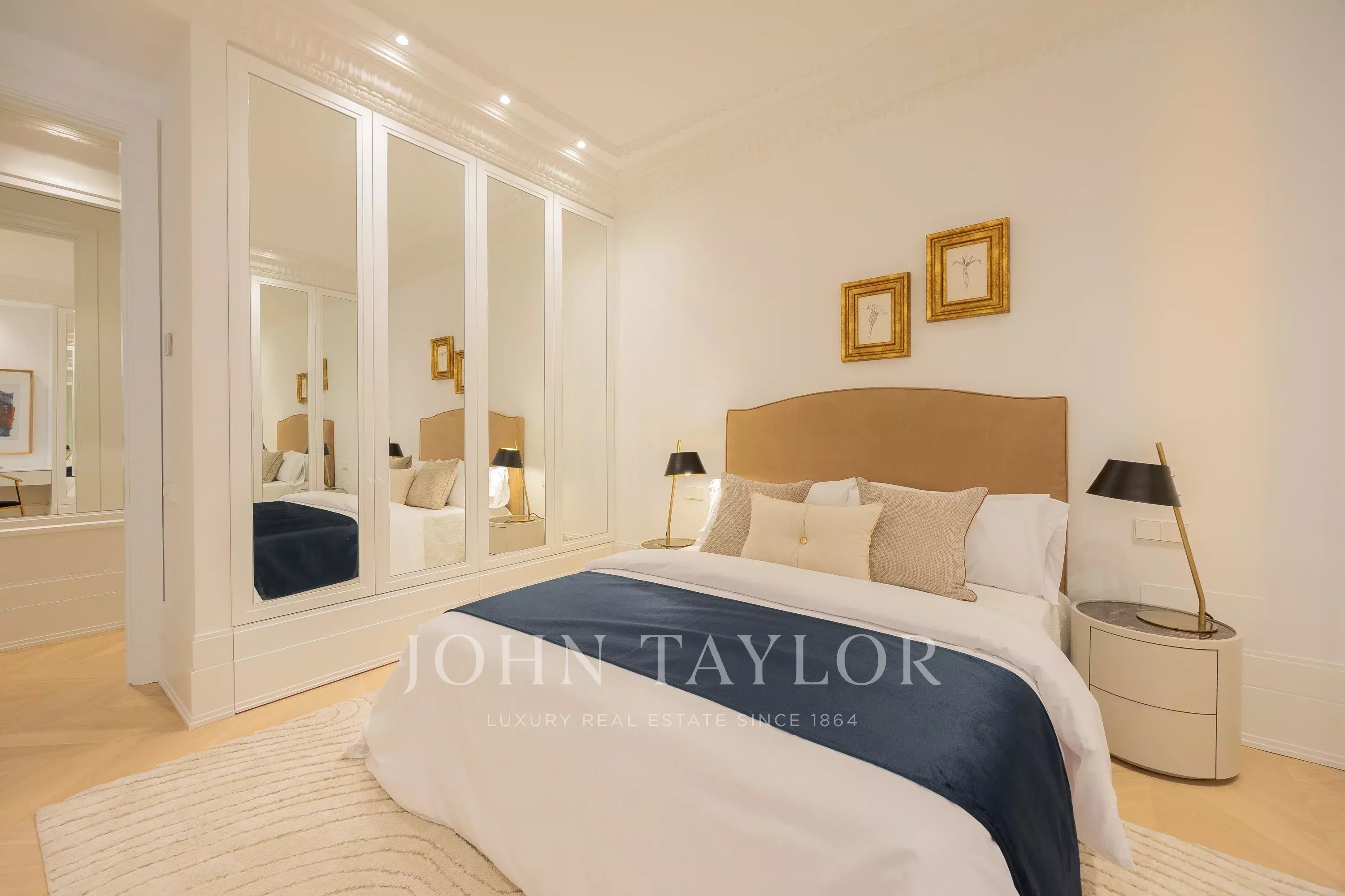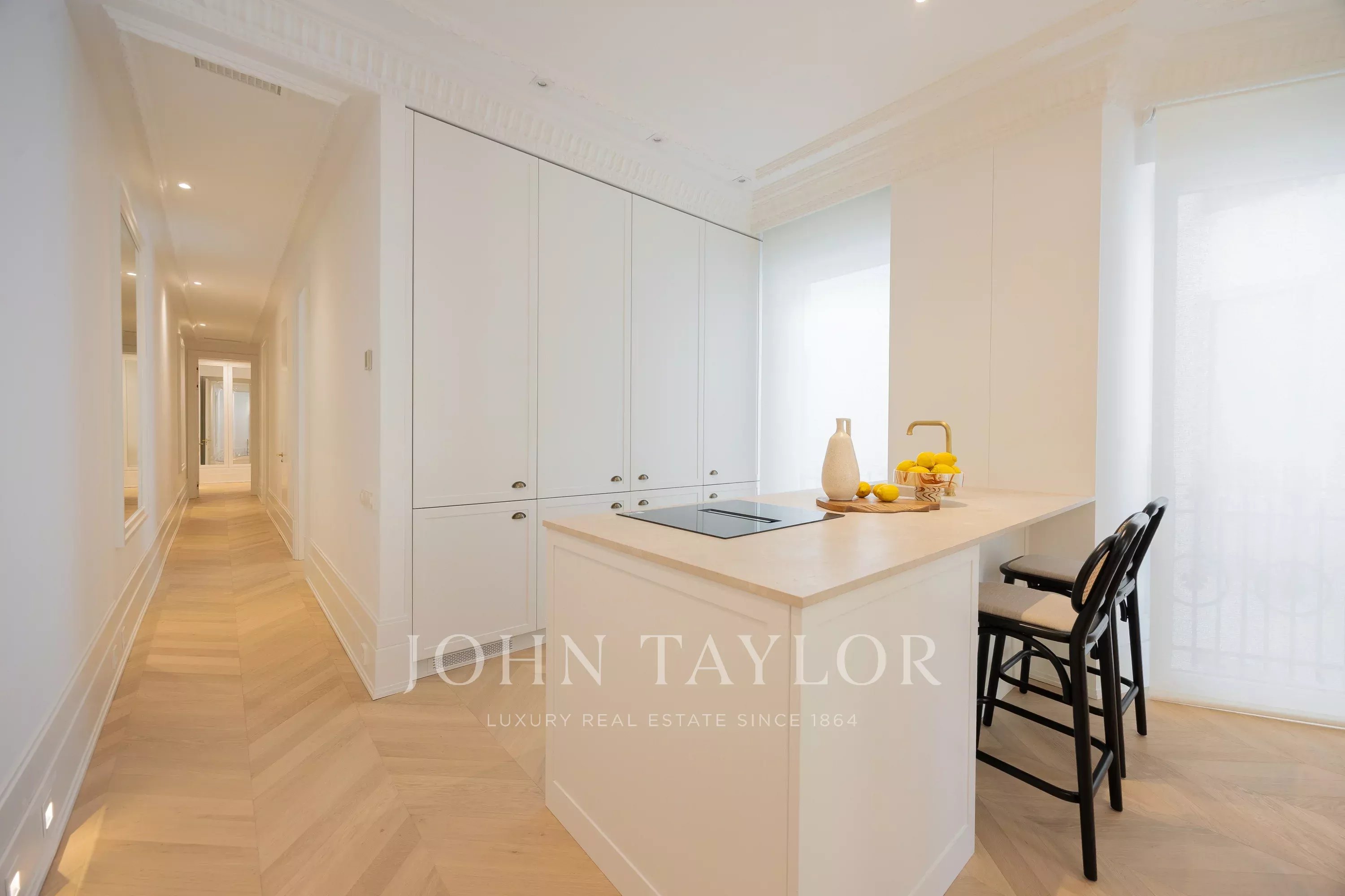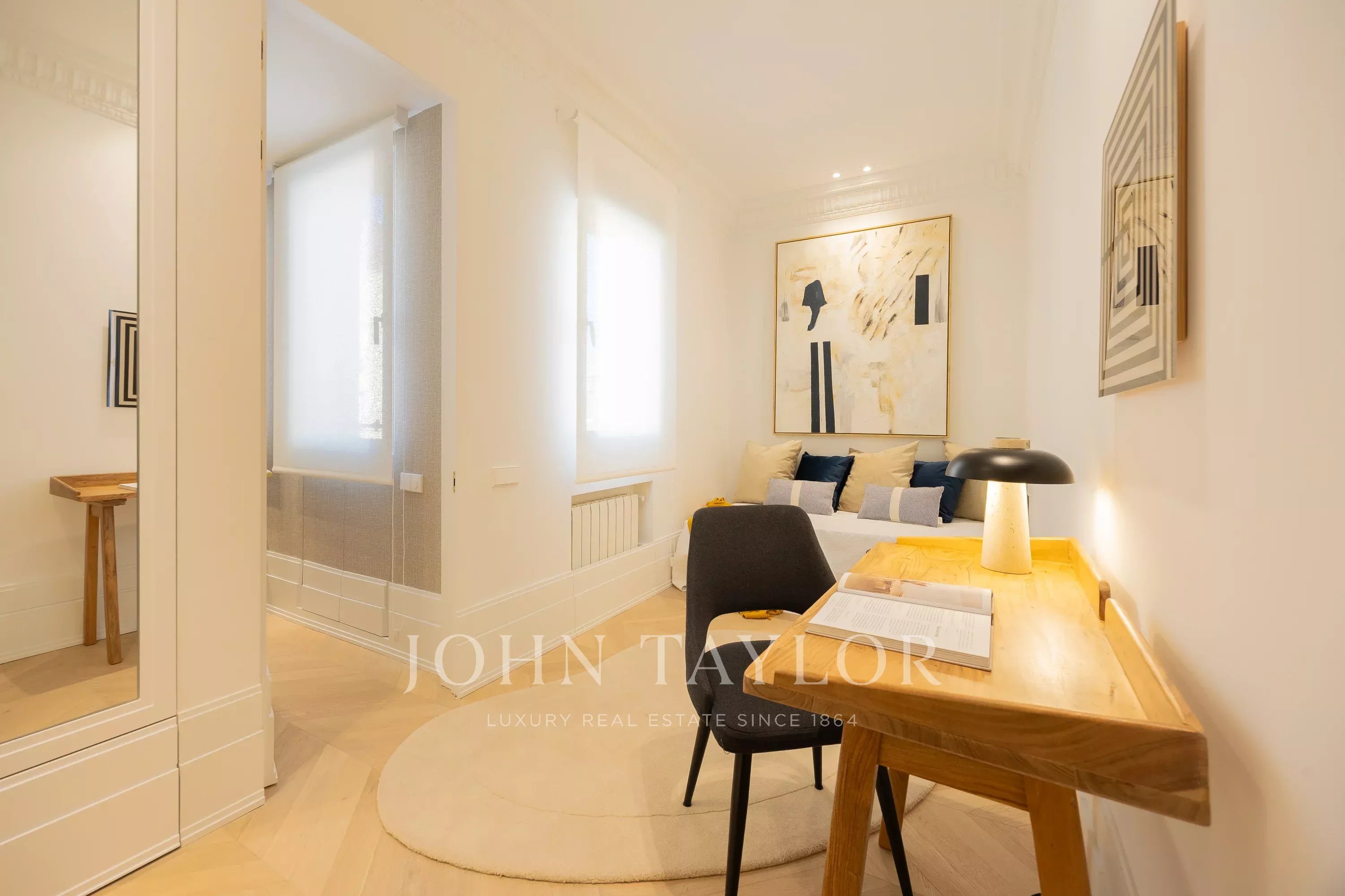 Esclusiva abitazione di 145 m² situata al quinto piano esterno nel prestigioso quartiere di Trafalgar, Chamberí, in un edificio con facciata classica curata.