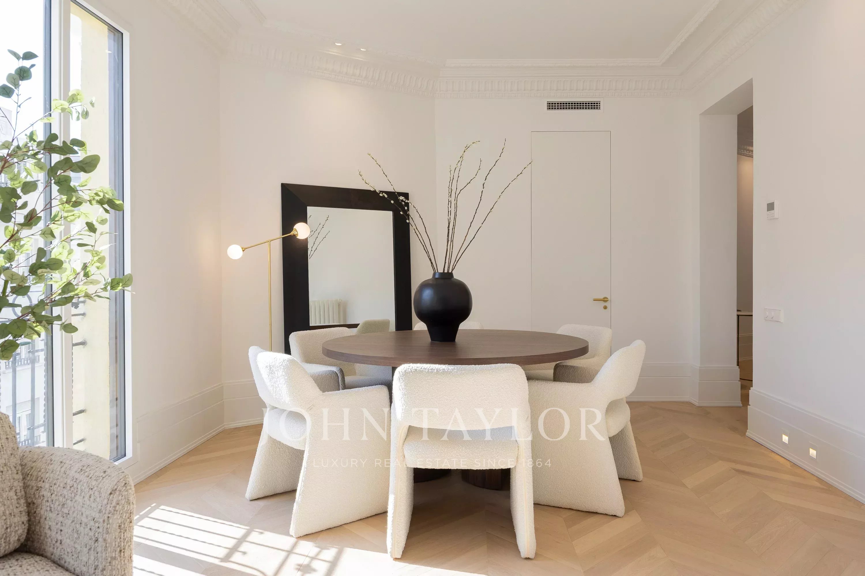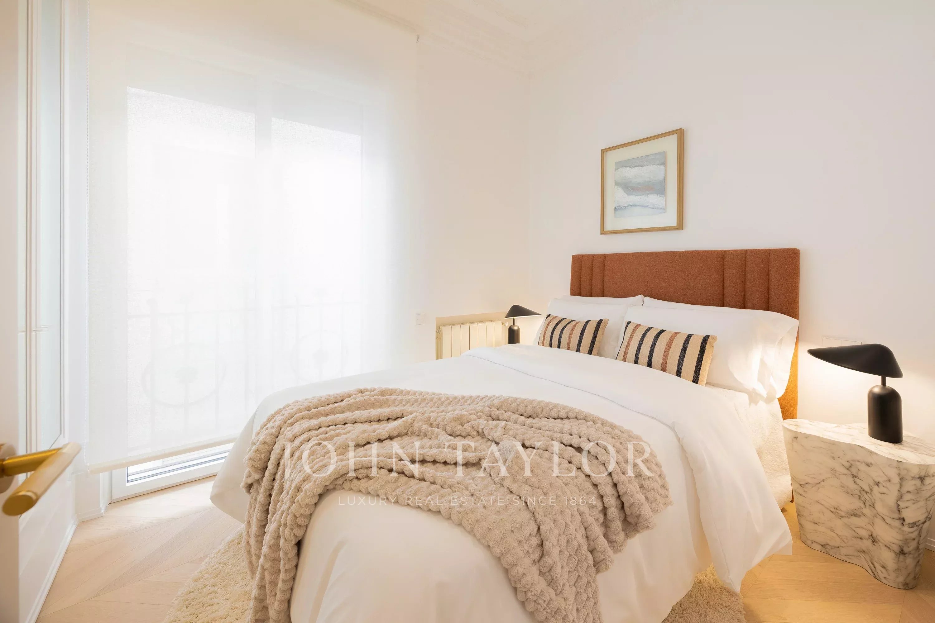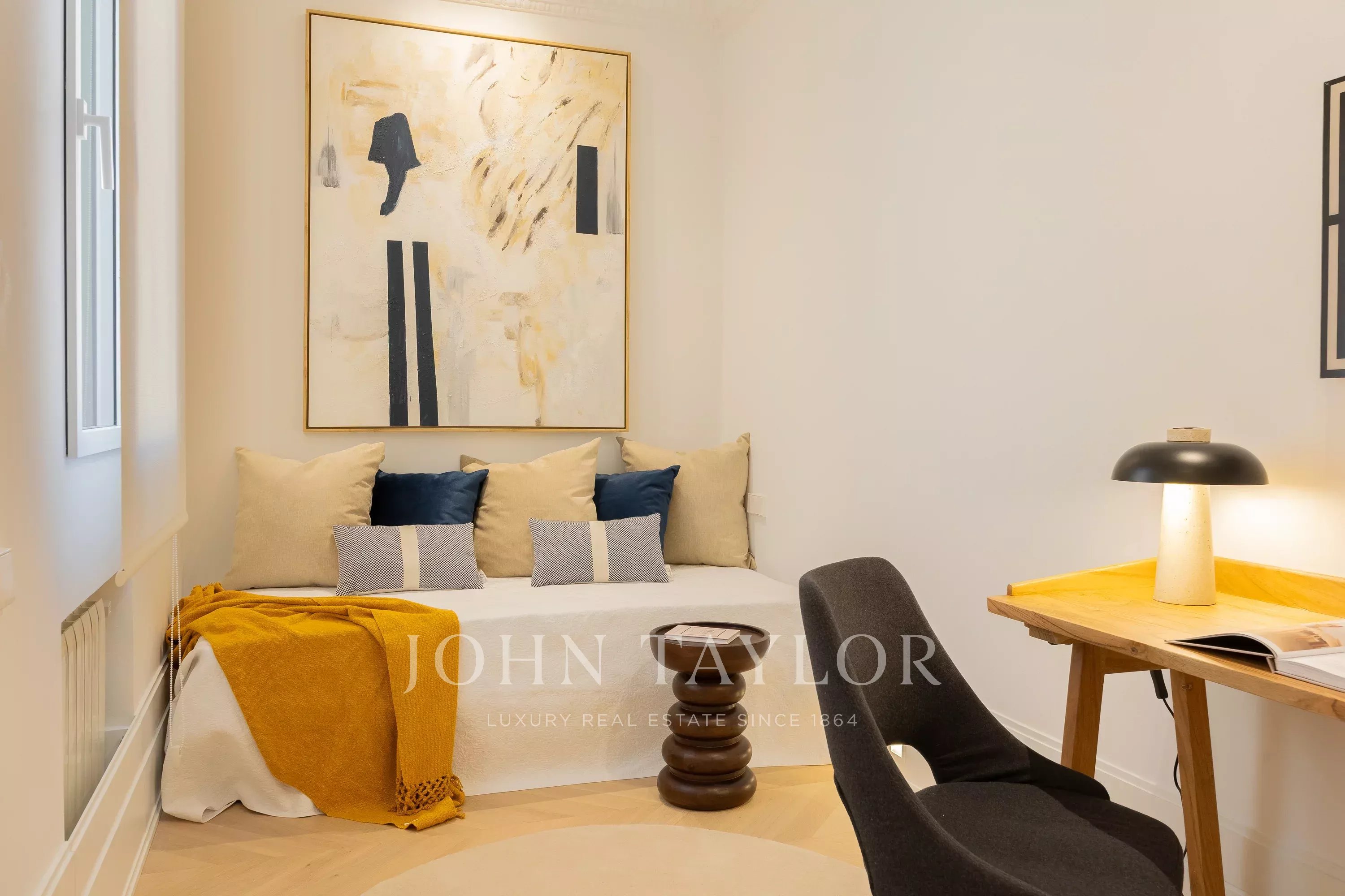 Esclusiva abitazione di 145 m² situata al quinto piano esterno nel prestigioso quartiere di Trafalgar, Chamberí, in un edificio con facciata classica curata.