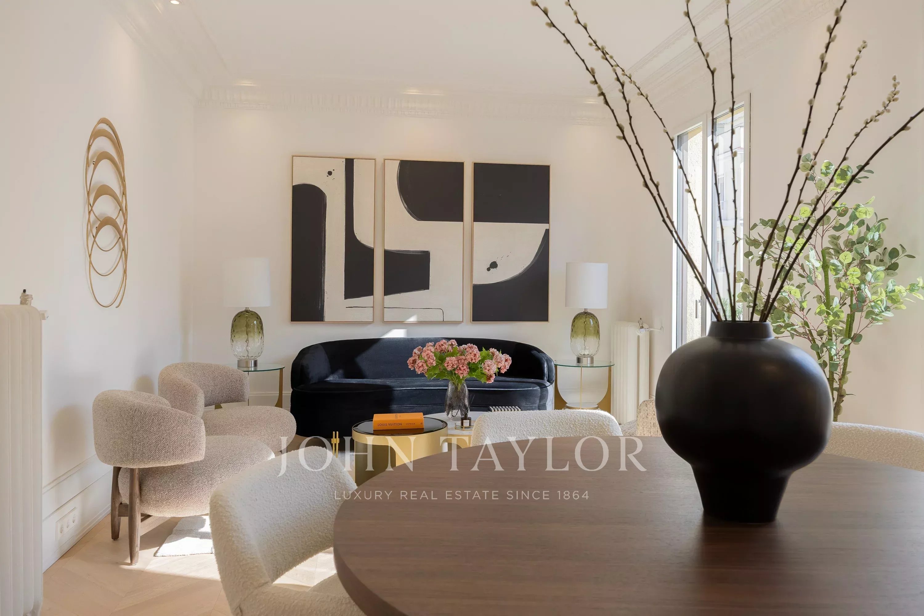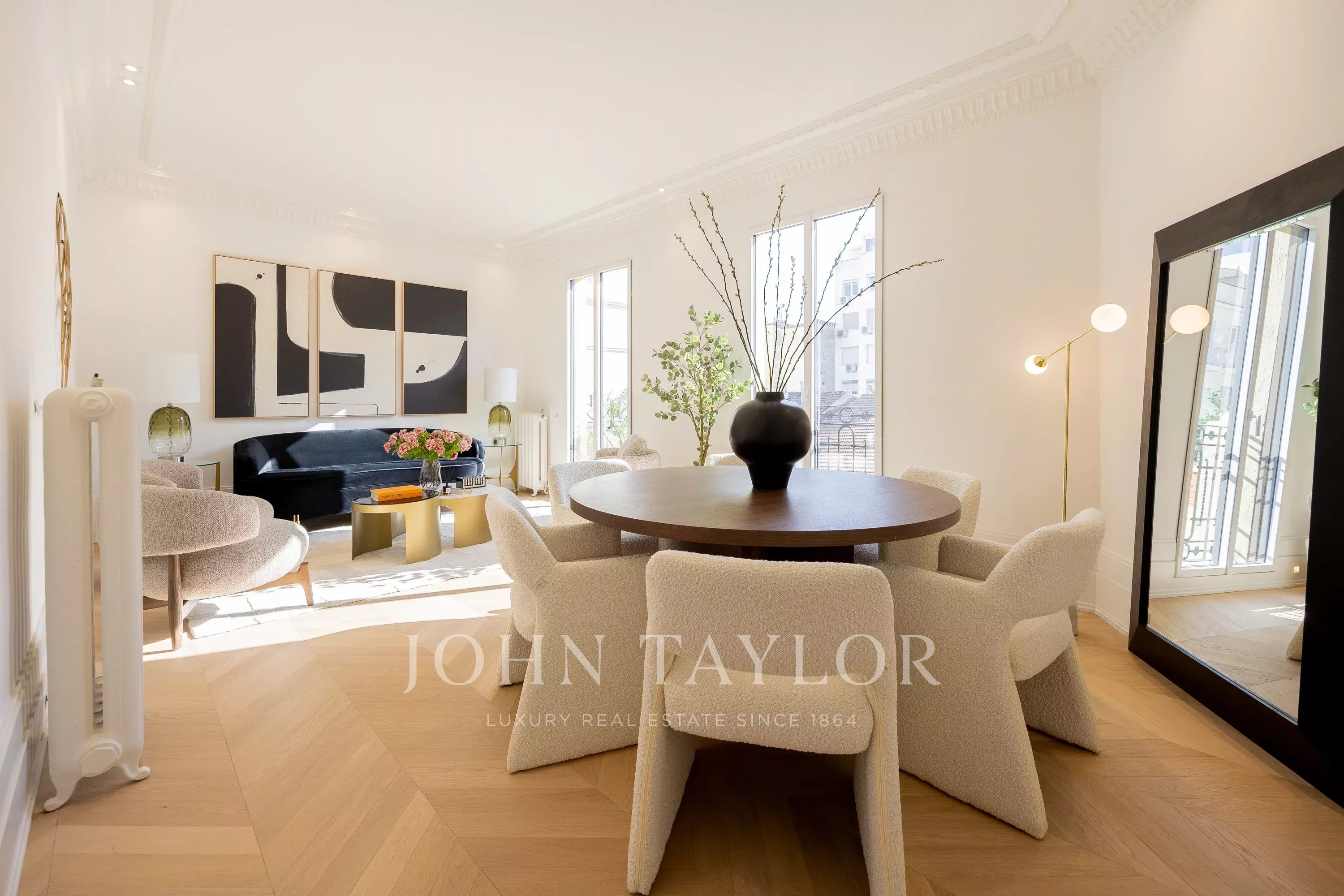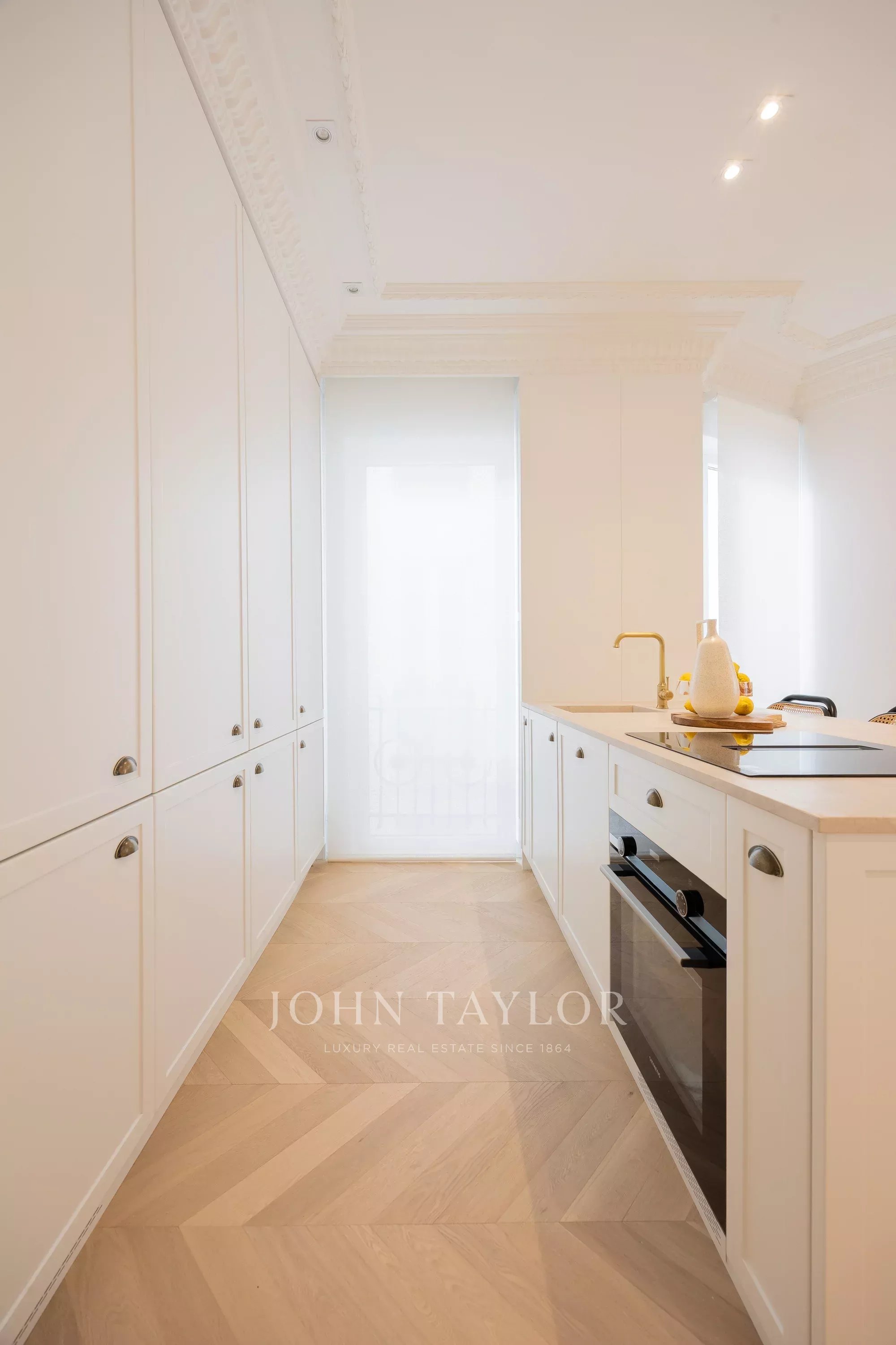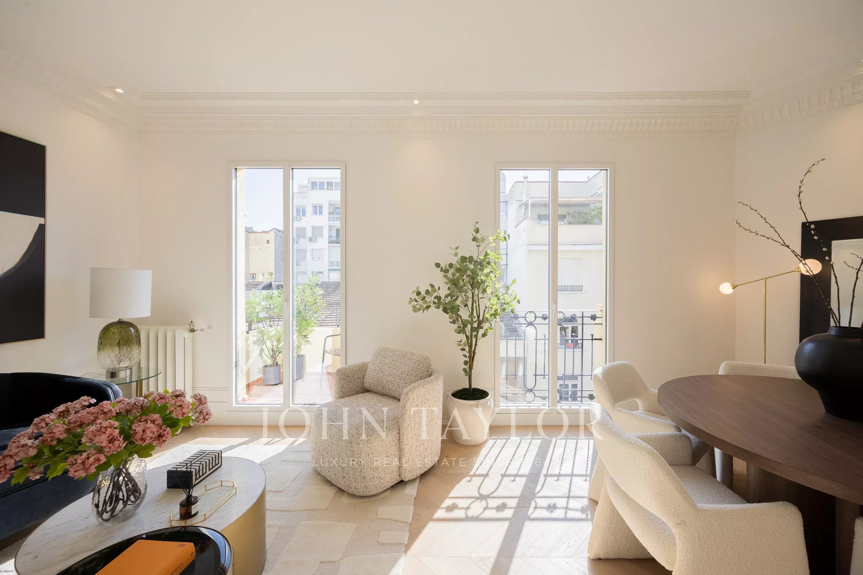 Esclusiva abitazione di 145 m² situata al quinto piano esterno nel prestigioso quartiere di Trafalgar, Chamberí, in un edificio con facciata classica curata.