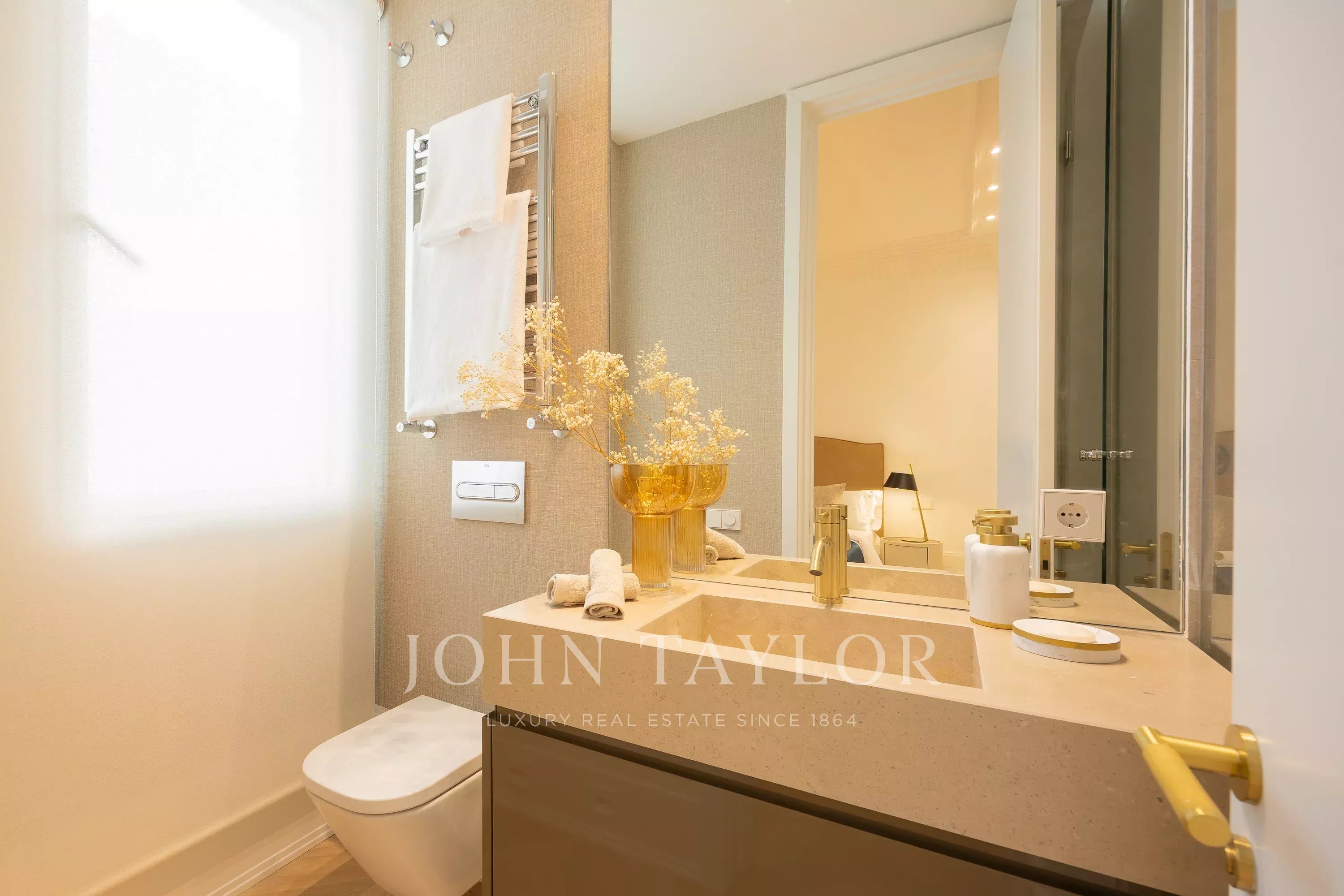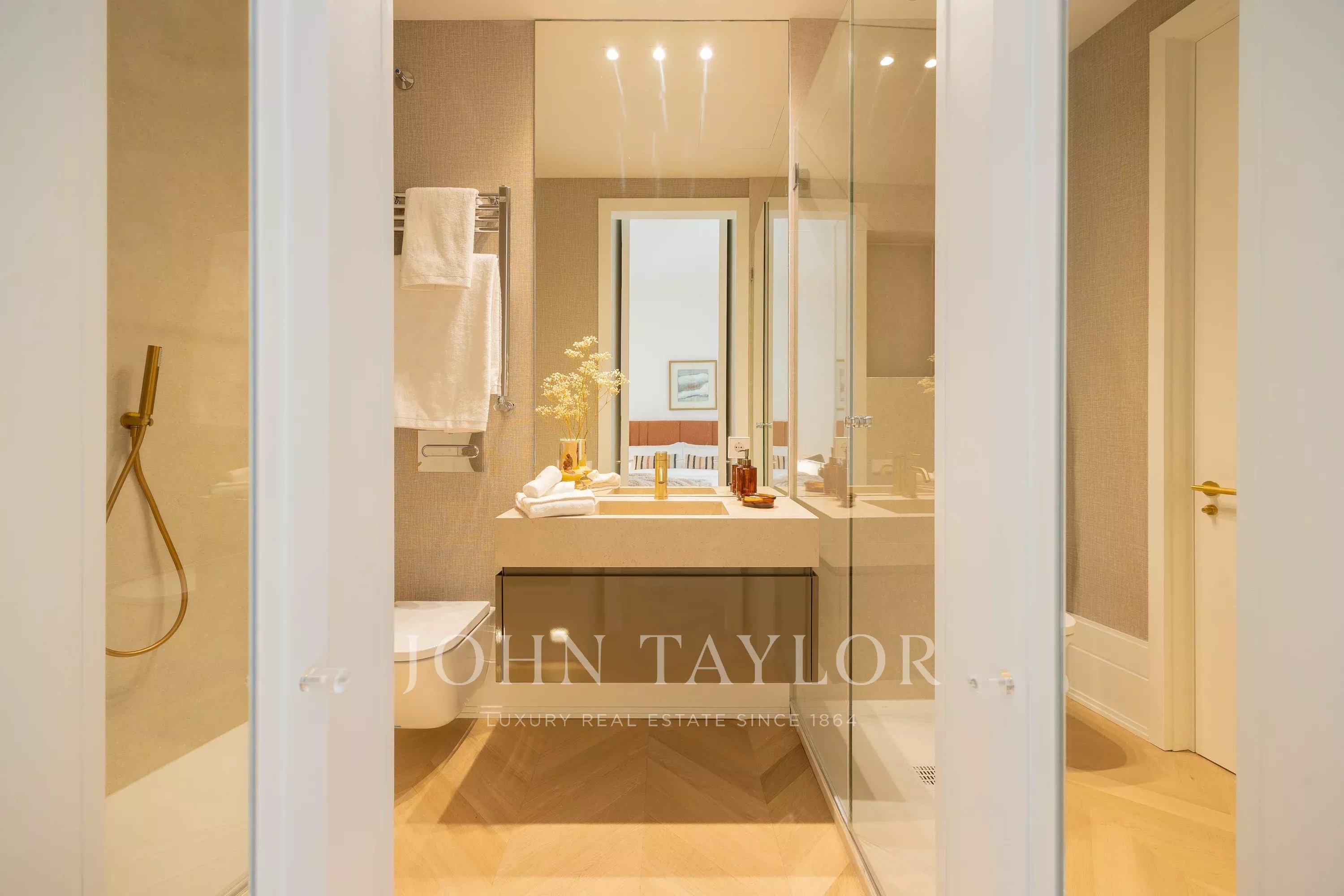 Dispone di tre ampi camere doppie con bagno en suite, progettate per offrire massimo comfort e privacy, oltre a una praticità lavanderia indipendente. Include posto auto e ascensore, un valore aggiunto nella zona.