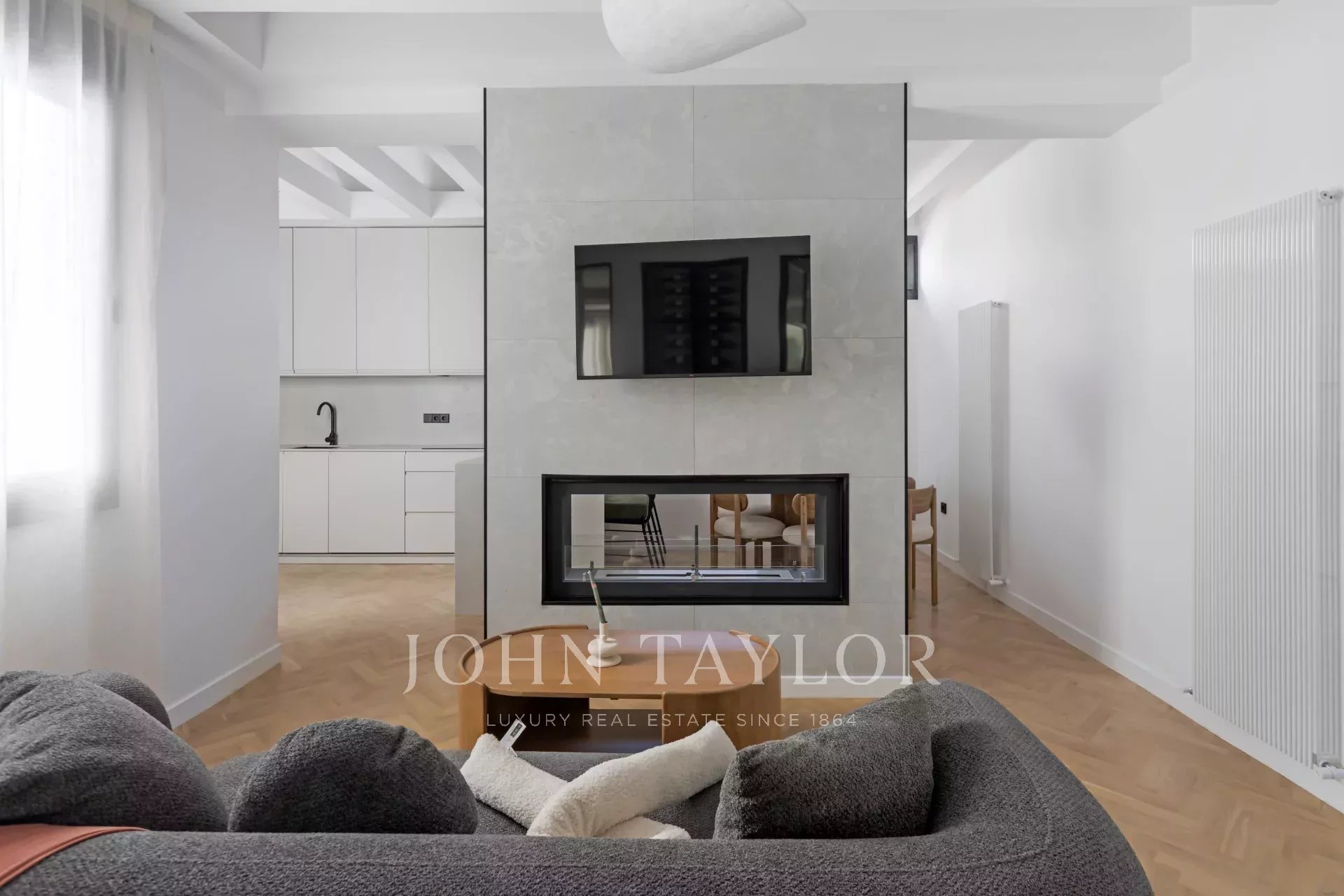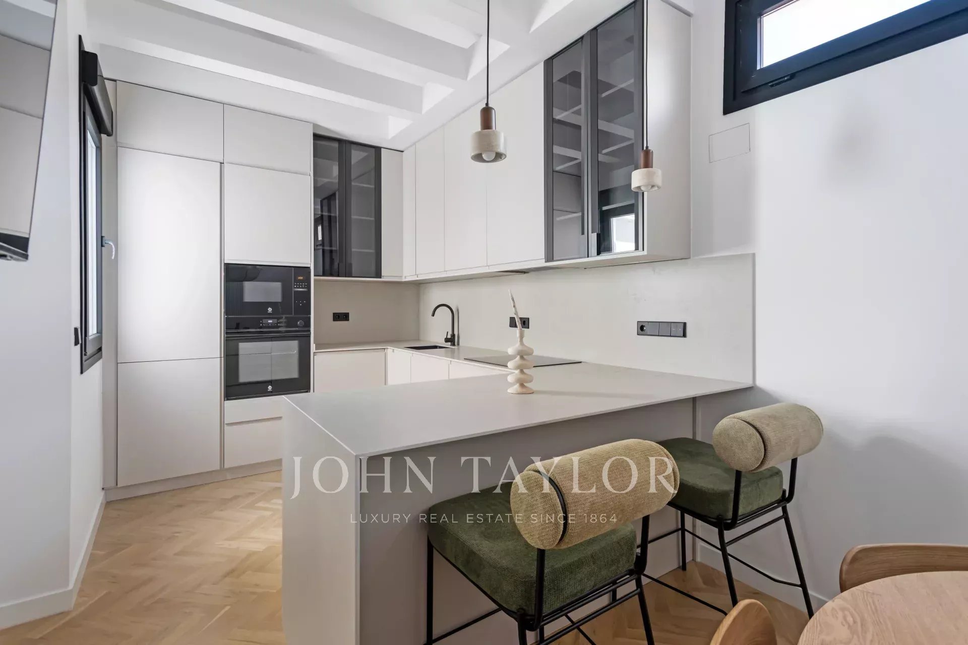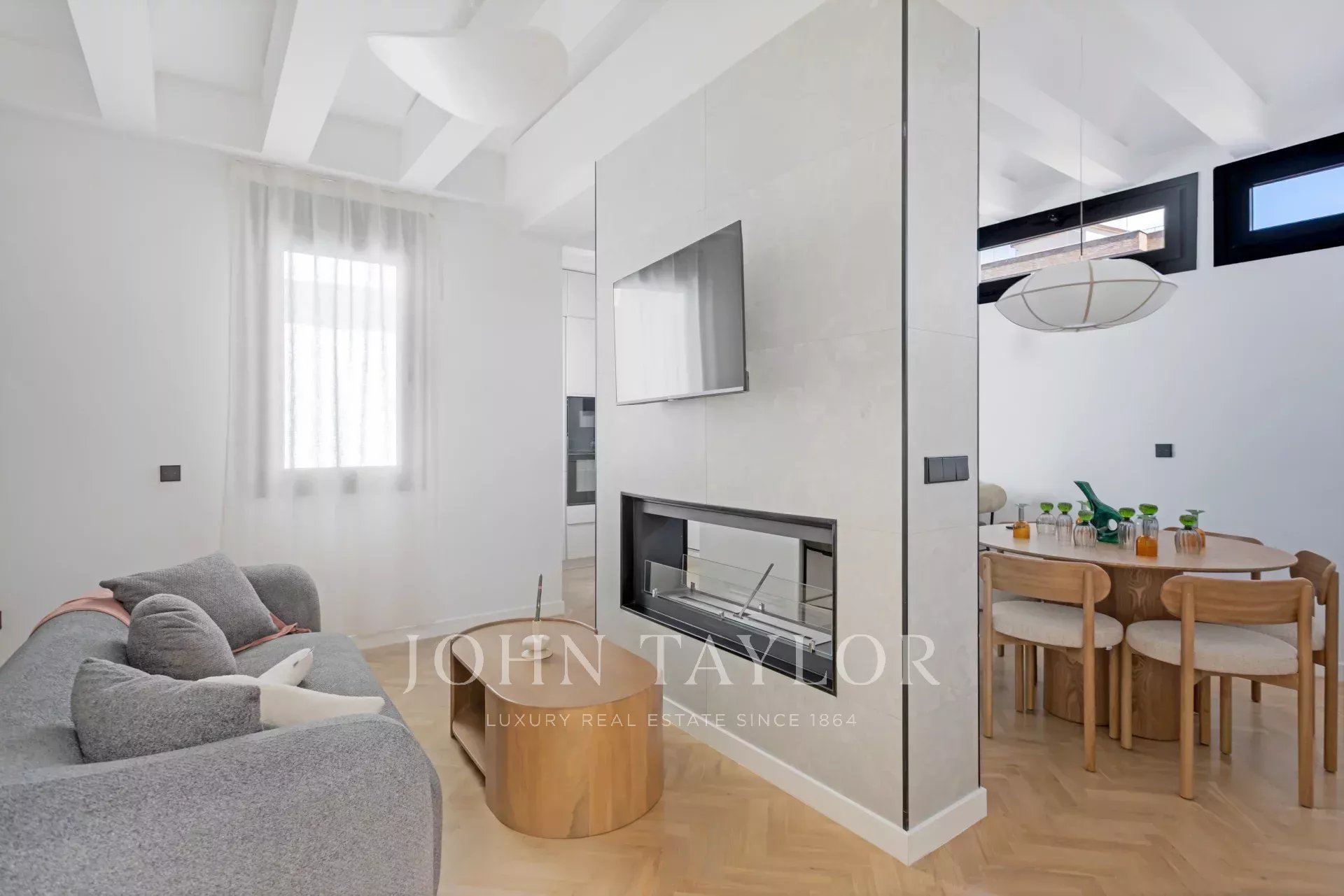 Squisito appartamento di 89 m² situato al quarto piano di un edificio classico in via Santa Engracia, tra Plaza de Chamberi e Plaza de Alonso Martinez. La ristrutturazione, eseguita con ottimo gusto e materiali di alta qualità, ha fatto un uso intelligente dello spazio e della luce per ottenere un'atmosfera allegra, moderna e accogliente.
