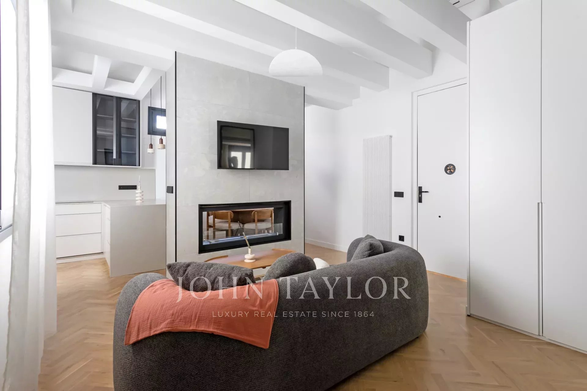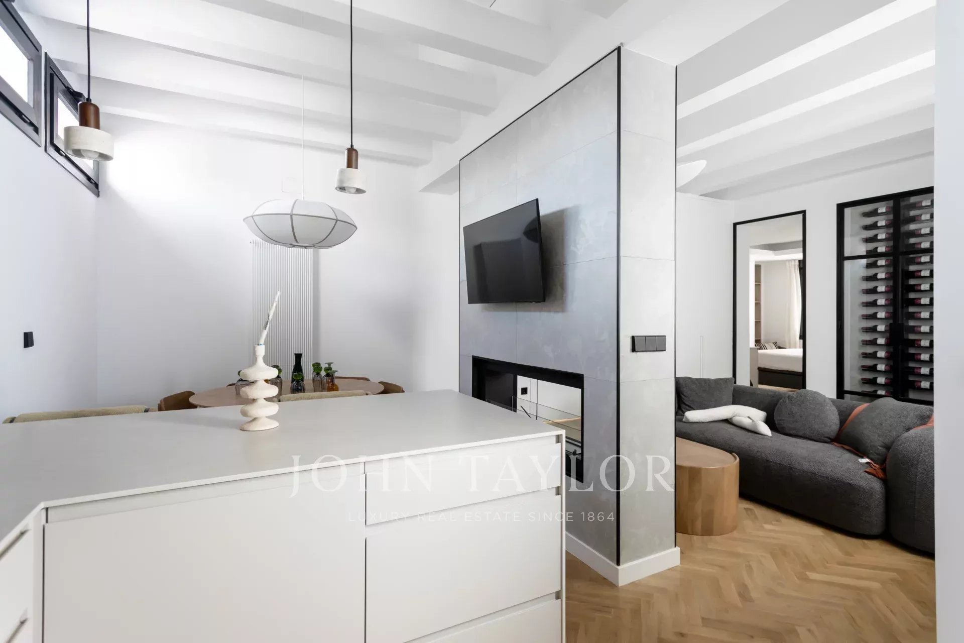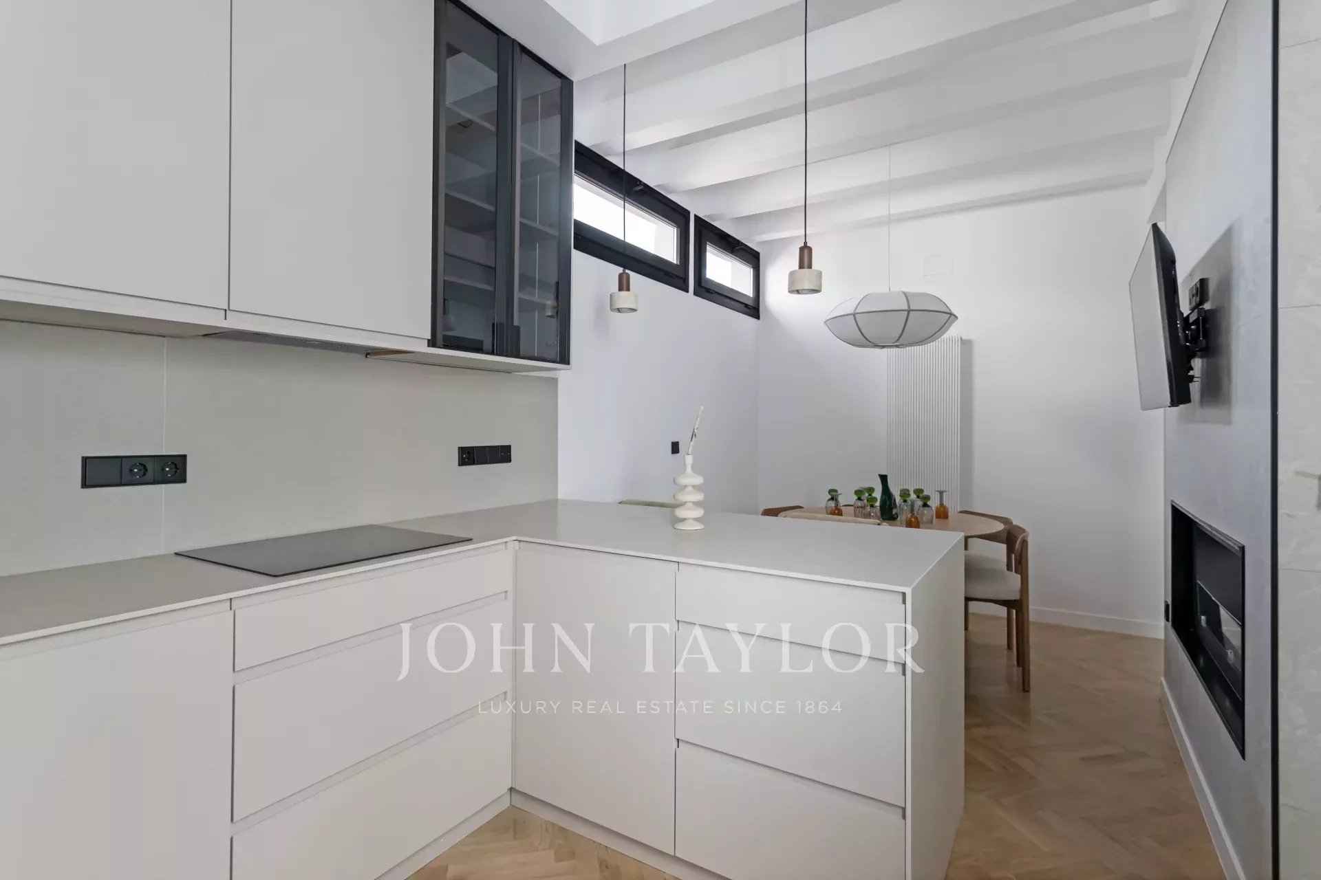 Squisito appartamento di 89 m² situato al quarto piano di un edificio classico in via Santa Engracia, tra Plaza de Chamberi e Plaza de Alonso Martinez. La ristrutturazione, eseguita con ottimo gusto e materiali di alta qualità, ha fatto un uso intelligente dello spazio e della luce per ottenere un'atmosfera allegra, moderna e accogliente.