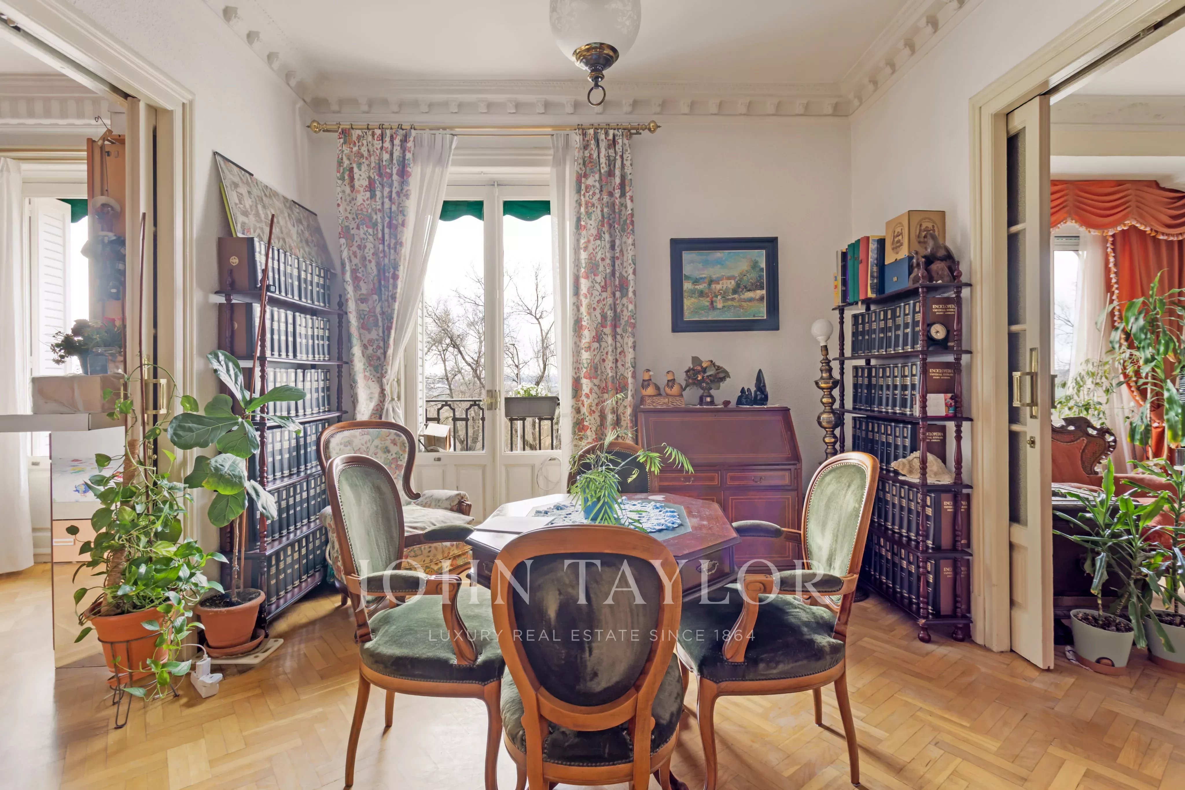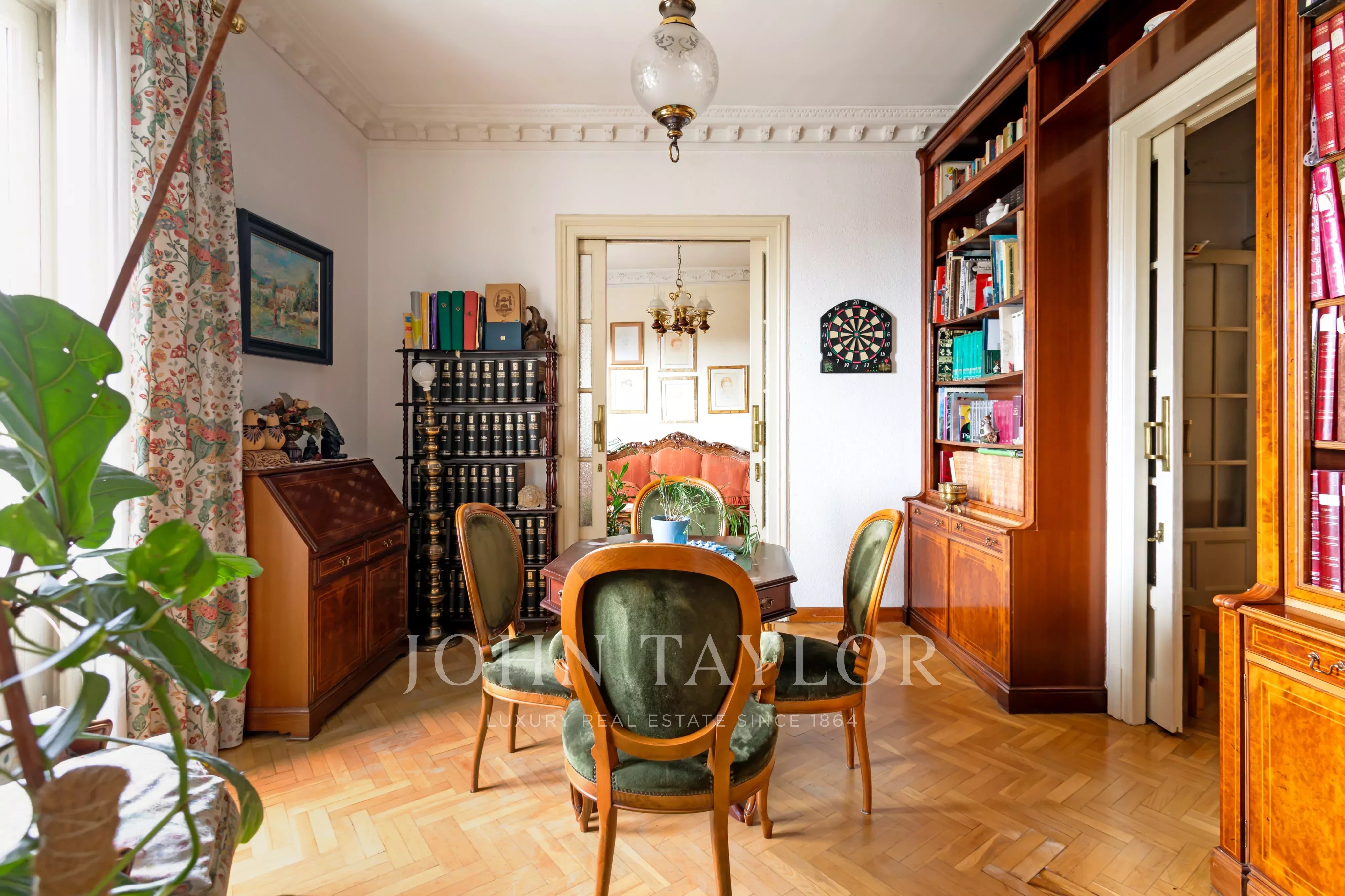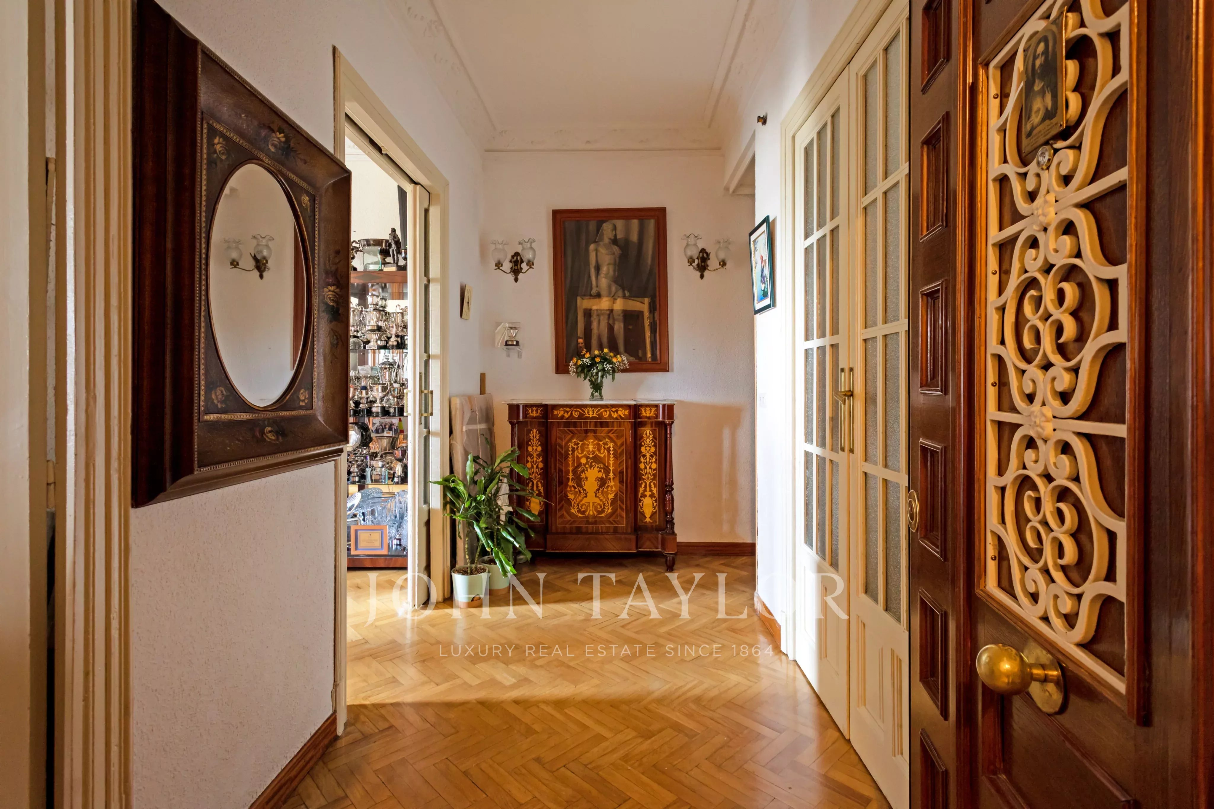 La proprietà si distingue per il suo carattere signorile, con soffitti alti, modanature classiche e un'architettura che evoca l'eleganza di un autentico appartamento signorile. Il soggiorno, spazioso e inondato di luce naturale, si apre su imponenti balconi con vista diretta sul parco, uno spazio protetto che garantisce una privacy assoluta e una vista inalterabile nel tempo.