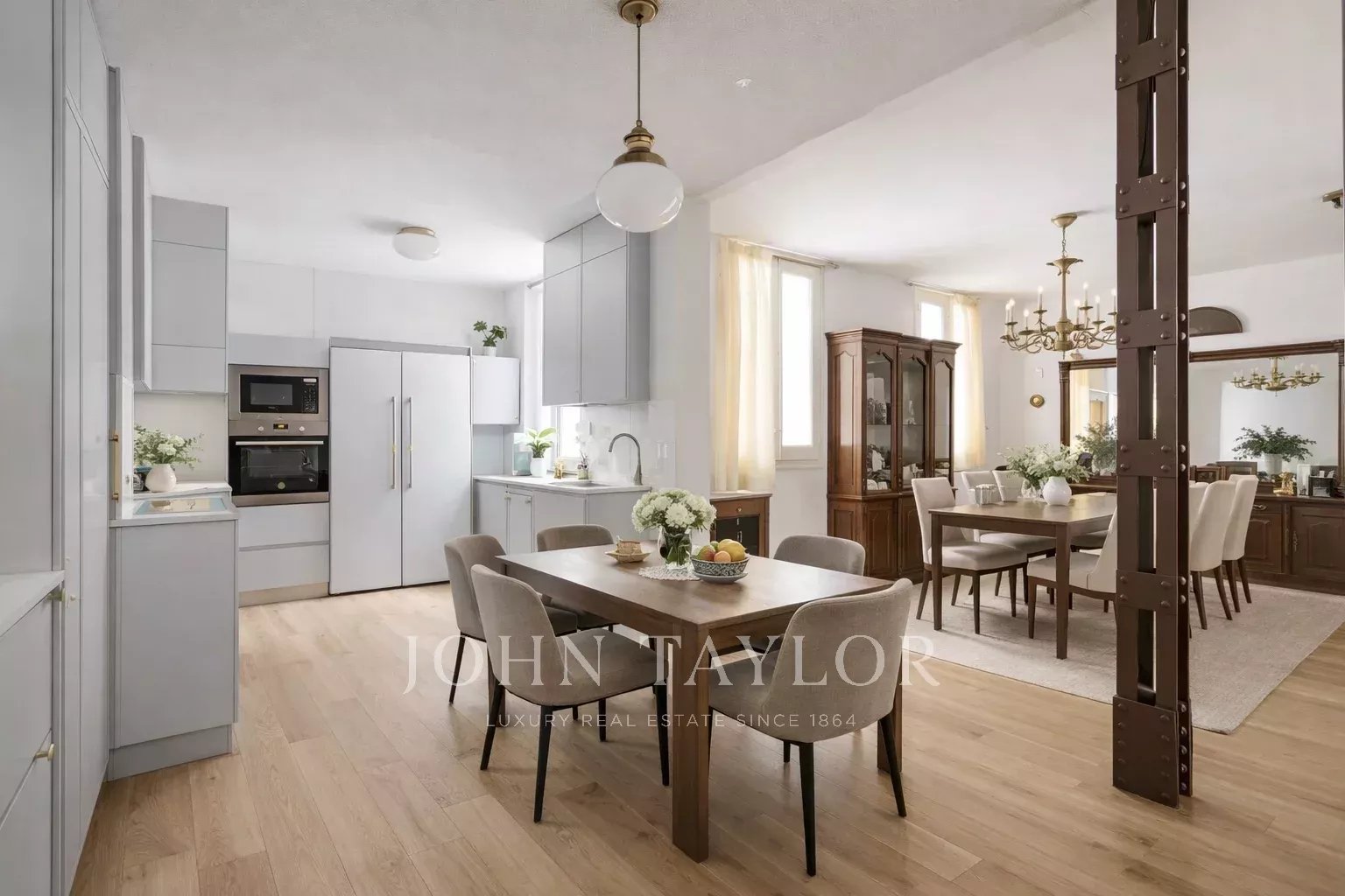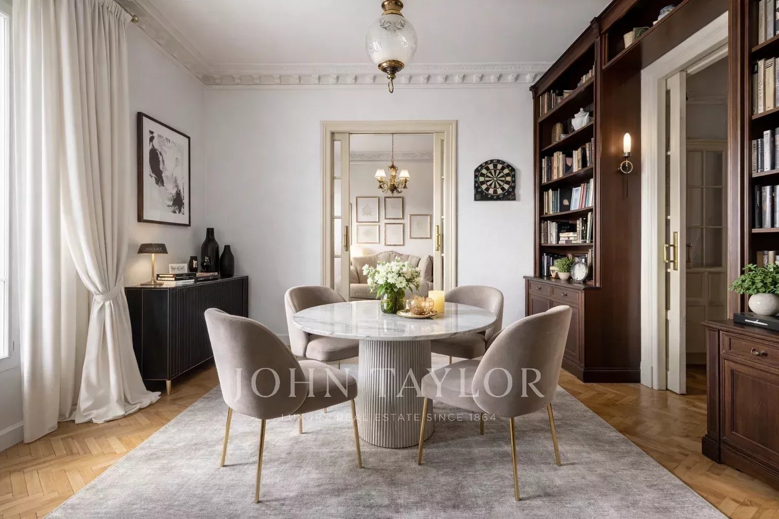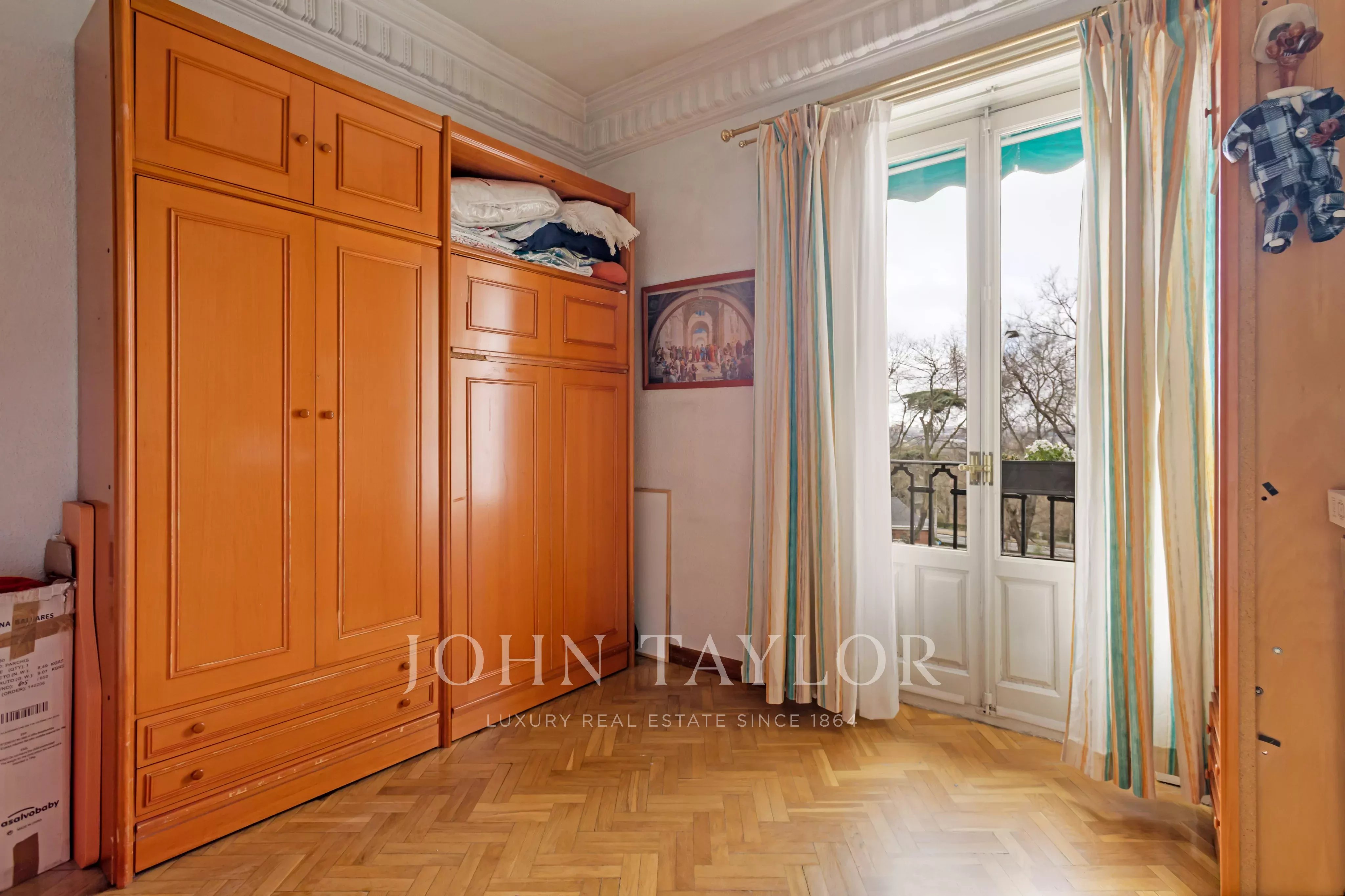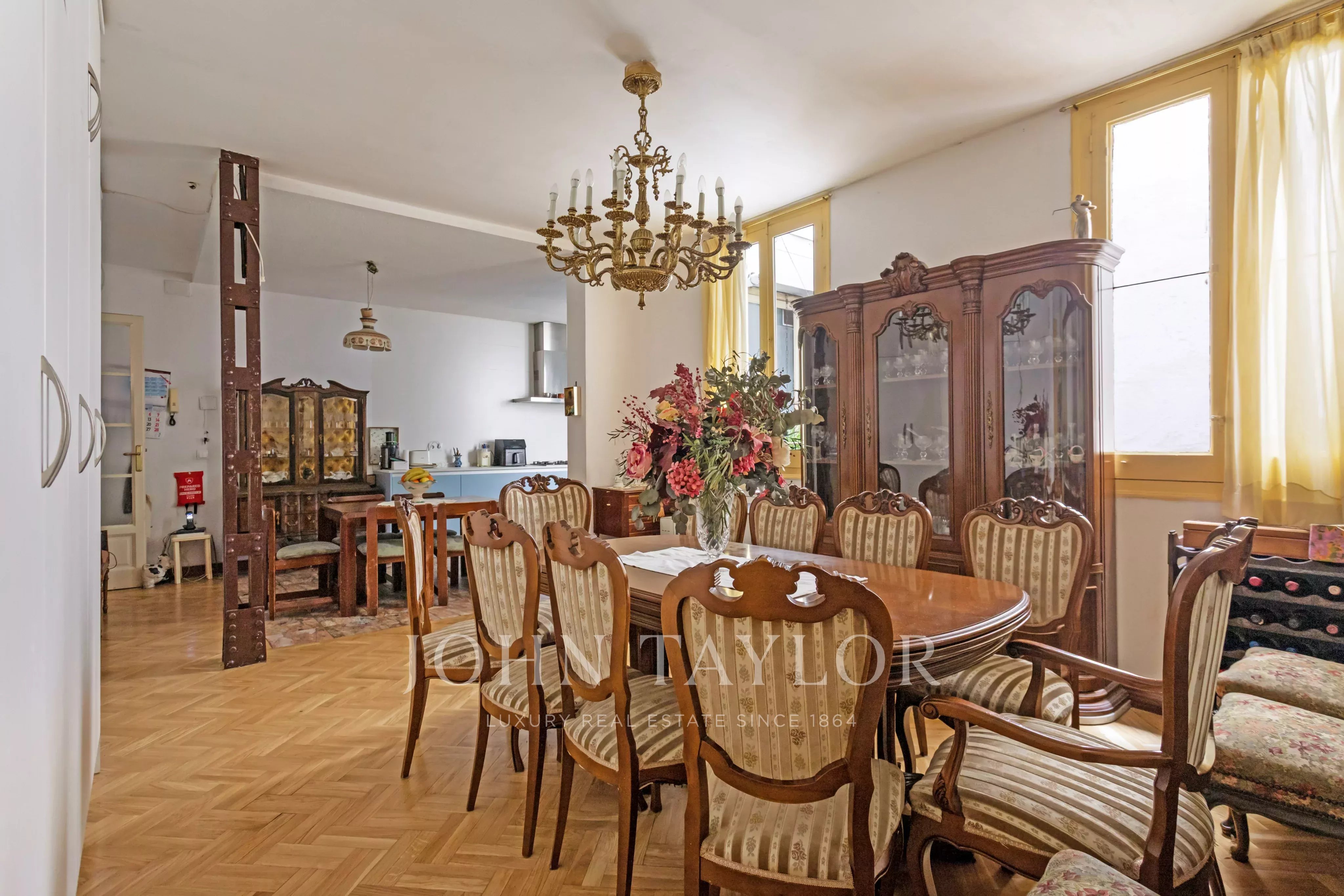 La proprietà si distingue per il suo carattere signorile, con soffitti alti, modanature classiche e un'architettura che evoca l'eleganza di un autentico appartamento signorile. Il soggiorno, spazioso e inondato di luce naturale, si apre su imponenti balconi con vista diretta sul parco, uno spazio protetto che garantisce una privacy assoluta e una vista inalterabile nel tempo.