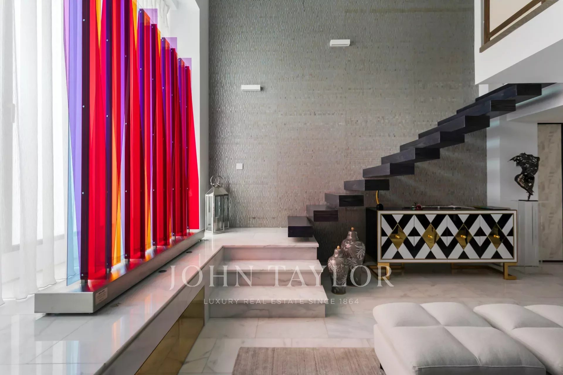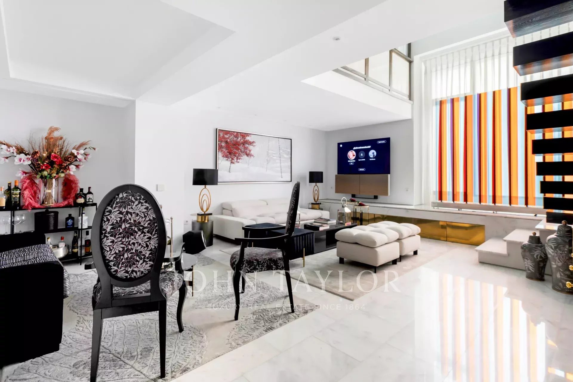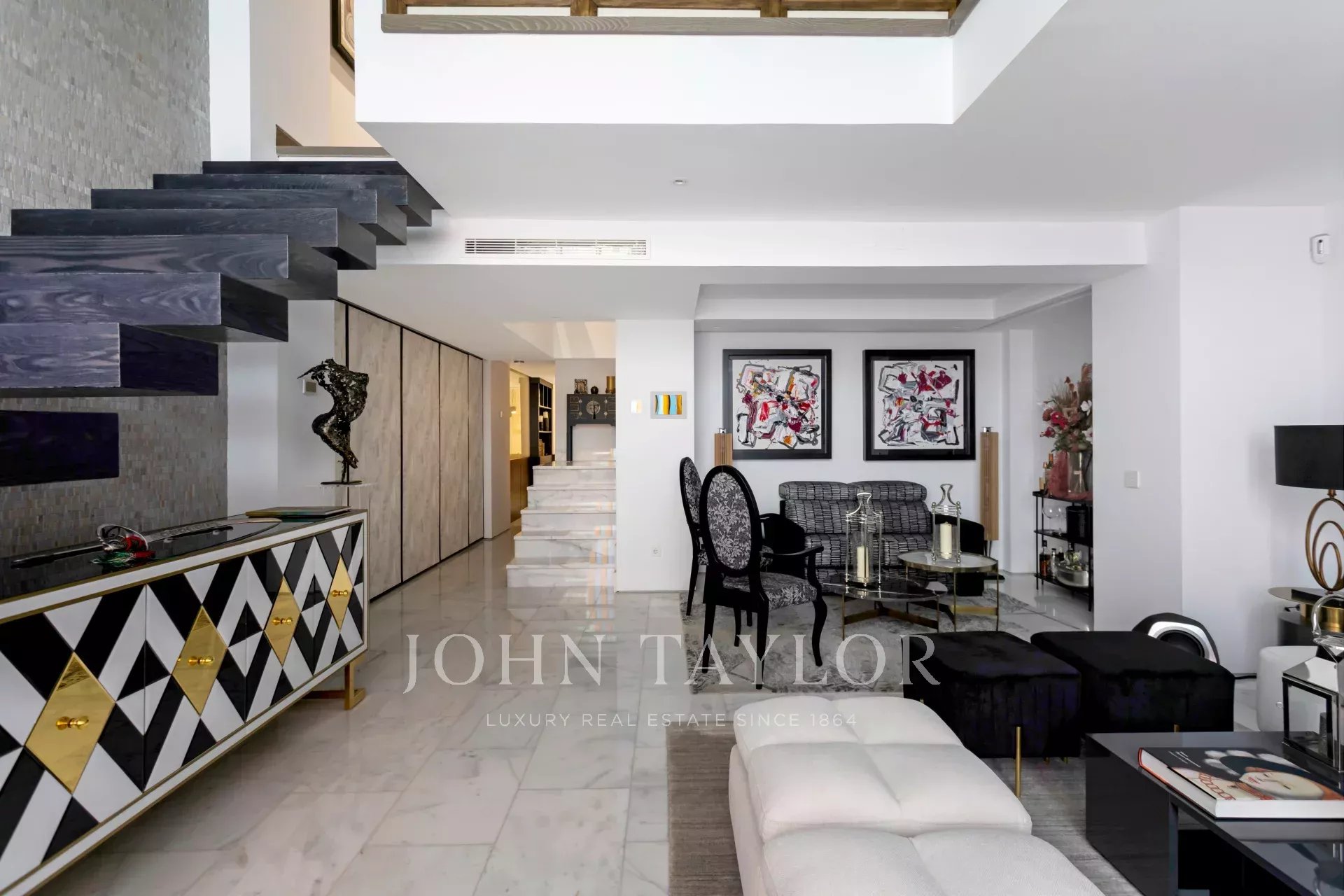 Al piano di accesso un ampio ingresso conduce a un soggiorno a doppia altezza composto da due stanze e con una splendida e luminosa finestra esposta a sud. Decorato con una favolosa opera d'arte di Carlos Eduardo Cruz-Díez non inclusa nel prezzo della casa. L'impianto audio è Bang & Olufsen. Su questo stesso piano sala da pranzo, cucina attrezzata con elettrodomestici di alta gamma e bagno per gli ospiti.