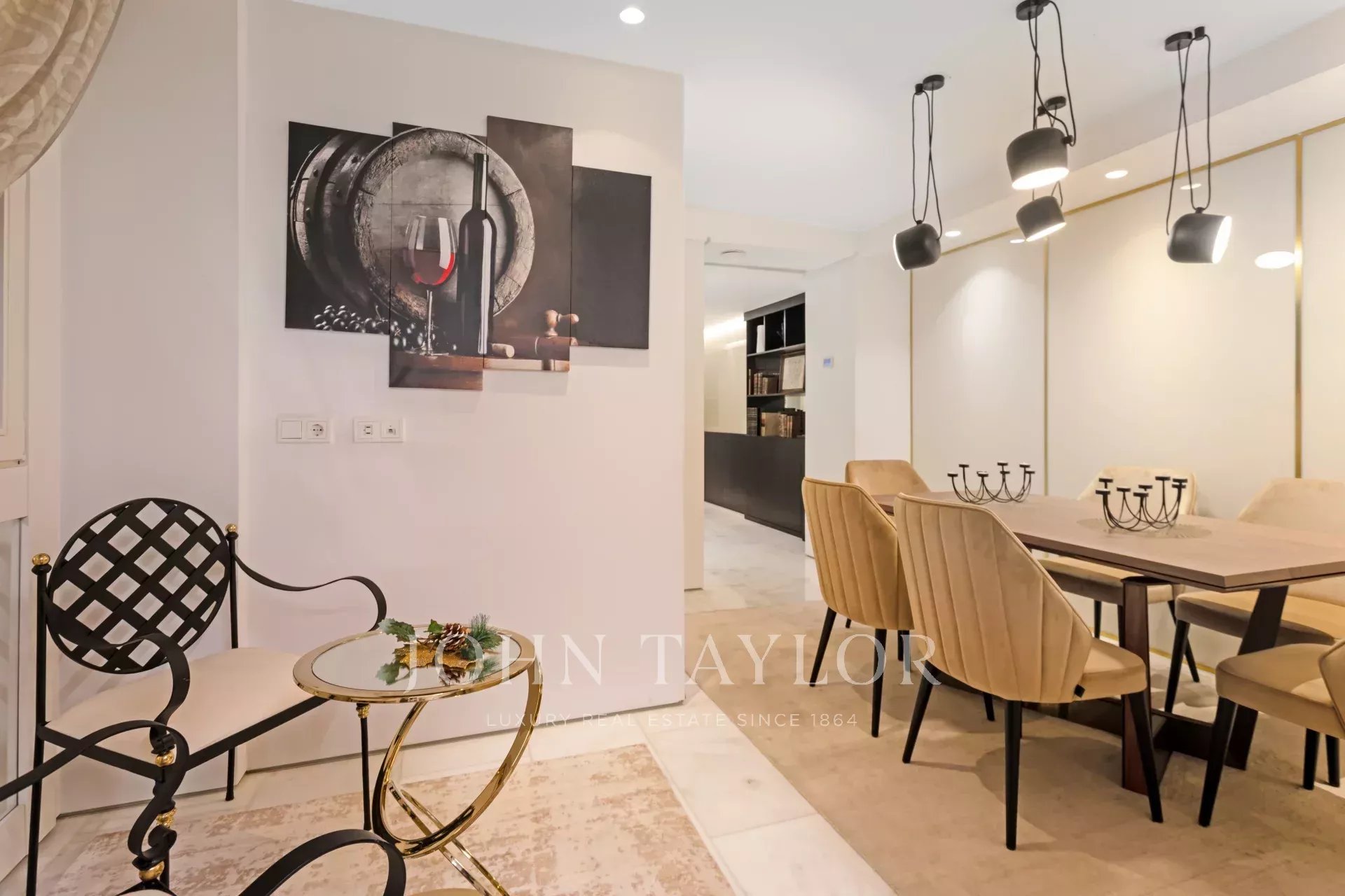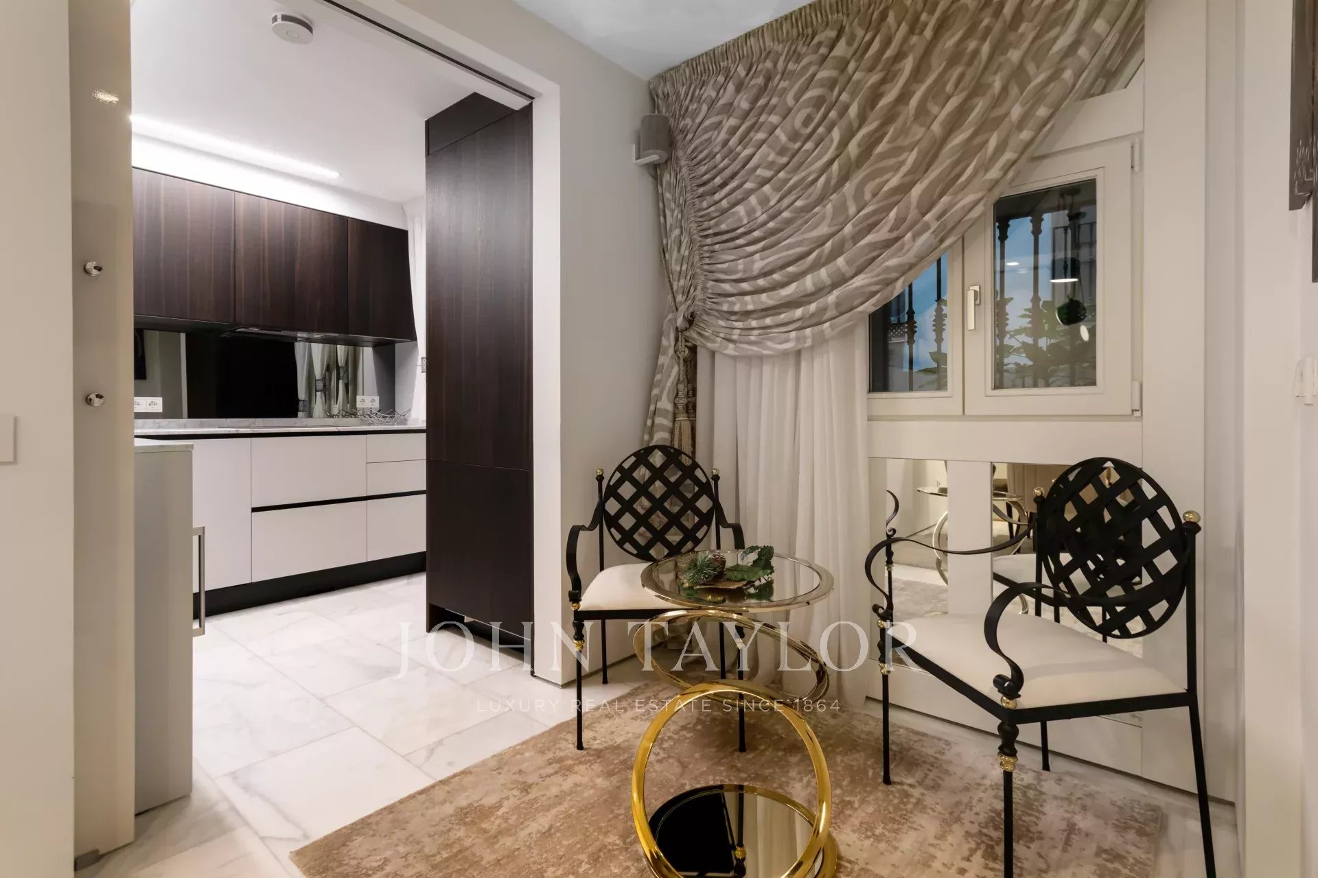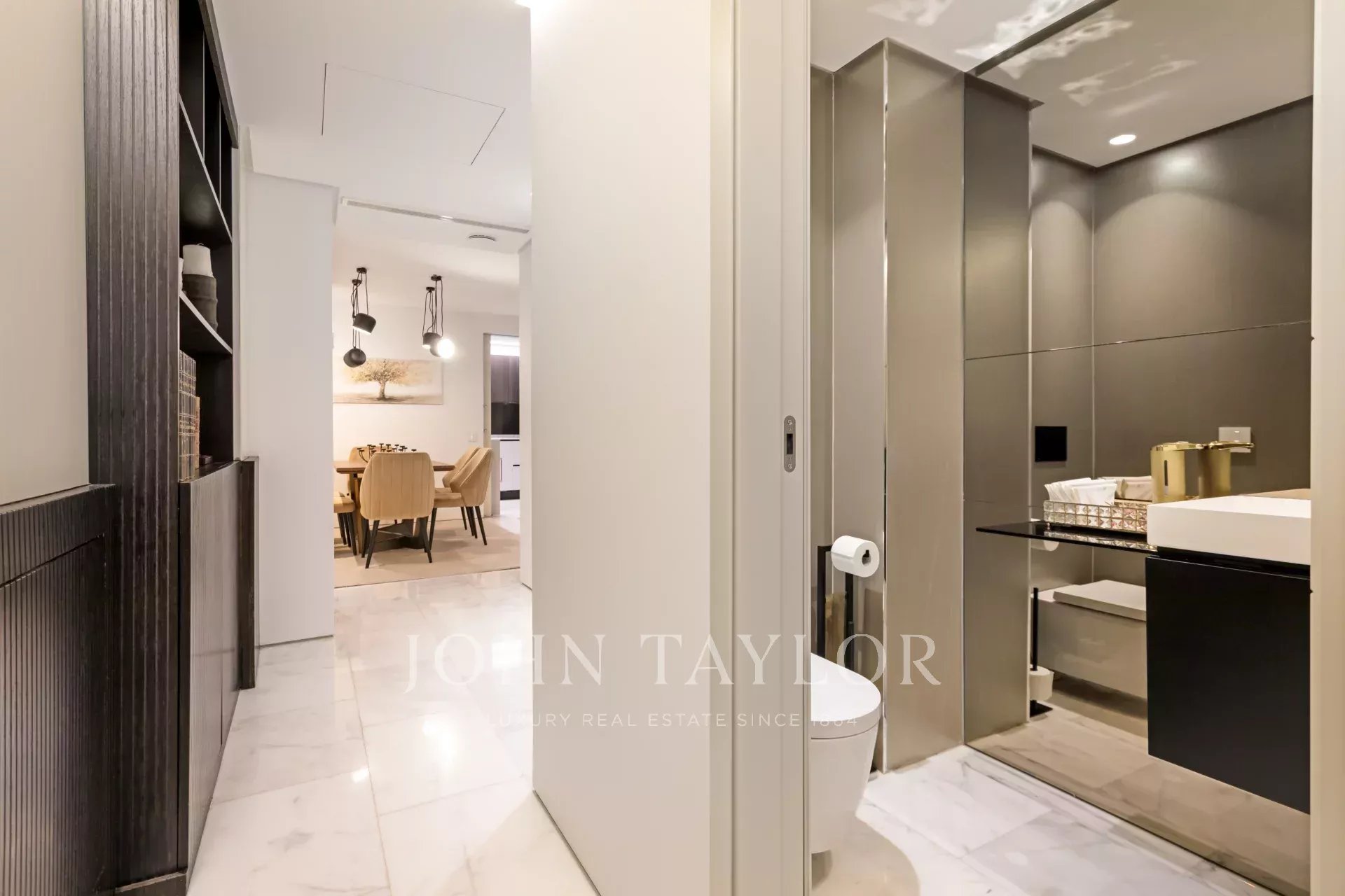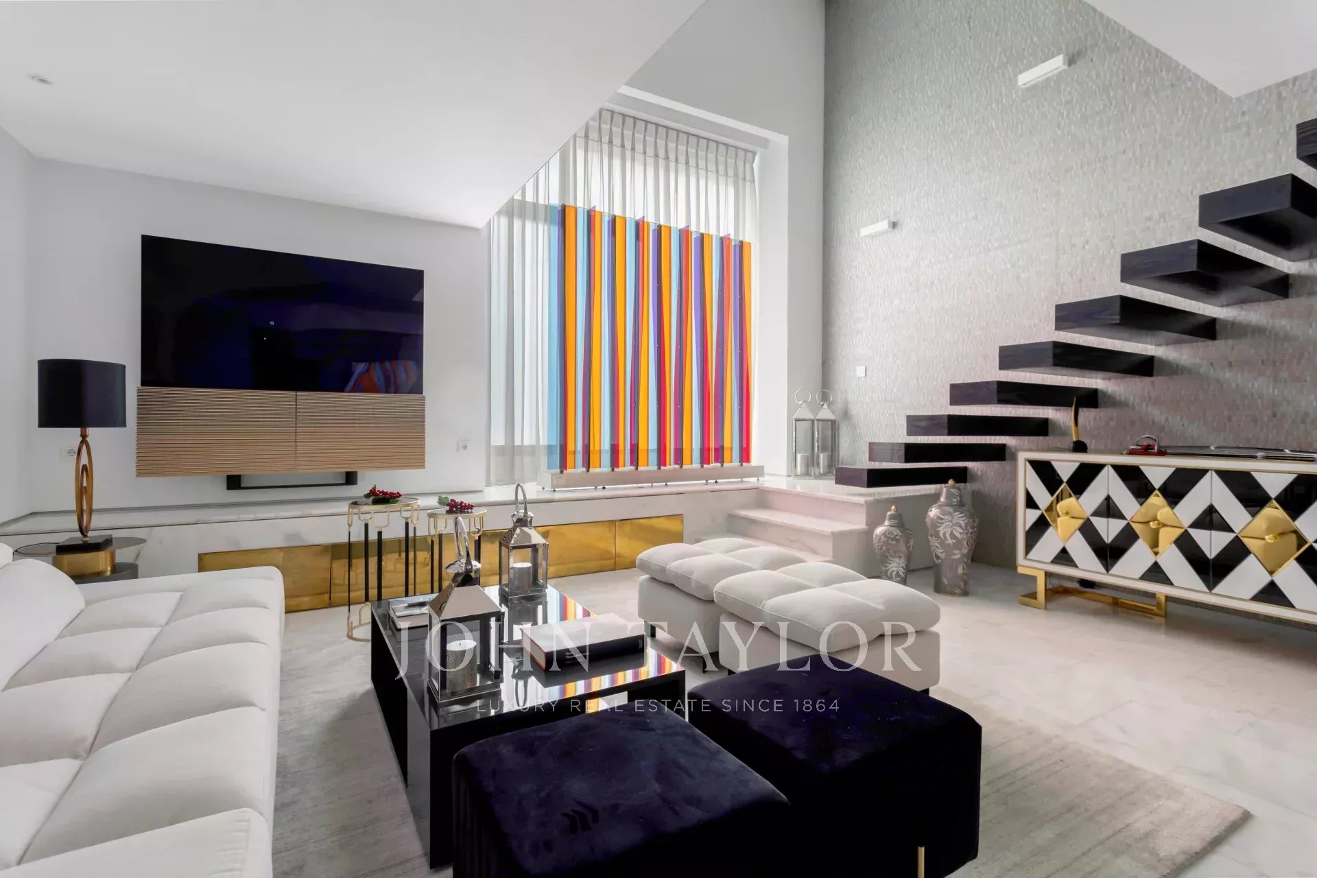 Al piano di accesso un ampio ingresso conduce a un soggiorno a doppia altezza composto da due stanze e con una splendida e luminosa finestra esposta a sud. Decorato con una favolosa opera d'arte di Carlos Eduardo Cruz-Díez non inclusa nel prezzo della casa. L'impianto audio è Bang & Olufsen. Su questo stesso piano sala da pranzo, cucina attrezzata con elettrodomestici di alta gamma e bagno per gli ospiti.