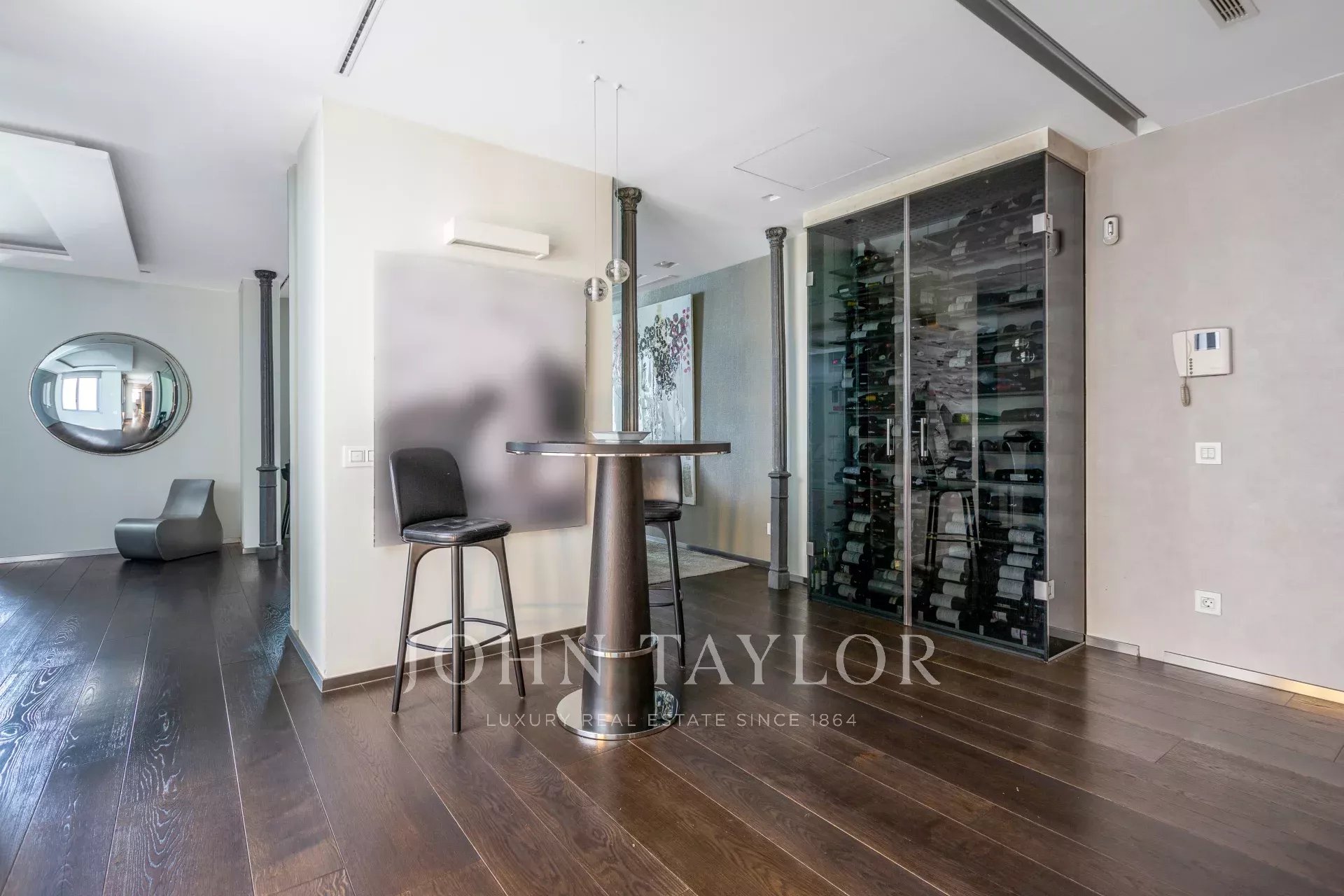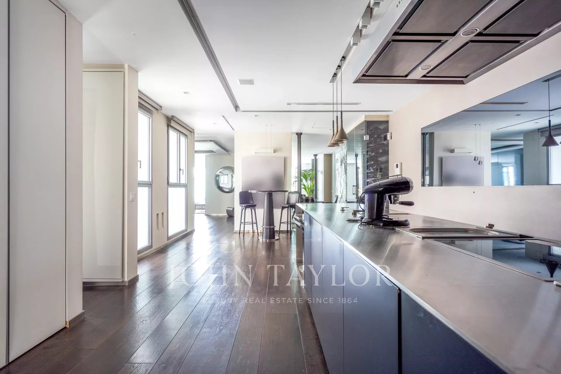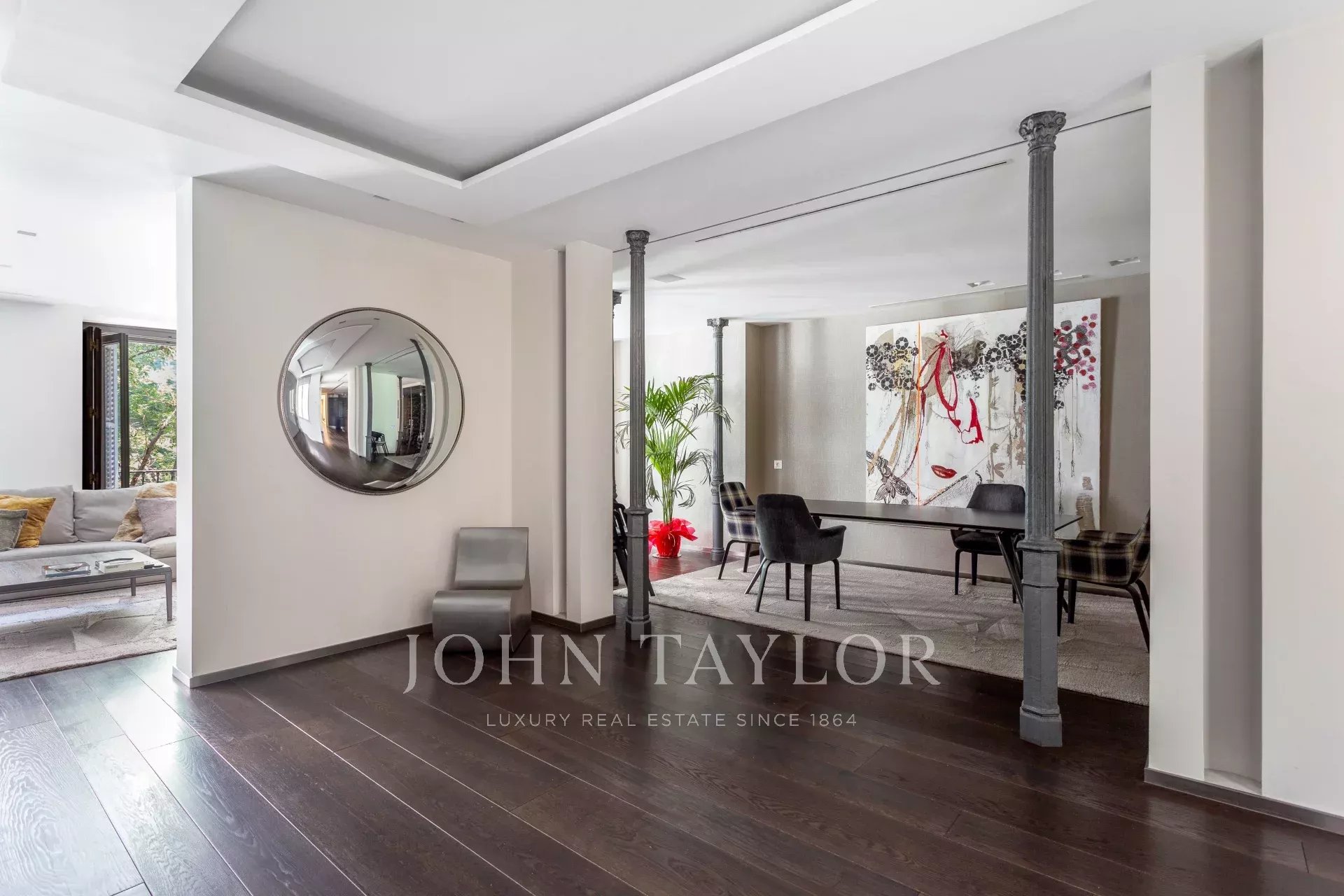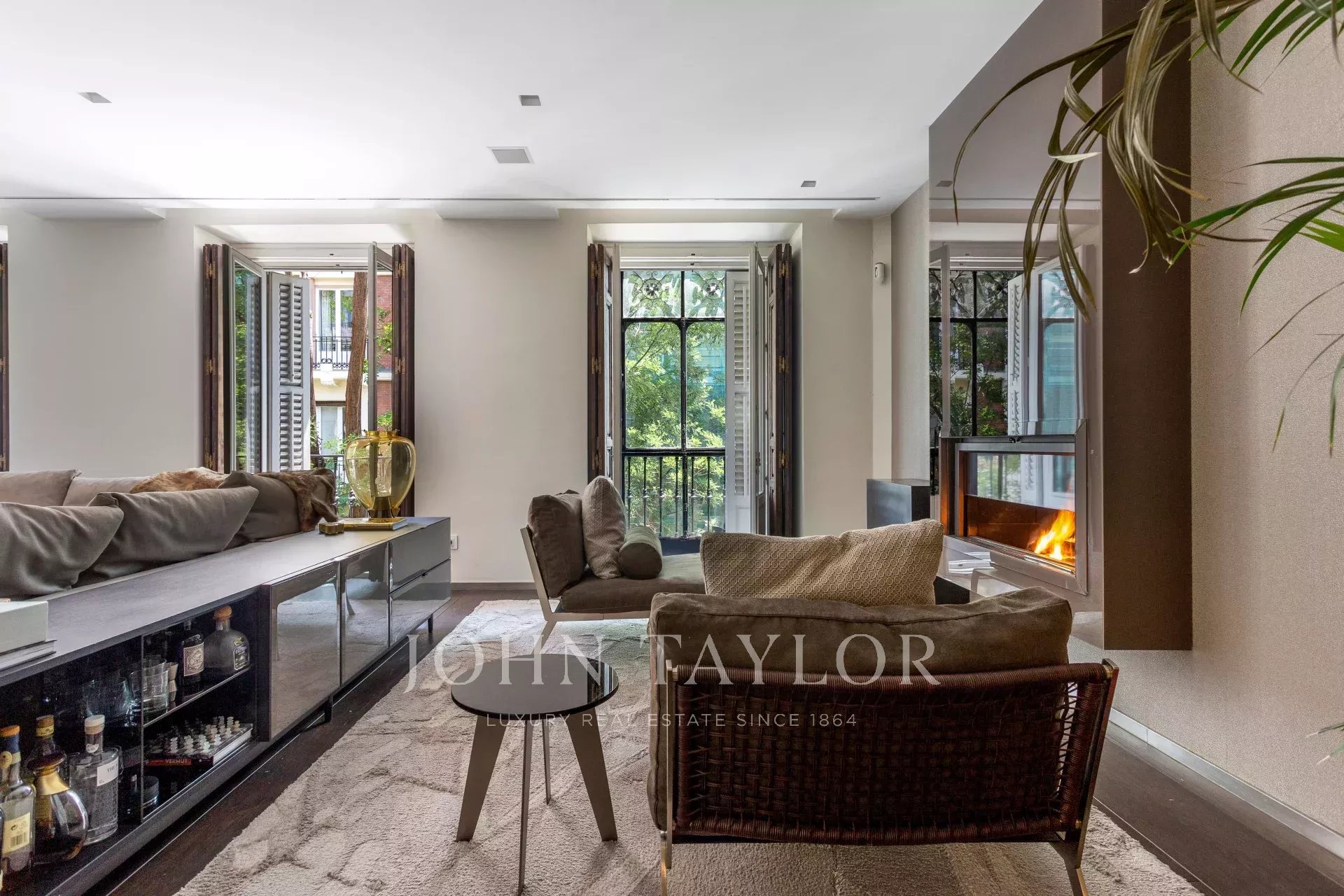 L'appartamento dispone di uno spazio sociale aperto con una zona giorno con due balconi e un punto di vista sulla strada, un'ampia sala da pranzo, un bagno per gli ospiti e una moderna cucina Gaggenau completamente attrezzata con i migliori elettrodomestici.