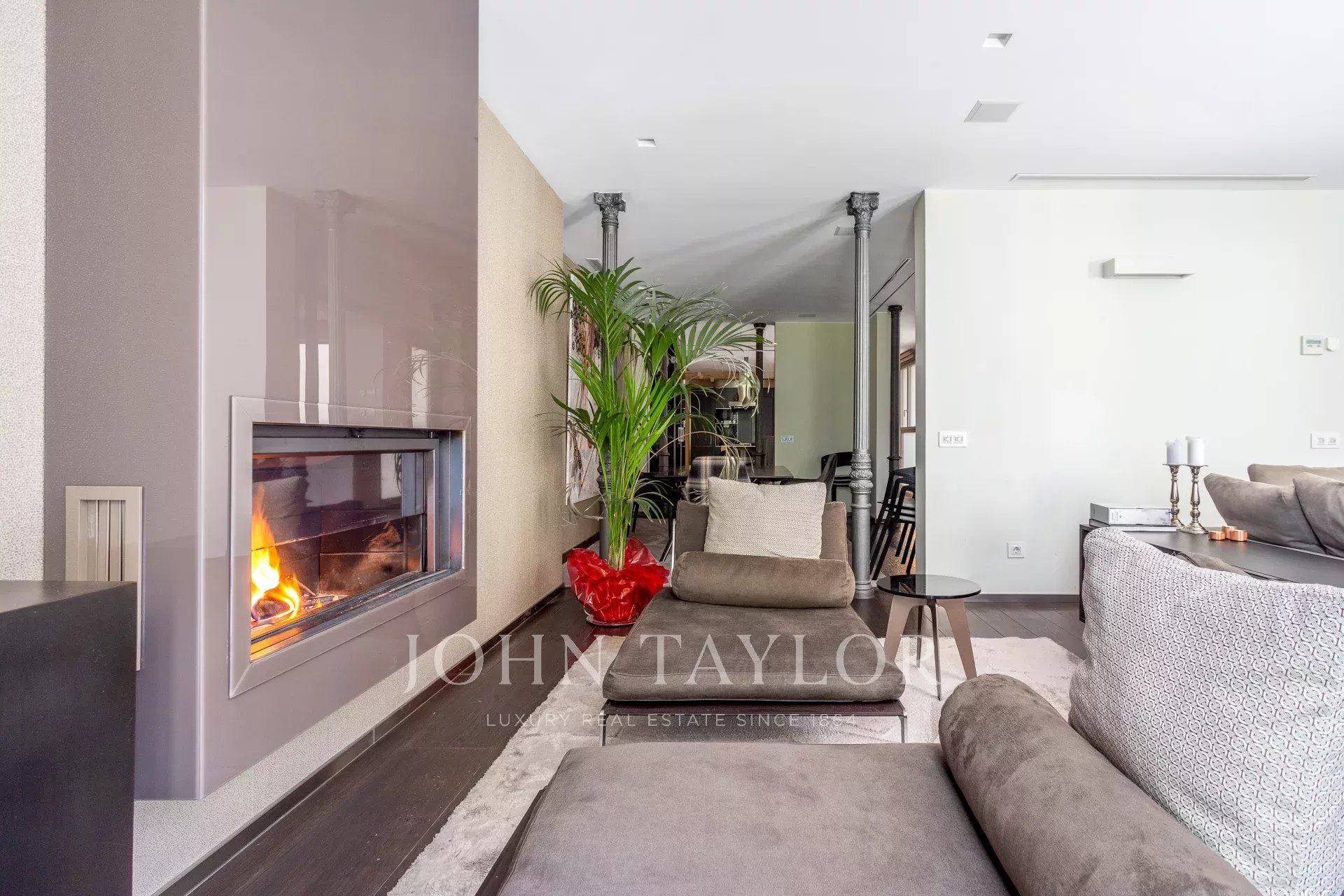 L'appartamento dispone di aria condizionata calda/fredda in tutte le stanze e di riscaldamento a pavimento, oltre che di un camino a legna nel soggiorno e di un camino a gas nella camera da letto principale.