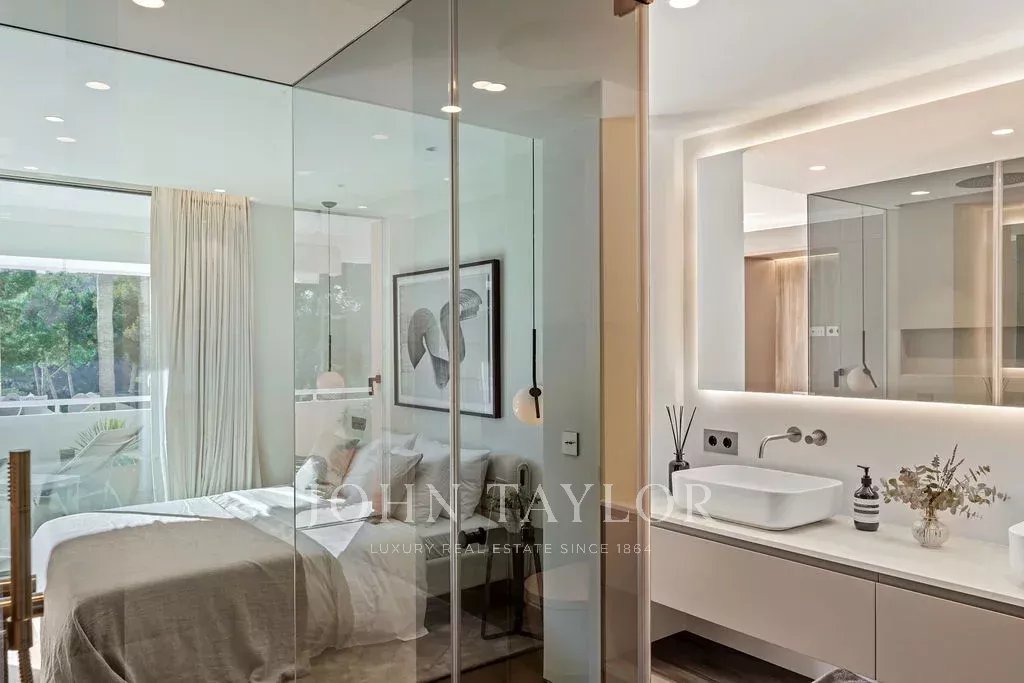 Questo appartamento in vendita a Bendinat è un vero gioiello in una delle zone residenziali più esclusive e sicure di Maiorca. Ogni dettaglio è stato accuratamente selezionato e progettato per offrire il massimo del lusso e del comfort ai suoi futuri proprietari. La sicurezza è una priorità, con un sistema di allarme e telecamere su misura per garantire la massima tranquillità. Offre 3 camere da letto e 2 bagni. Le finestre e le porte scorrevoli in vetro a tutta altezza sono di Cortiza, un marchio rinomato per la qualità e lo stile minimalista. Inoltre, sono state installate porte e coperture su misura per i macchinari sulla terrazza. Per quanto riguarda gli interni, la cucina e gli armadi sono stati progettati da una prestigiosa falegnameria maiorchina, a garanzia di qualità e funzionalità. Lo stesso vale per i mobili del bagno, gli specchi in legno, le porte interne e la cucina esterna. L'appartamento dispone di elettrodomestici di alta gamma, come gli elettrodomestici SMEG in cucina e gli elettrodomestici BOSCH per la lavanderia. Gli arredi includono pezzi di marchi rinomati come Poliform e Barzaghi, oltre a progetti personalizzati provenienti dalla Francia. Per l'intrattenimento sono stati installati un impianto musicale Bang & Olufsen e un televisore LG, mentre tutte le stanze sono predisposte per l'installazione di ulteriori televisori. Gli spazi interni sono illuminati da un'elegante illuminazione decorativa di FLOS, mentre le aree esterne presentano arredi di RODA e DEDON. Ulteriori dettagli sono i pavimenti in legno, la pietra naturale Gris Sarzi, le tende di lino su misura e i sanitari Iconico. Dagli interruttori elettrici ai rubinetti e alle maniglie delle porte, tutto è stato scelto con attenzione ai dettagli e con una qualità eccezionale. In breve, questo appartamento rappresenta la perfetta combinazione di lusso, sicurezza e stile in una delle destinazioni più ambite di Maiorca.