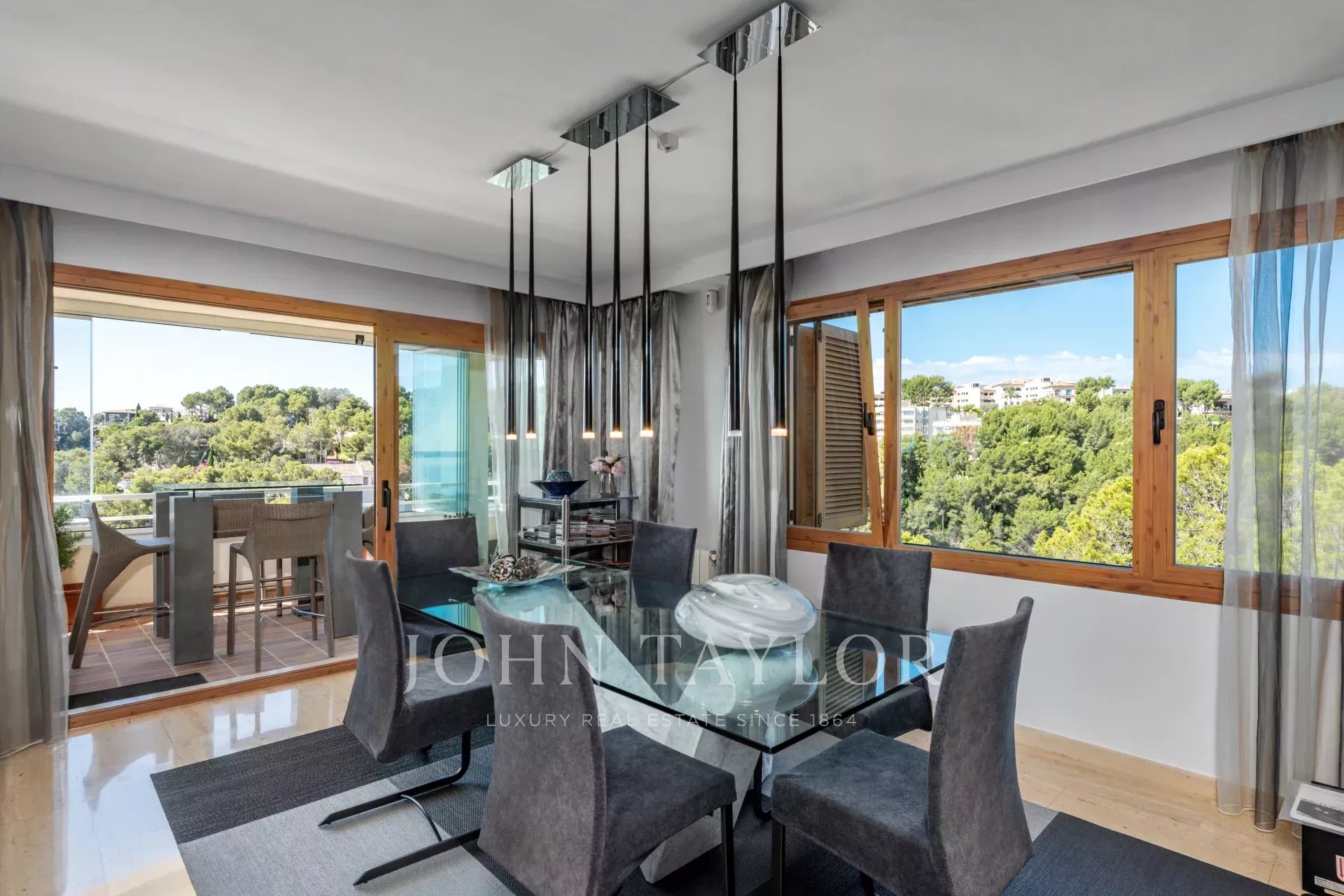 Vi offriamo questo esclusivo attico con vista mozzafiato sul mare, situato in una delle zone più privilegiate di Maiorca. Offre un lussuoso e generoso soggiorno-sala da pranzo con adiacente una spaziosa cucina, quattro camere da letto, tra cui la spaziosa suite padronale con spogliatoio e terrazza, anch'essa con vista sul mare.