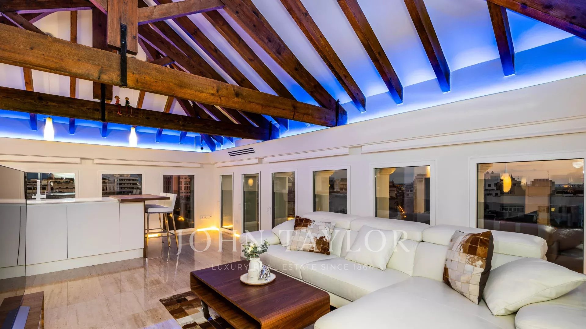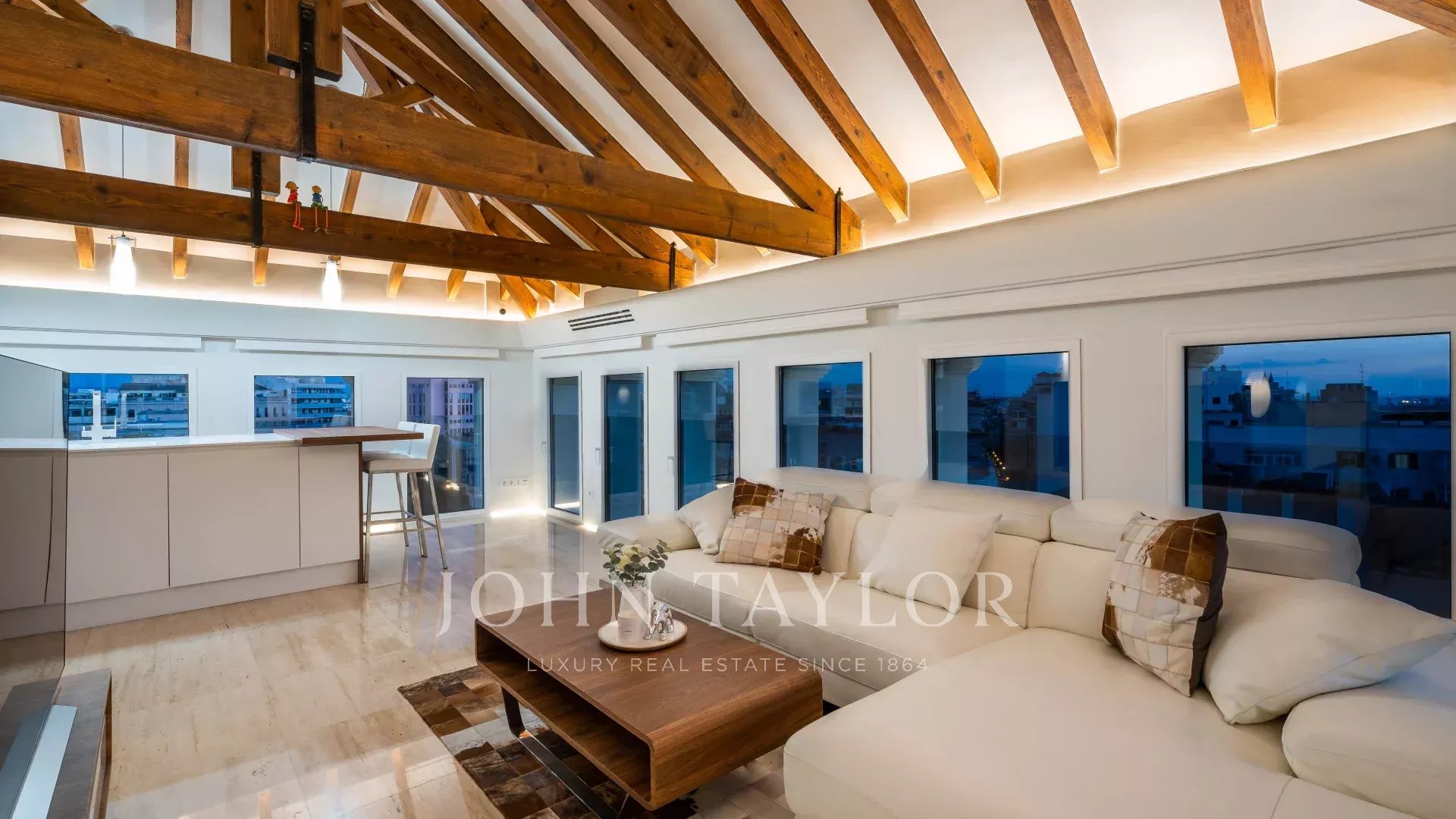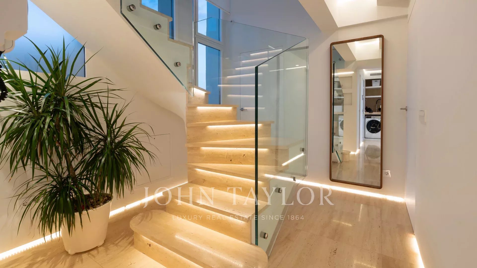 Questo attico duplex unico nel suo genere è stato completamente ristrutturato nel corso del 2021. Arroccato in cima a uno degli edifici più emblematici delle Avenidas di Palma, offre una vista mozzafiato sulla città e sul mare. Al piano terra si trovano due camere da letto, due bagni, un bagno per gli ospiti e l'accesso a una delle due terrazze. Al piano superiore si trovano la cucina, il soggiorno e la zona pranzo con finestre avvolgenti con vista a 360º, soffitti con travi in legno e accesso diretto alla seconda terrazza. Il riscaldamento a pavimento, l'aria condizionata centralizzata e l'installazione domotica garantiscono il comfort e la facilità di gestione della proprietà tramite telefono, ipad o computer. La proprietà viene venduta completamente arredata e comprende due posti auto in garage.