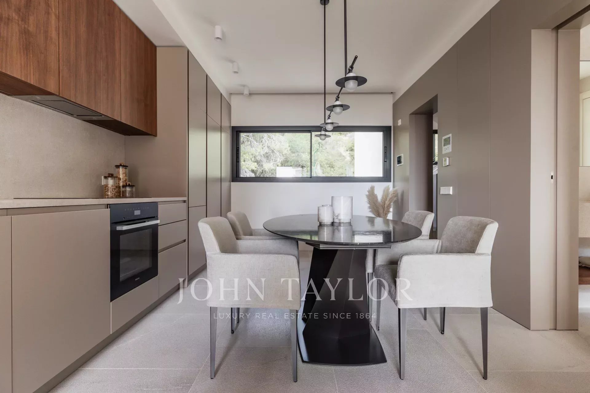 Completamente arredato con pezzi italiani su misura di Barzaghi Salotti ed Ethimo, ogni spazio riflette un'eccezionale maestria artigianale. Tutti i lavori di falegnameria, comprese le cucine, gli armadi e i bagni, sono stati realizzati a mano da artigiani di Maiorca, garantendo precisione e qualità.